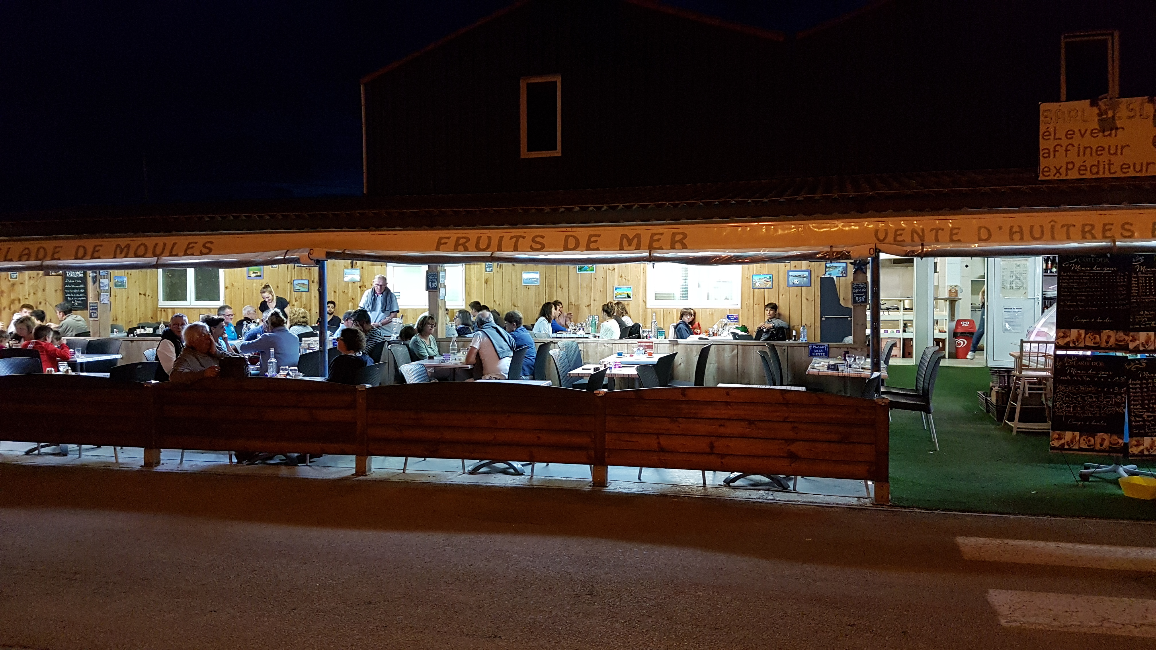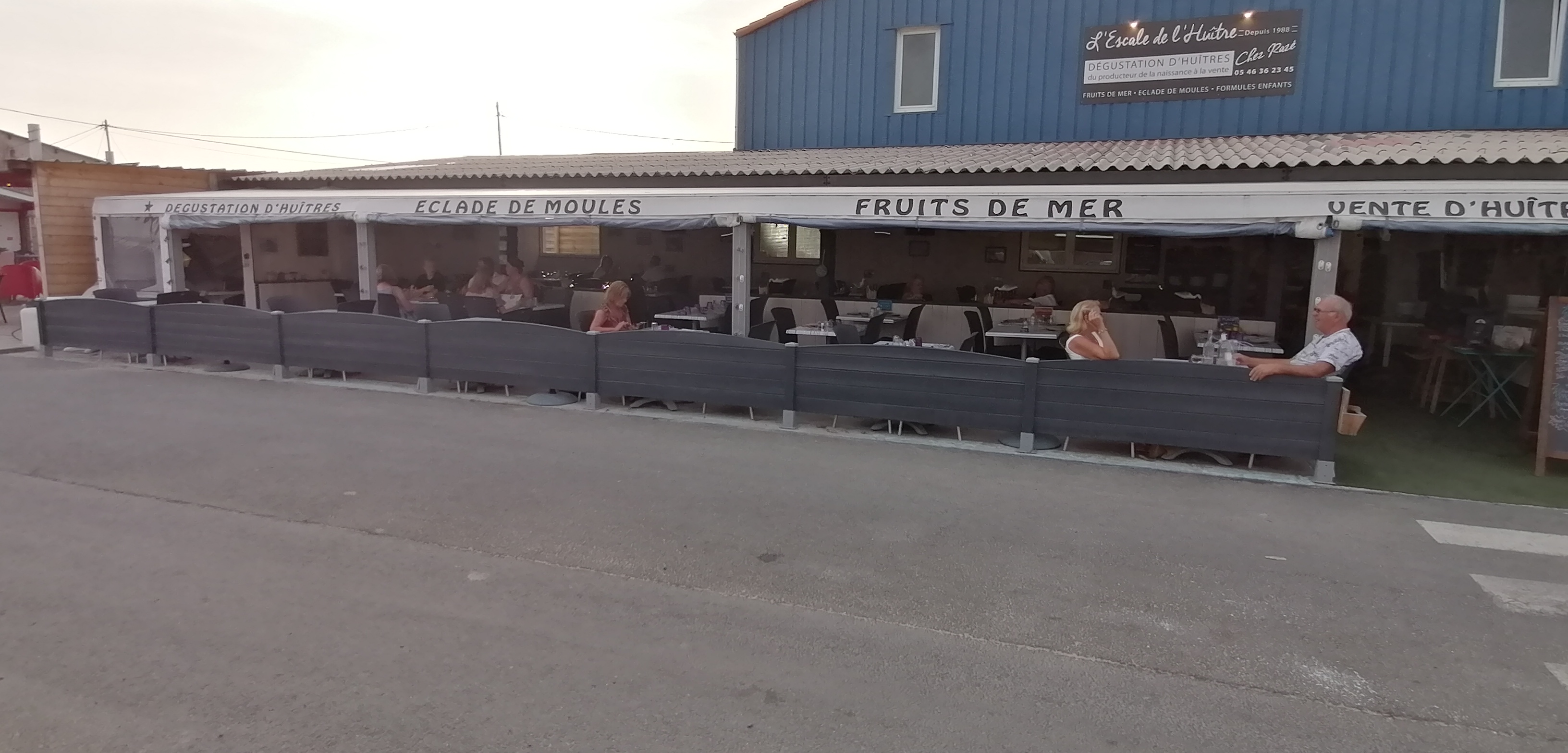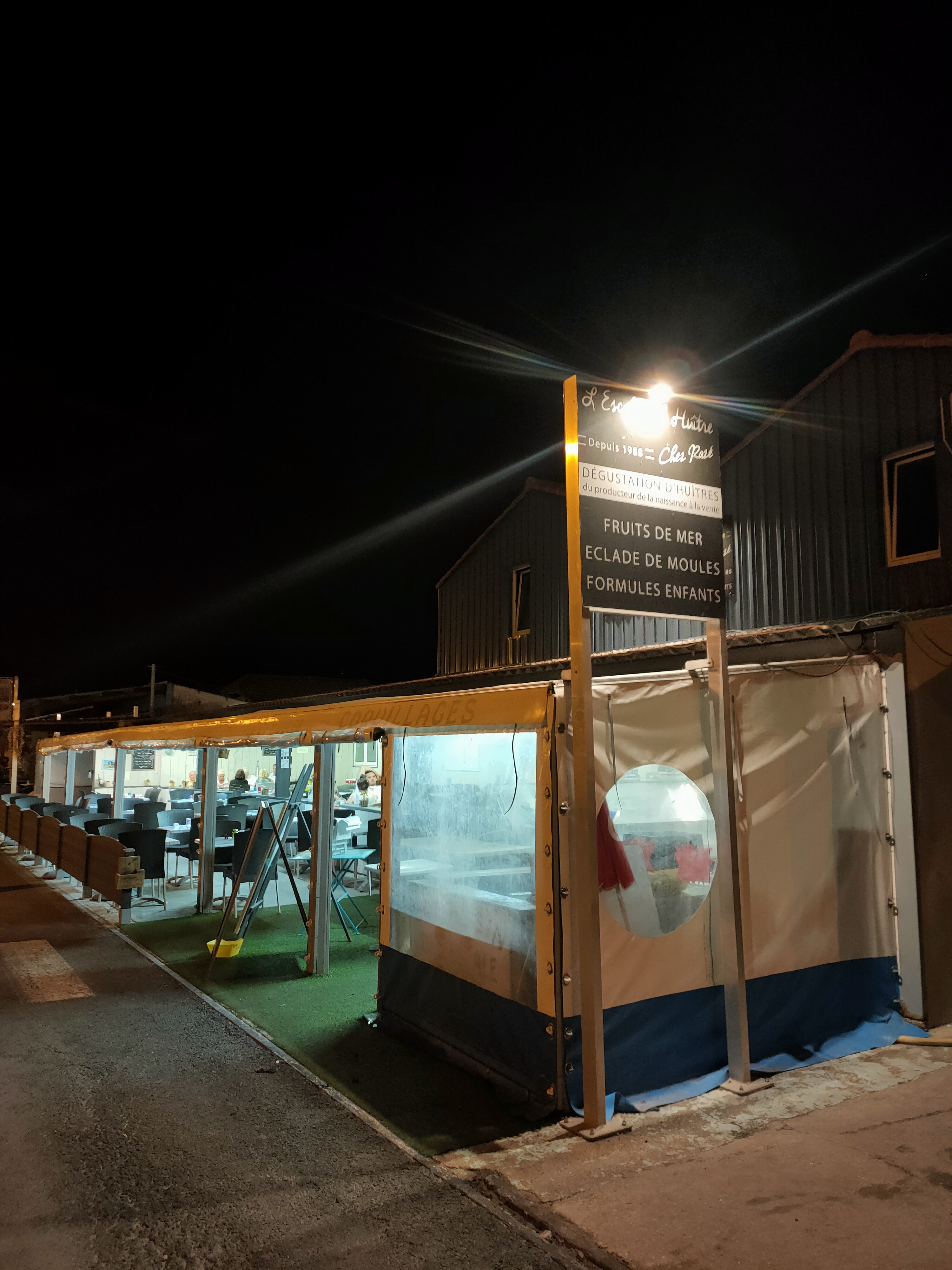 Excellent restaurant les gerants sont aux petits soins pour vous, nous y avons été un samedi midi, au menu eclades, mouclades et huitres. Il y a à l interieur un bassin où les huiles sont entreposé, d où la fraicheur du produit, plusieurs grosseurs sont proposés.