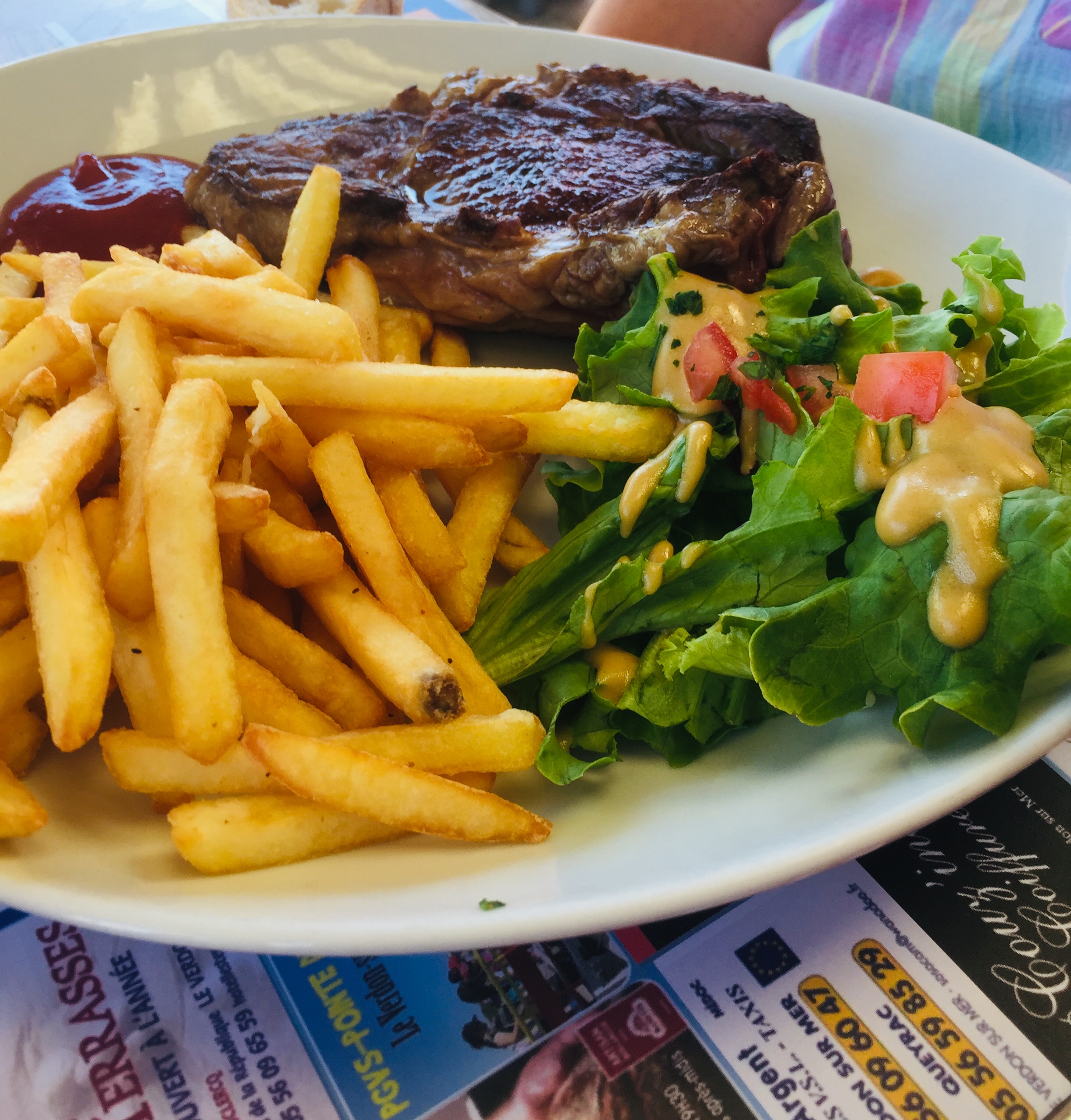 Pas le temps d'apprécier le décor.. avec son petit apéro car dès la première gorgée on vous sert le plat car faut vite laisser la place un groupe de 28 arrive ! Et quand vous evoquez cela avec le gérant : voici sa réponse : Pas de chance le cuistot est sur la défensive ! Pas du tout le sens de l'hospitalité on sent bien que le client est de passage... dommage Mr le gérant nous habitons ici...