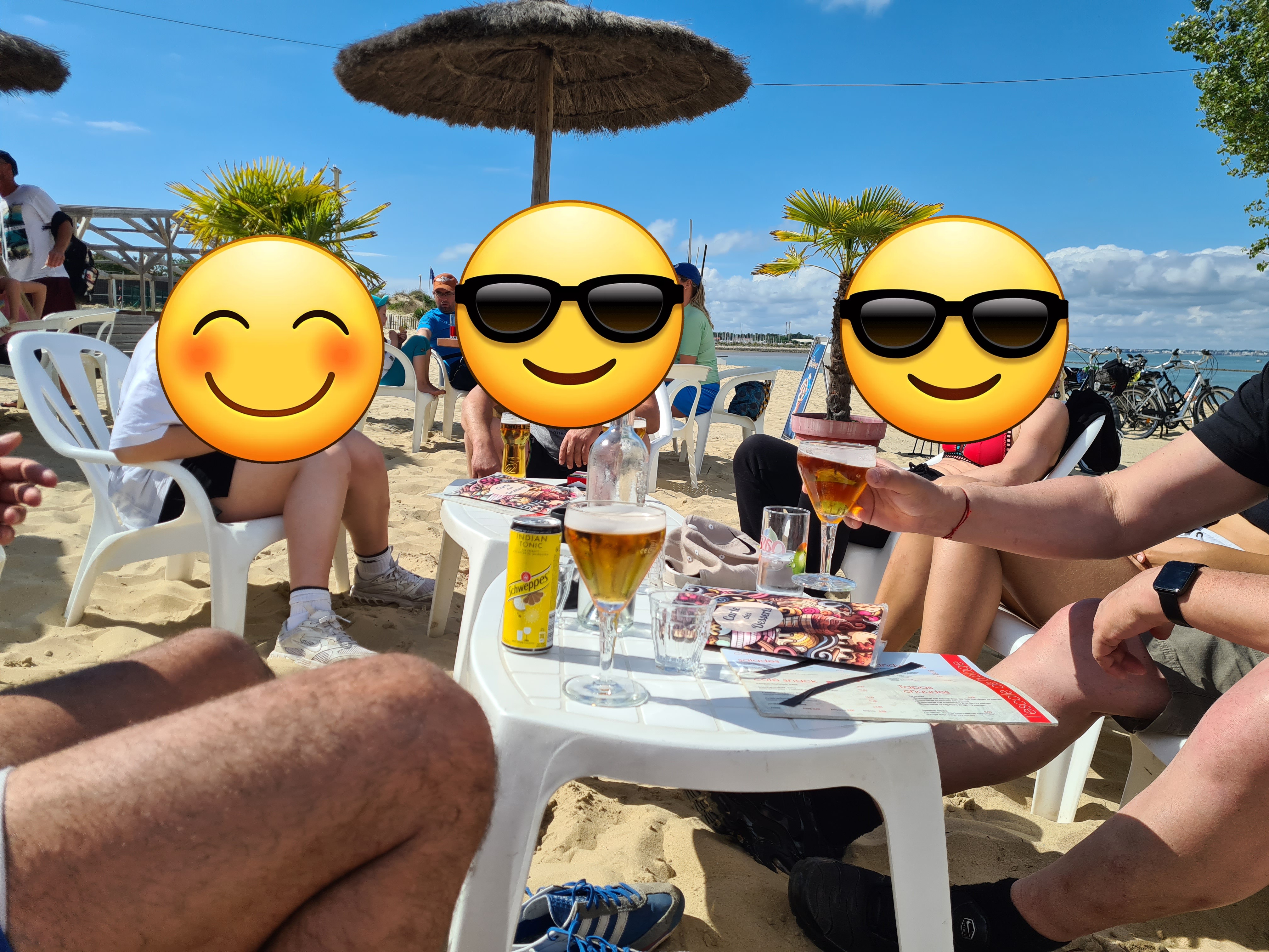 Cadre très agréable avec la possibilité d'avoir les pieds dans le sable à table. Personnel souriant et accueillant. En revanche pour ce qui est de la cuisine... Ils ne servent plus de plat, uniquement des tapas / grignotages pour l'apéro : que du surgelé, franchement pas super bon... Et puis vraiment cher pour ce que c'est ! 10€ une assiette à partager avec à peine 5 mini bouchées pour 2... On est restés sur notre faim, donc on a préféré partir !