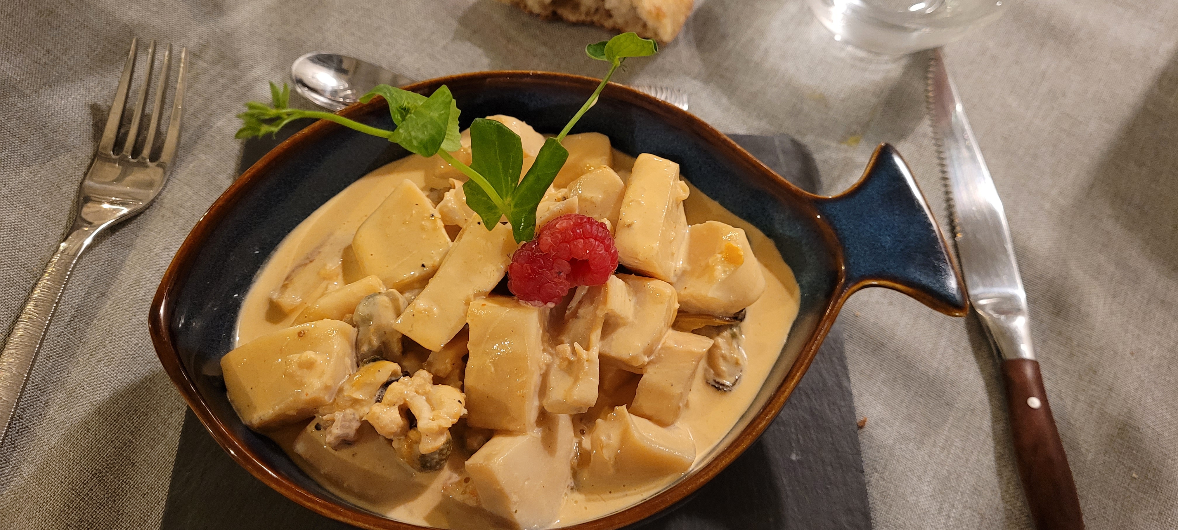 Nous avons goûté la seiche. Préparation excellente, hors du commun
