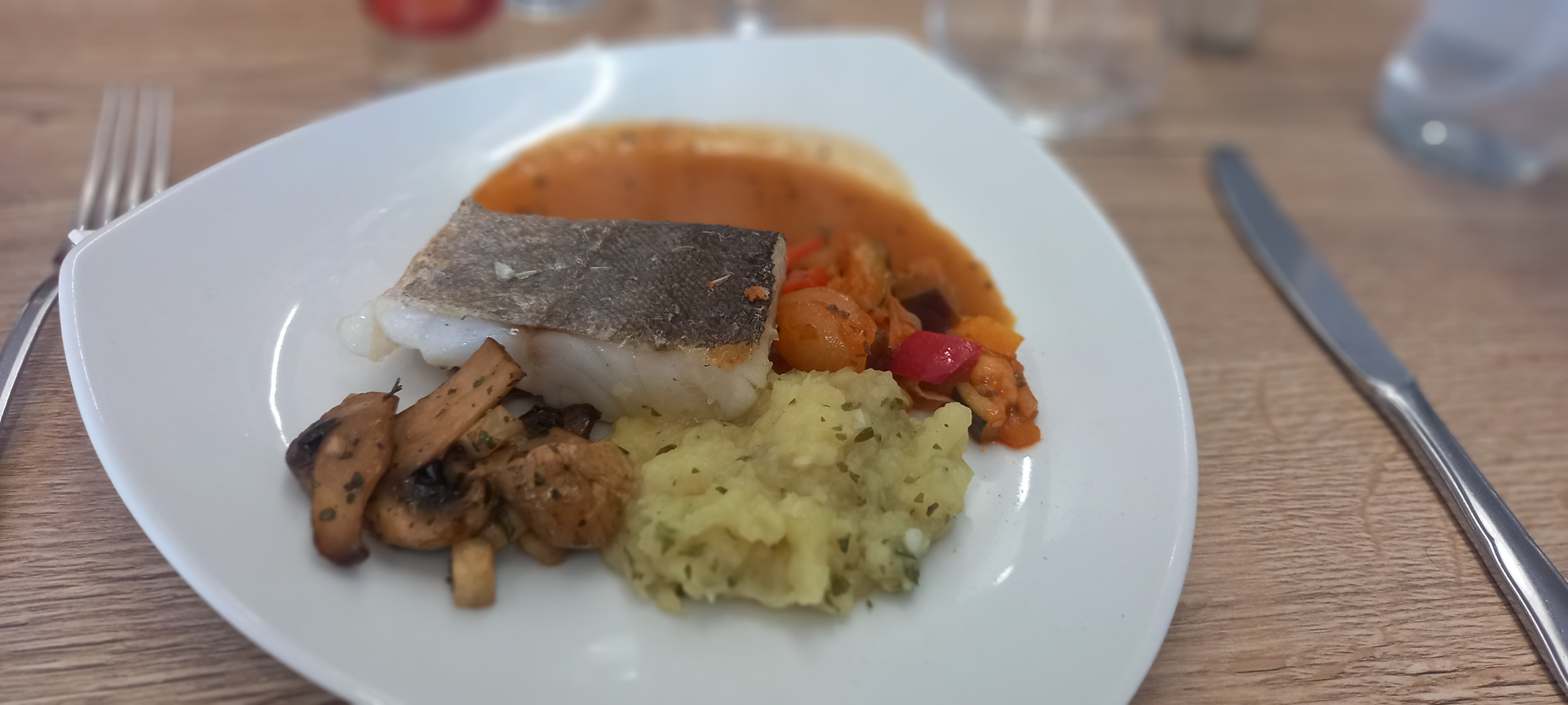 Menu complet à 20 € cuisiné sur place ( c'est un plus) Le dos de cabillaud rôti est un vrai délice. À recommander sans hésitation !