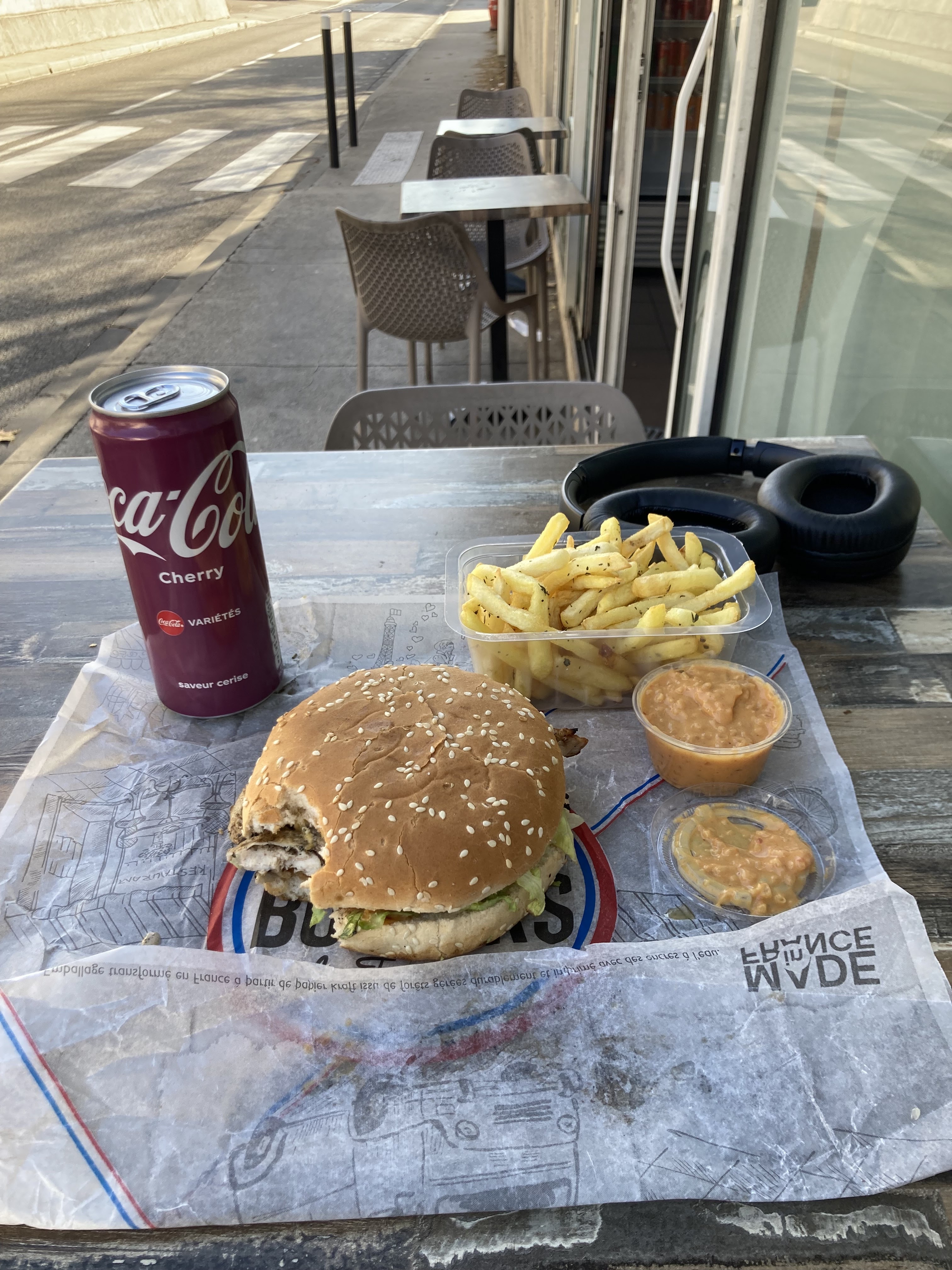 Honnêtement je recommande rares de nos jours viande fraîche et pas steak congeler tout est frais cuisson au charbon simple et efficace l'un des meilleur sur Nîmes mention pour le double cheese il est énorme 👍👌