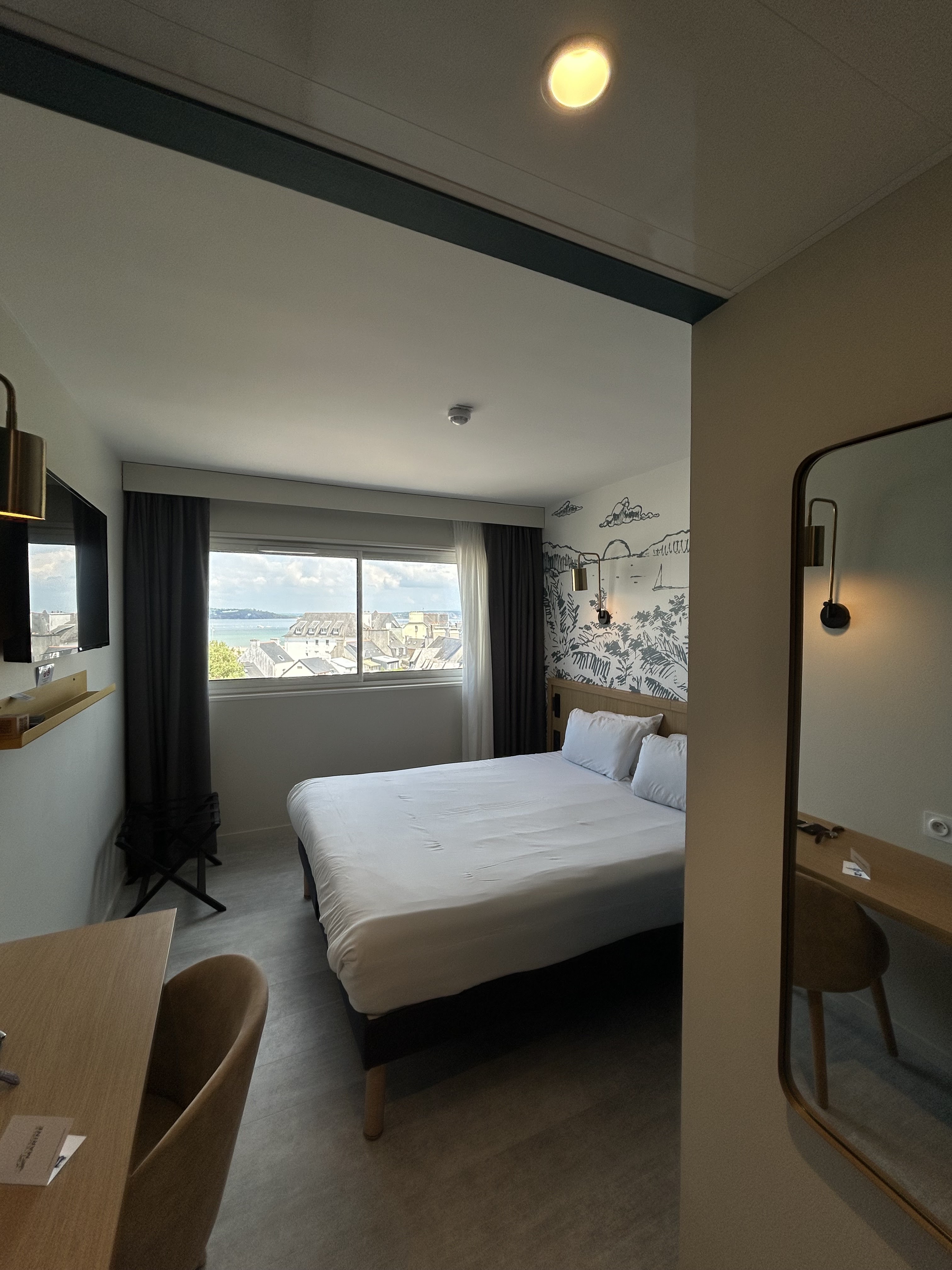 Séjour en amoureux. Hôtel idéalement placé et totalement rénové avec beaucoup de goût. Chambre au 3eme et dernier étage très confortable avec vue sur mer au delà des maisons du petit centre de Morgat que l’on rejoint en moins de 5 minutes à pieds. Petit-déjeuner au top : que des produits frais et locaux de qualité, un régal !!! Merci à Maëlle pour son accueil et à tout le personnel pour leur amabilité.