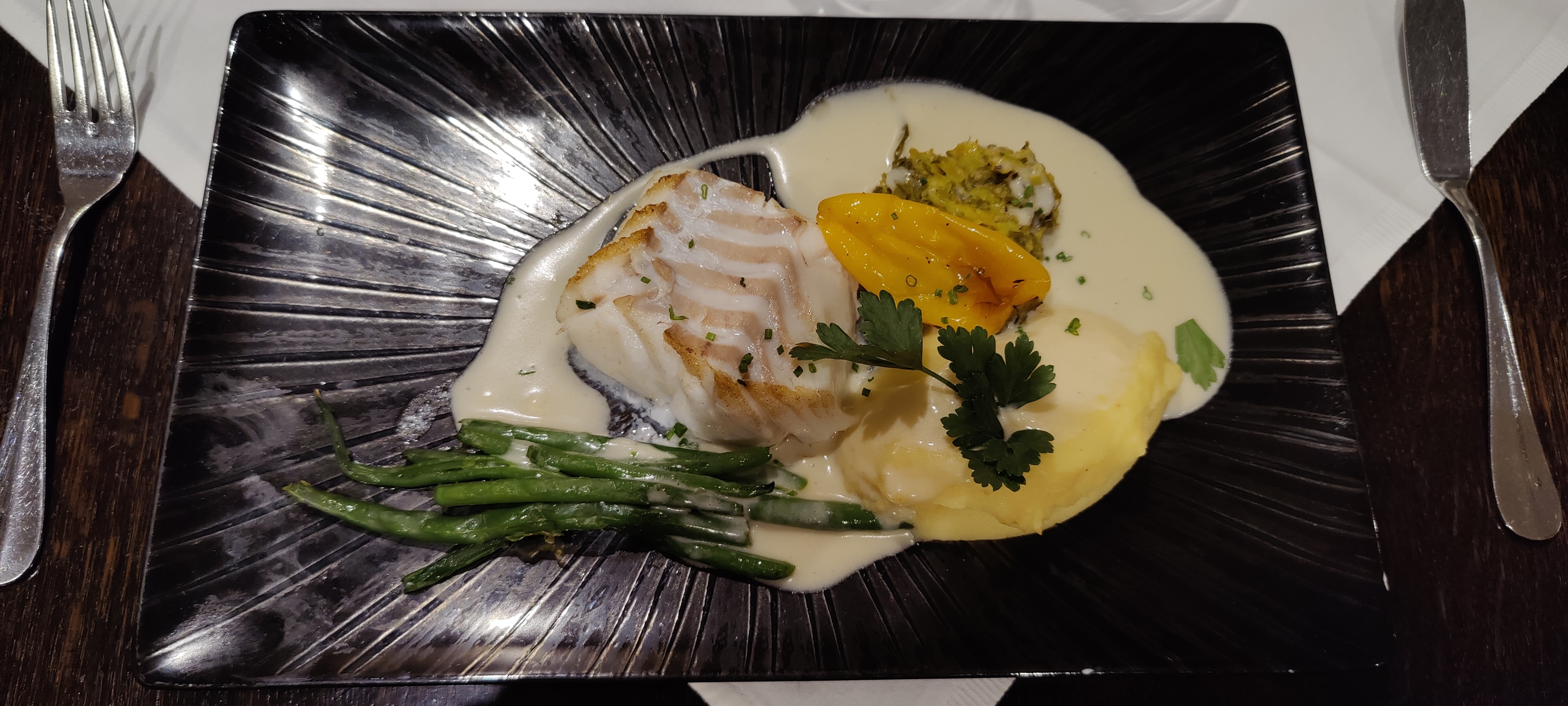 Très déçu par la cuisine assez chère pour le lieu, venus un dimanche, beaucoup d'attente pour un cabillaud très frais et bien cuit mais des accompagnements insipides