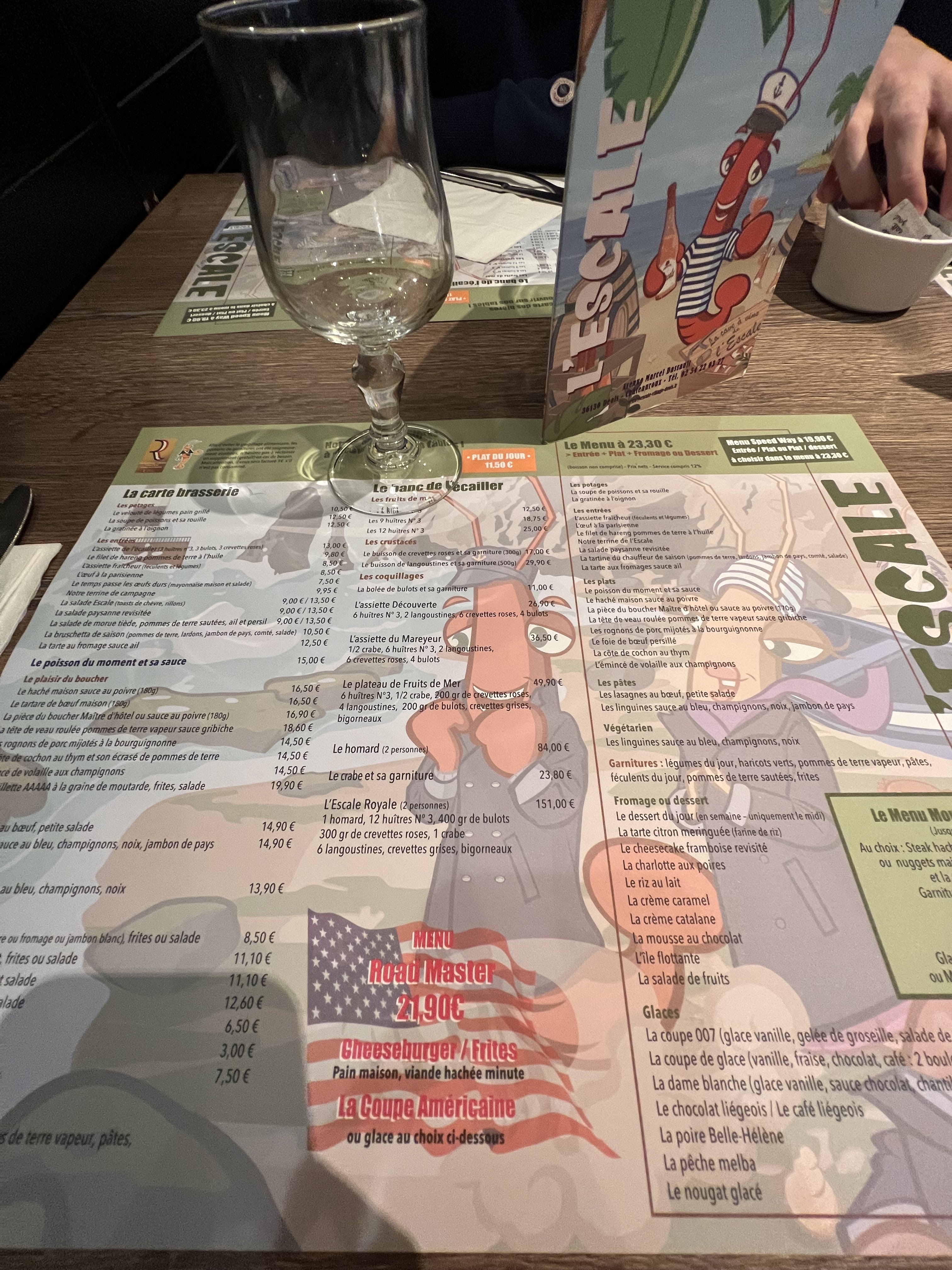 Ce n'est plus l'escale que l'on connaissait. En sortie de concert, accueil moyen et froid du patron, serveuse sympa et efficace. Plats très moyens pour un prix qui a explosé.