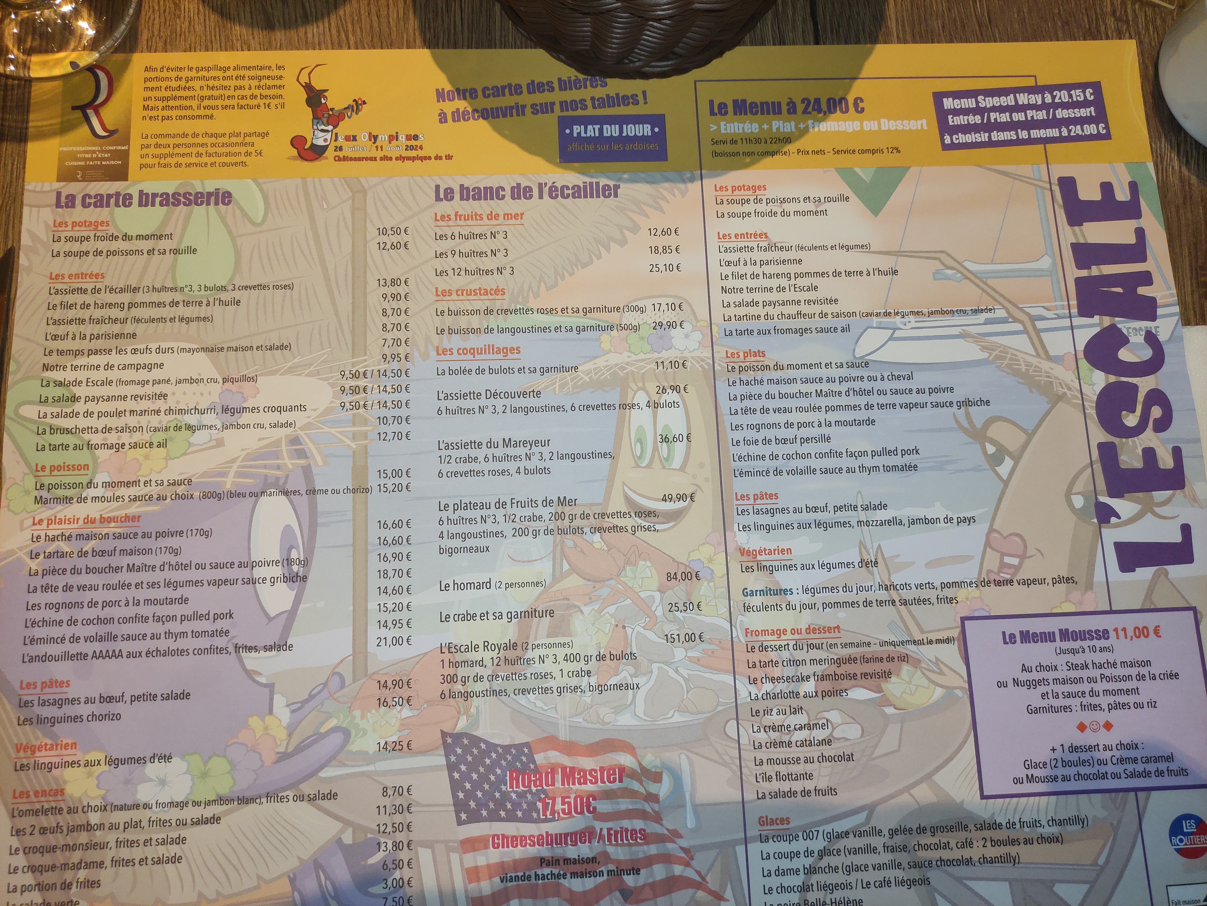 Sur la route des vacances, en voyant l affluence à l entrée du restaurant, on a eu peur d y rester longtemps mais pas du tout !!service rapide efficace et agréable. Rapport qualité/prix très correct. Nous y reviendrons.