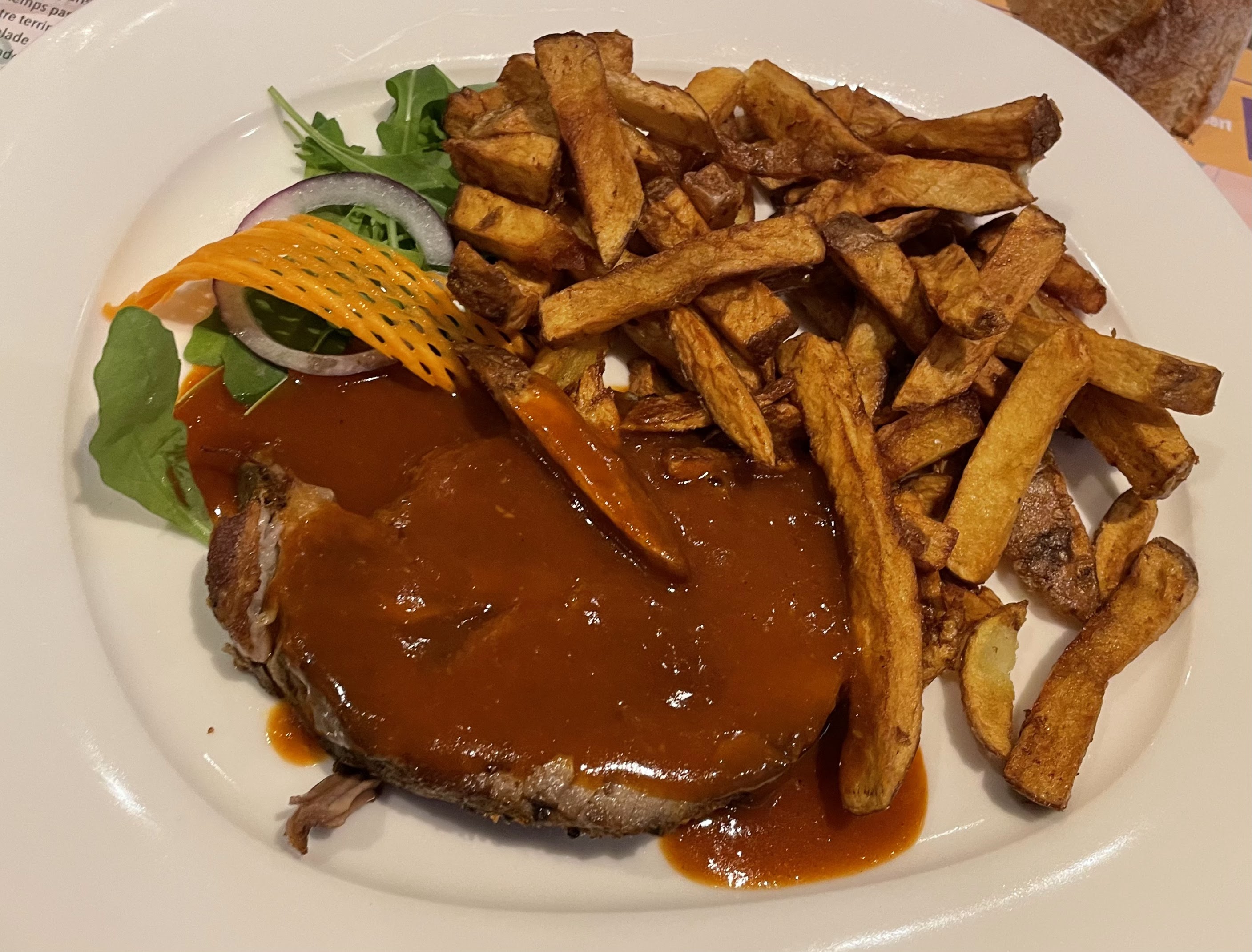Je m'attendais à du grandiose avec un bon rapport qualité-prix. Il n'en fut rien. Ce n'était pas mauvais mais trop peu de frites avec la pièce du boucher et les prix sont effrayants (plus de 4€00 pour un pastis par exemple...).