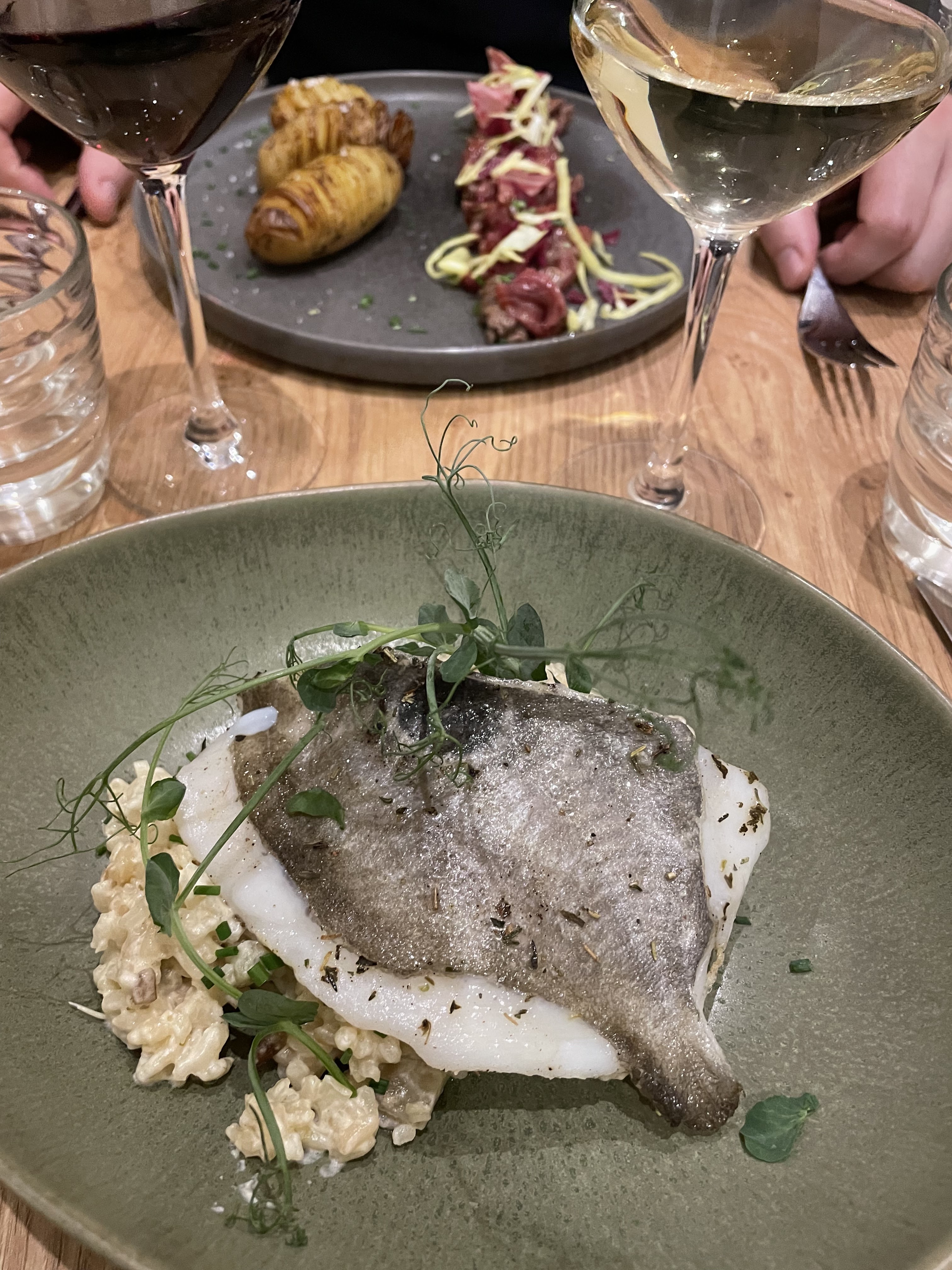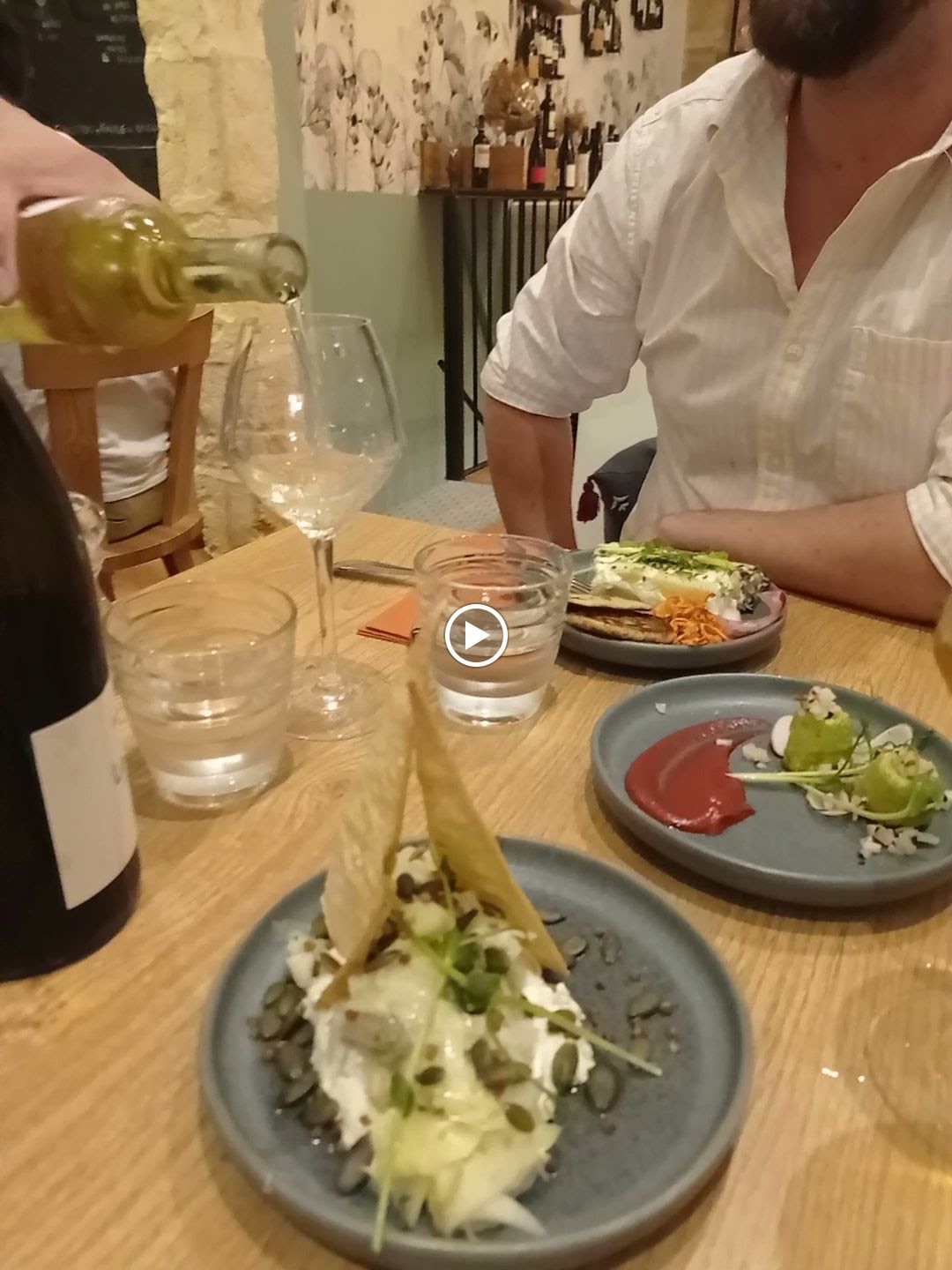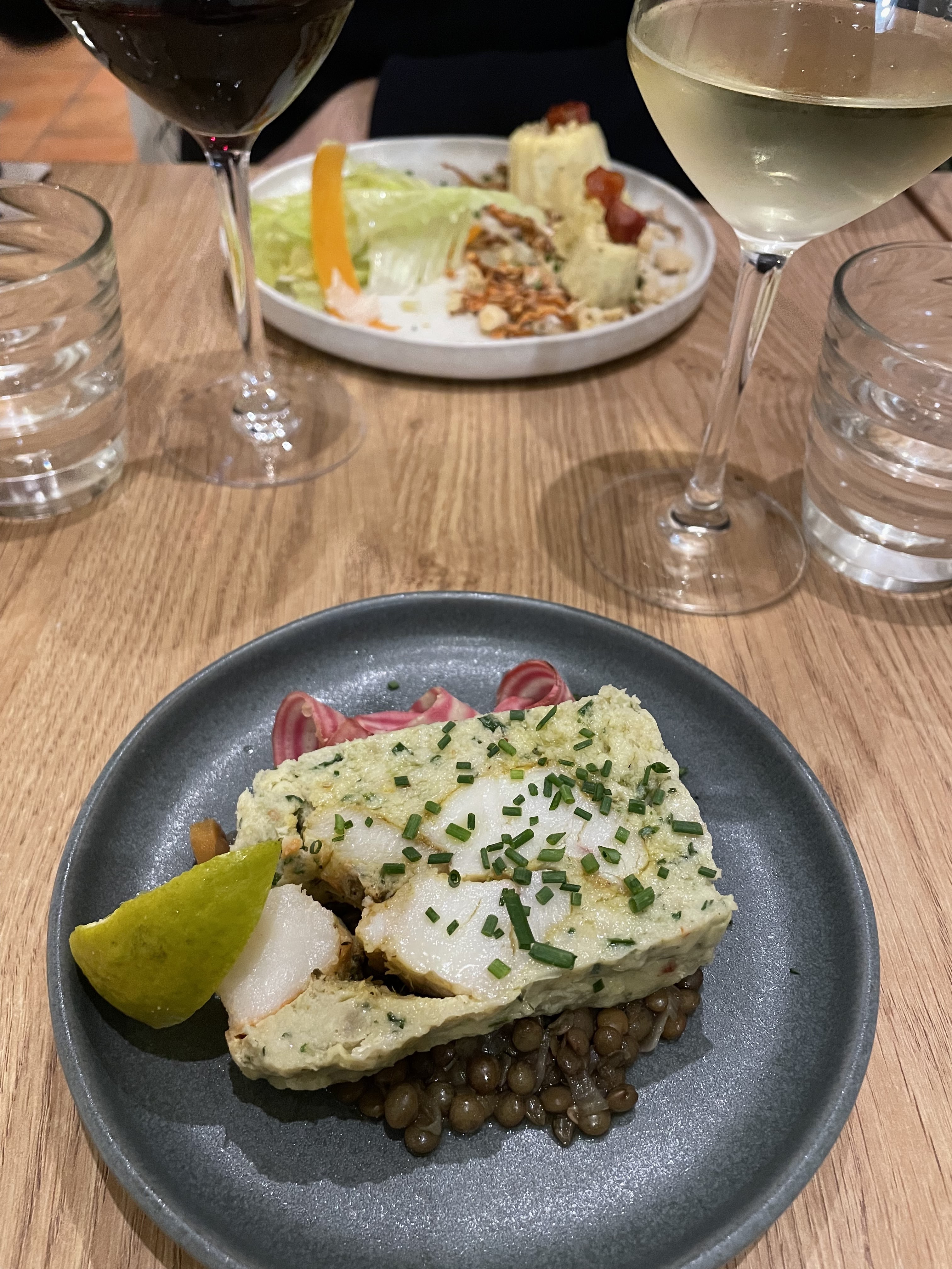 Ce “restaurant à vin” avait attiré mon attention et je me réjouissais d’y aller. C’était vraiment excellent à tout point de vue. Je dînais seul et l’équipe avait choisi une table avec vue sur la cuisine pour moi, vraiment touchant. Service sympa et efficace, belle présentation des plats. Restaurant à vin, certes, mais la nourriture était excellente aussi. J’espère pouvoir y revenir.