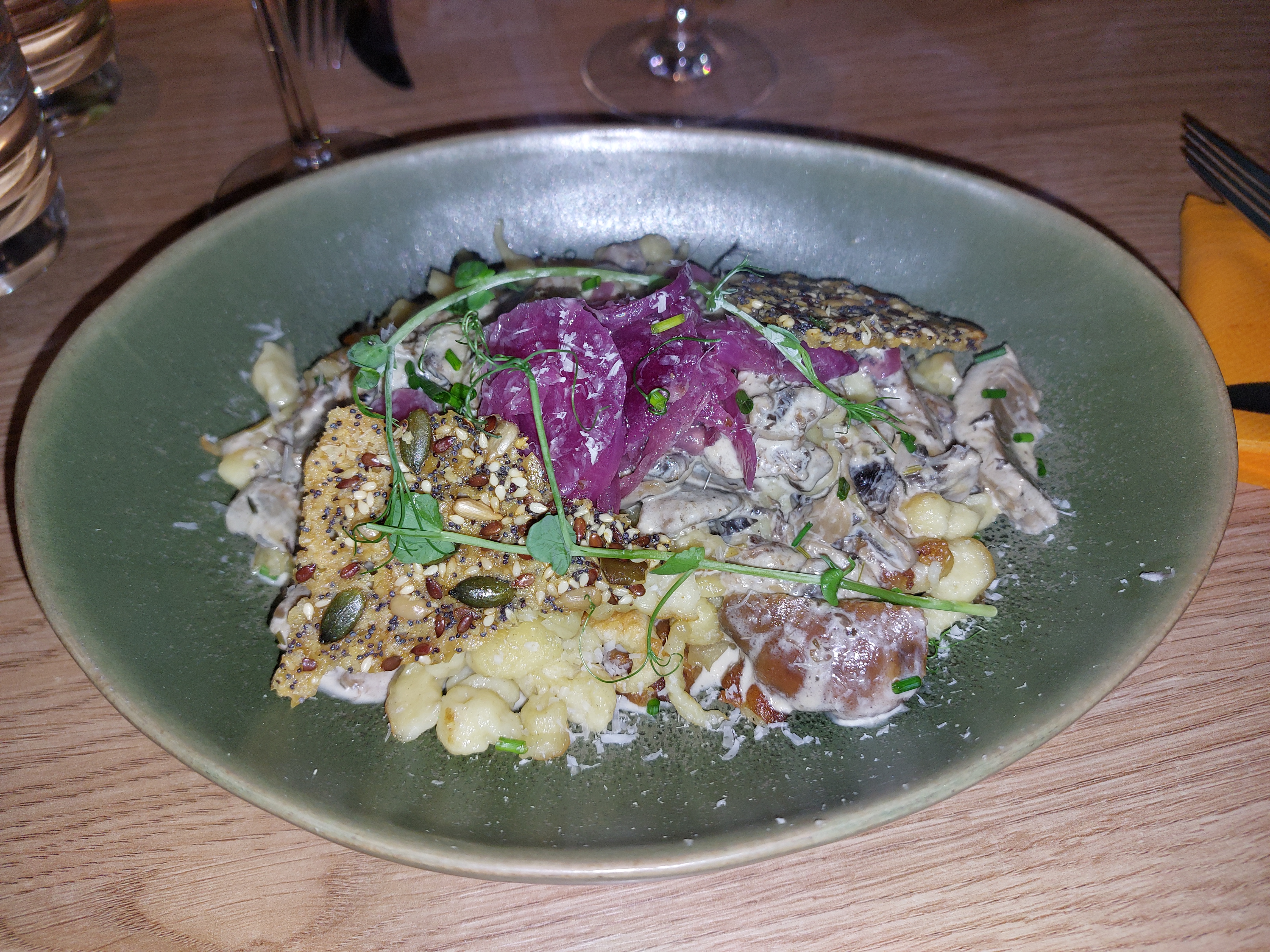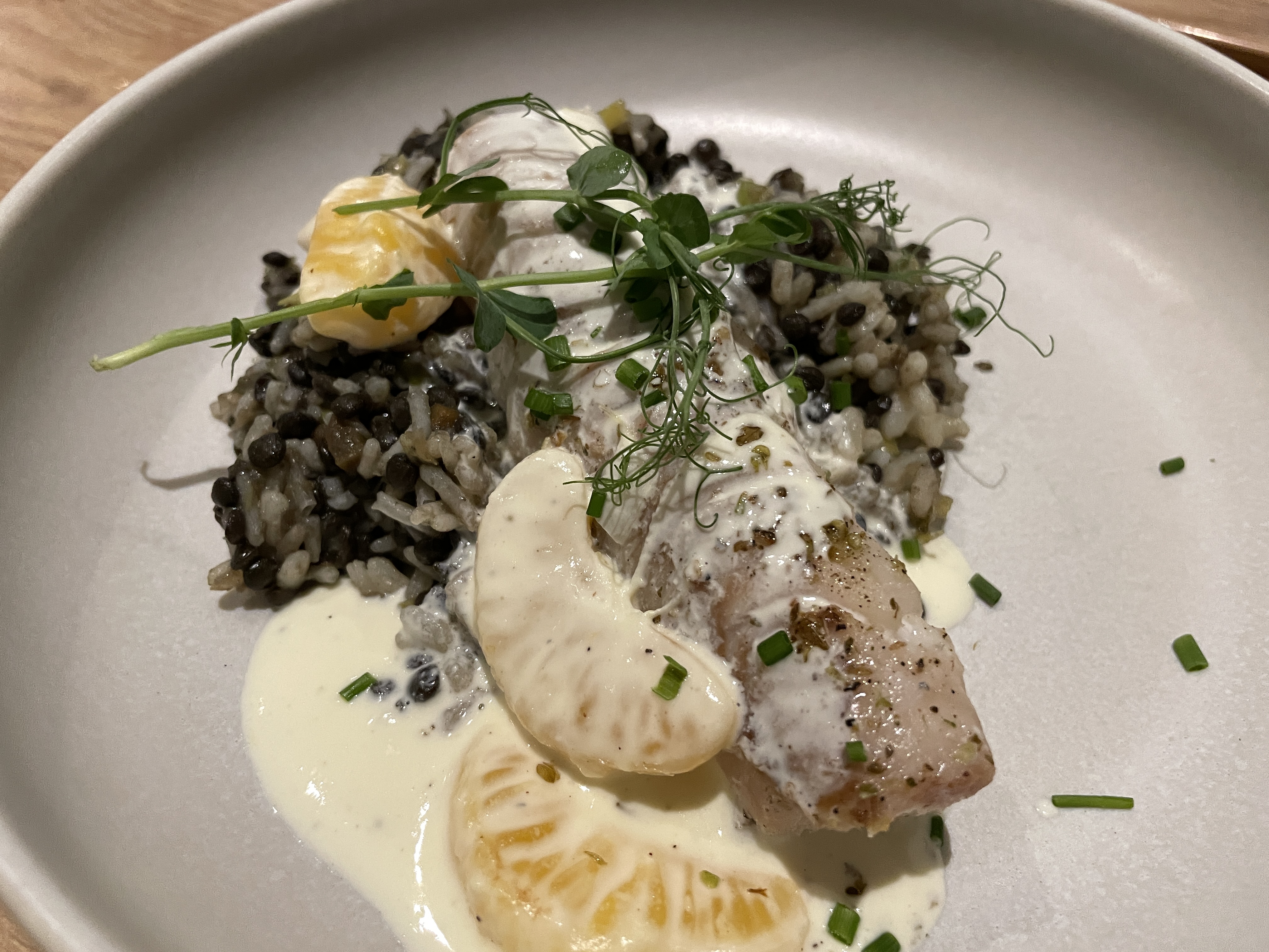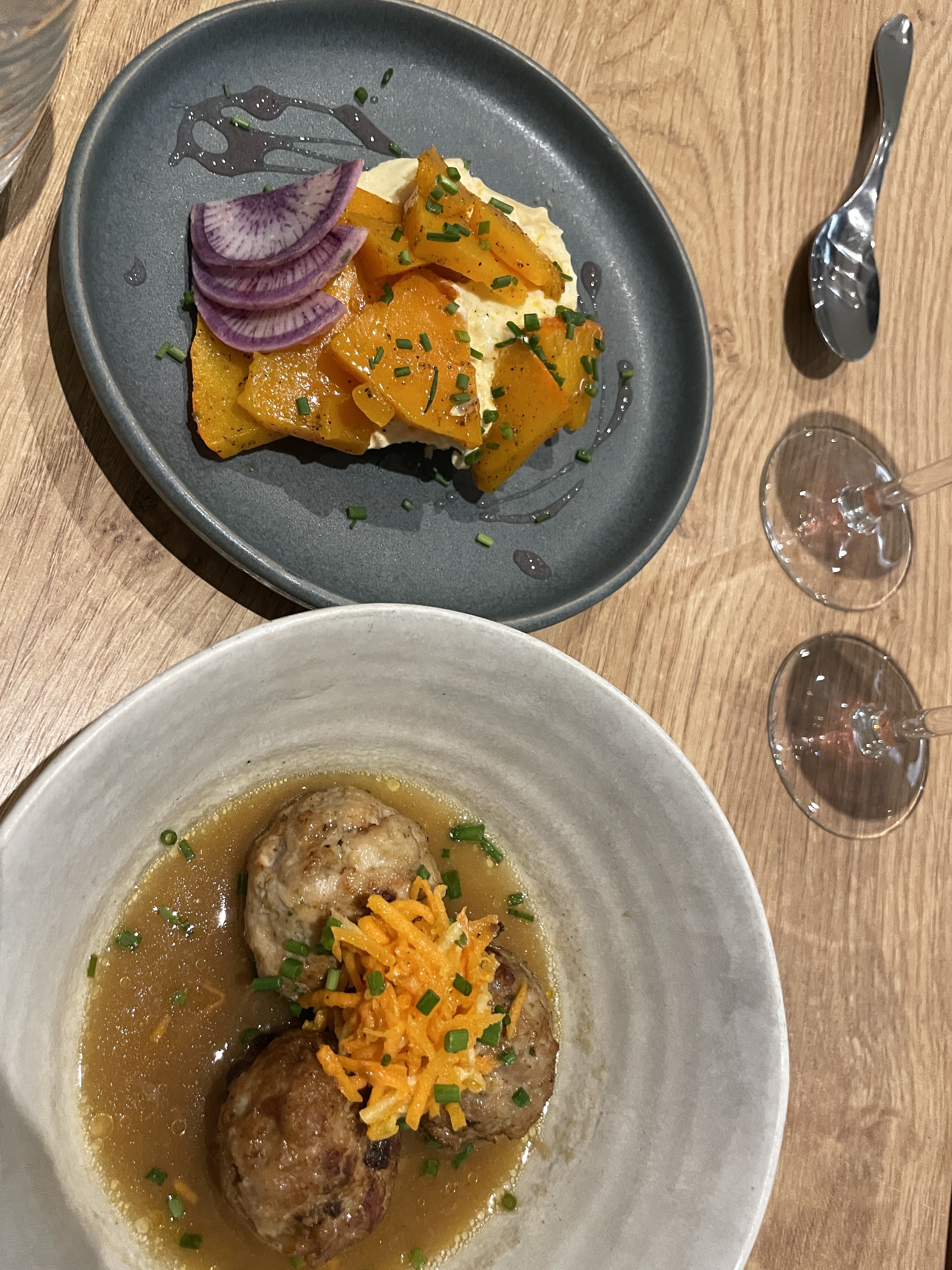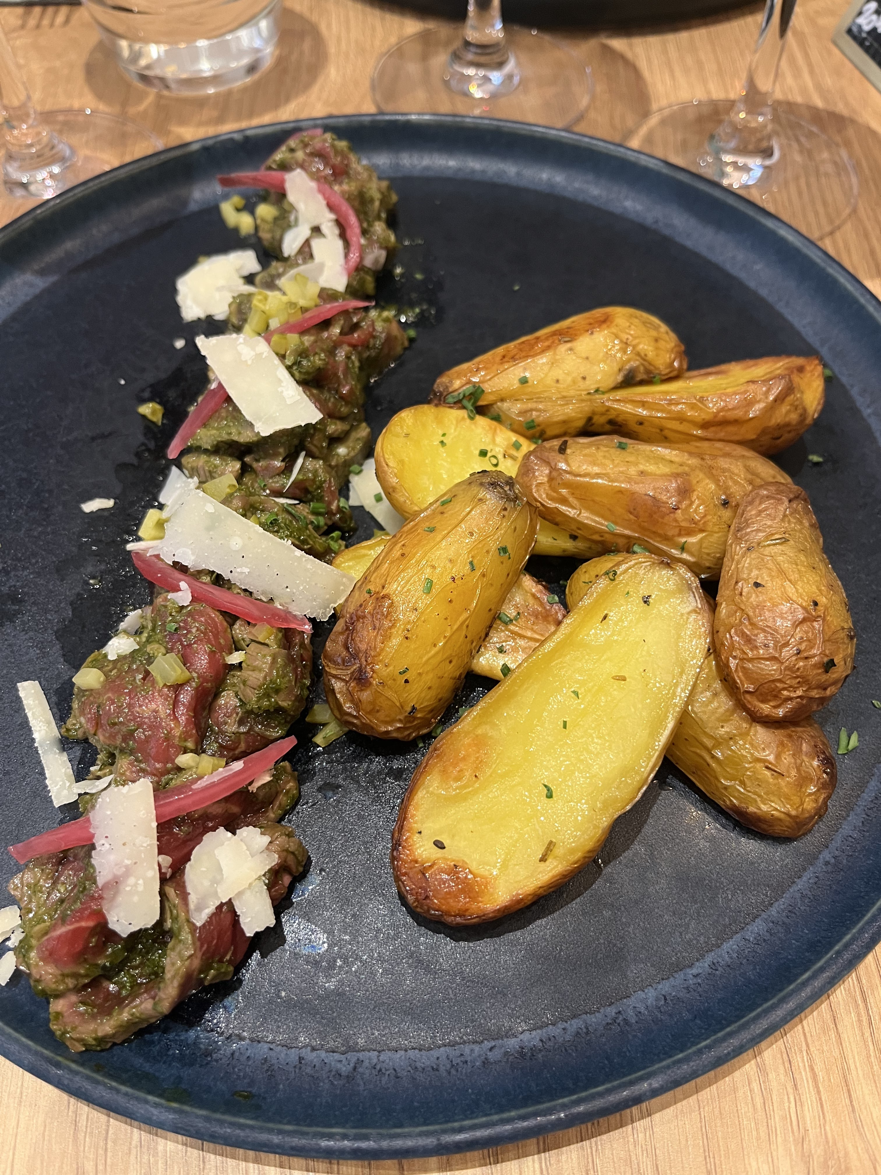 Ce “restaurant à vin” avait attiré mon attention et je me réjouissais d’y aller. C’était vraiment excellent à tout point de vue. Je dînais seul et l’équipe avait choisi une table avec vue sur la cuisine pour moi, vraiment touchant. Service sympa et efficace, belle présentation des plats. Restaurant à vin, certes, mais la nourriture était excellente aussi. J’espère pouvoir y revenir.