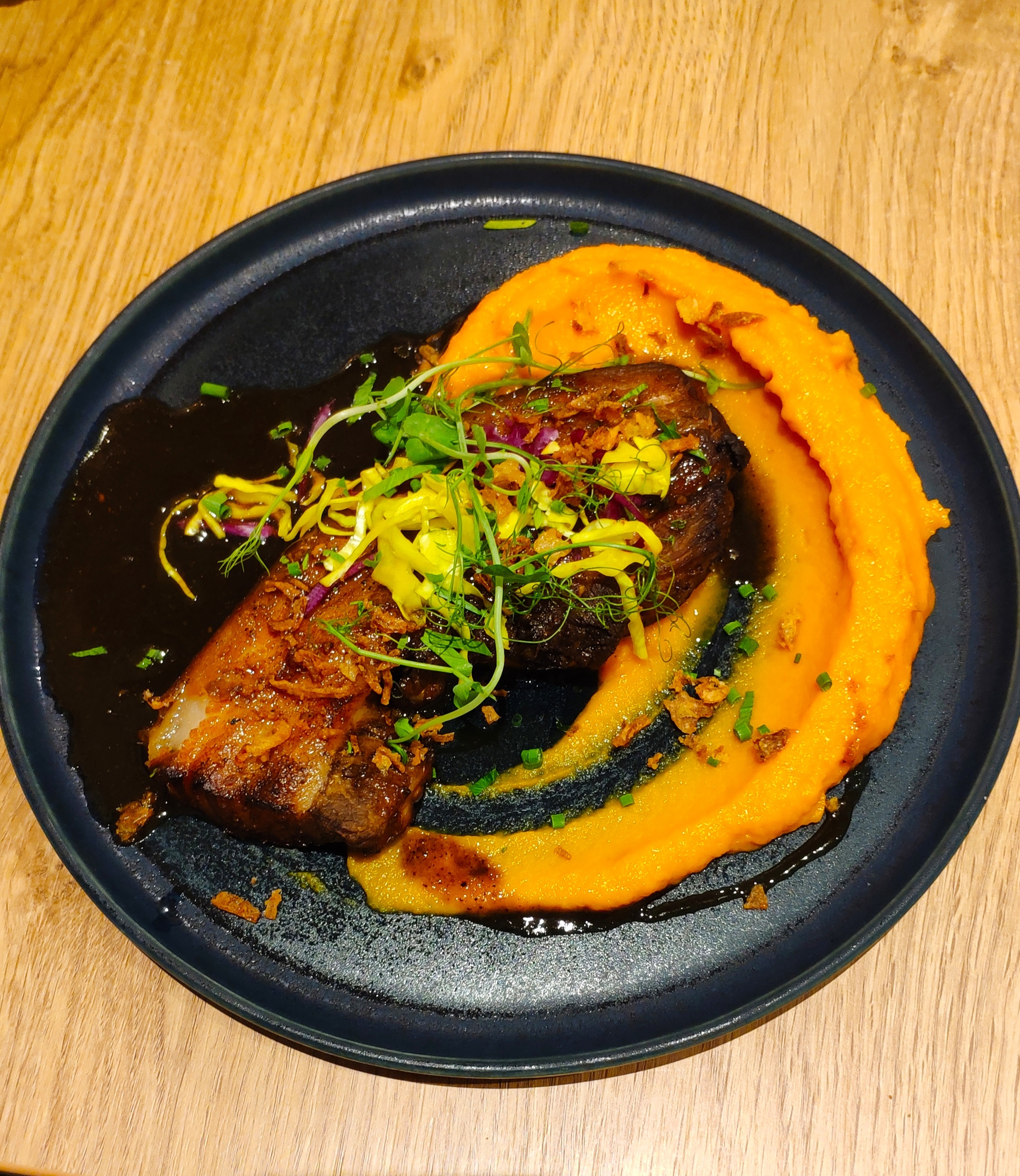 Un concept génial ! Des plats bistronomiques recherchés, frais et fort goûteux ! Une viande fondante accompagnée d'une crème de patate douce et d'un jus sirupeux du plus bel effet ! Pour ce qui est des vins : la selection est plus que convaincante, présentée avec sincérité et amour du terroir.... Accueil au top ! À faire ou à refaire absolument !!!