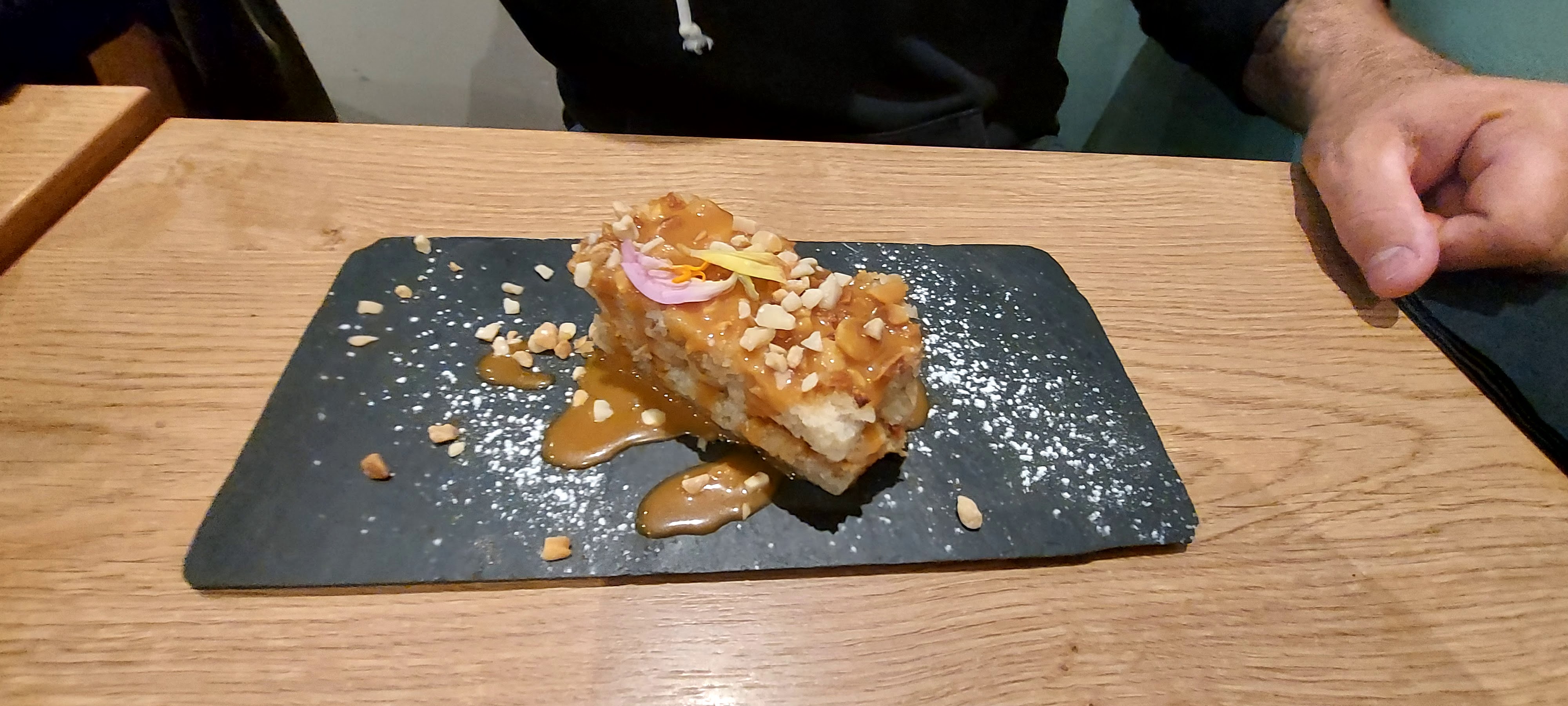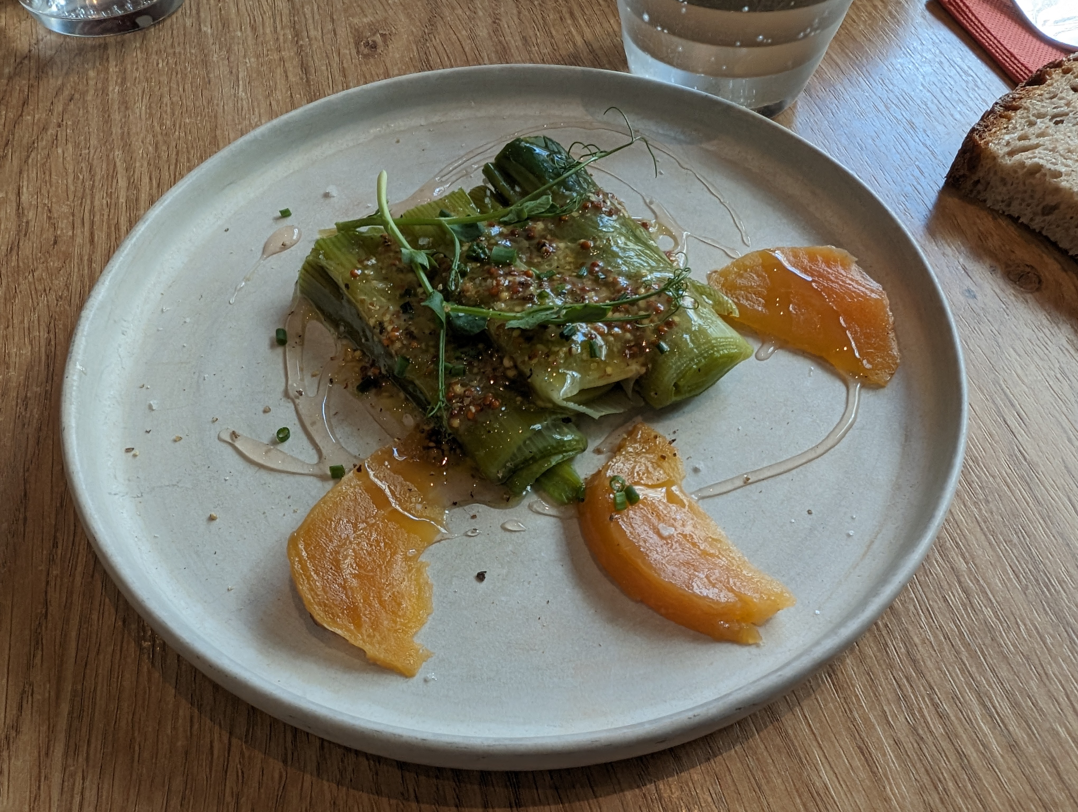 Très bonne surprise. L'accord mets vin qui nous a été suggéré était parfait. Et le top du top ça a été le kaki rôti avec crème anglaise et amandes.
