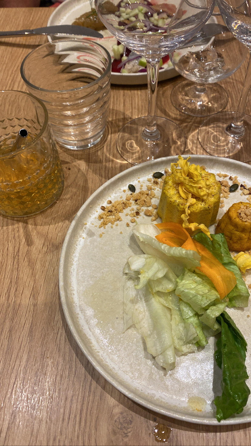 Sympa, beau, riche en goûts et en couleurs, et c’est bon, très bon. Tarif du midi raisonnable (E.P.D 25€), donc tout pour plaire; manque juste une pointe de croquant sur le dessert 😉 Bravo.