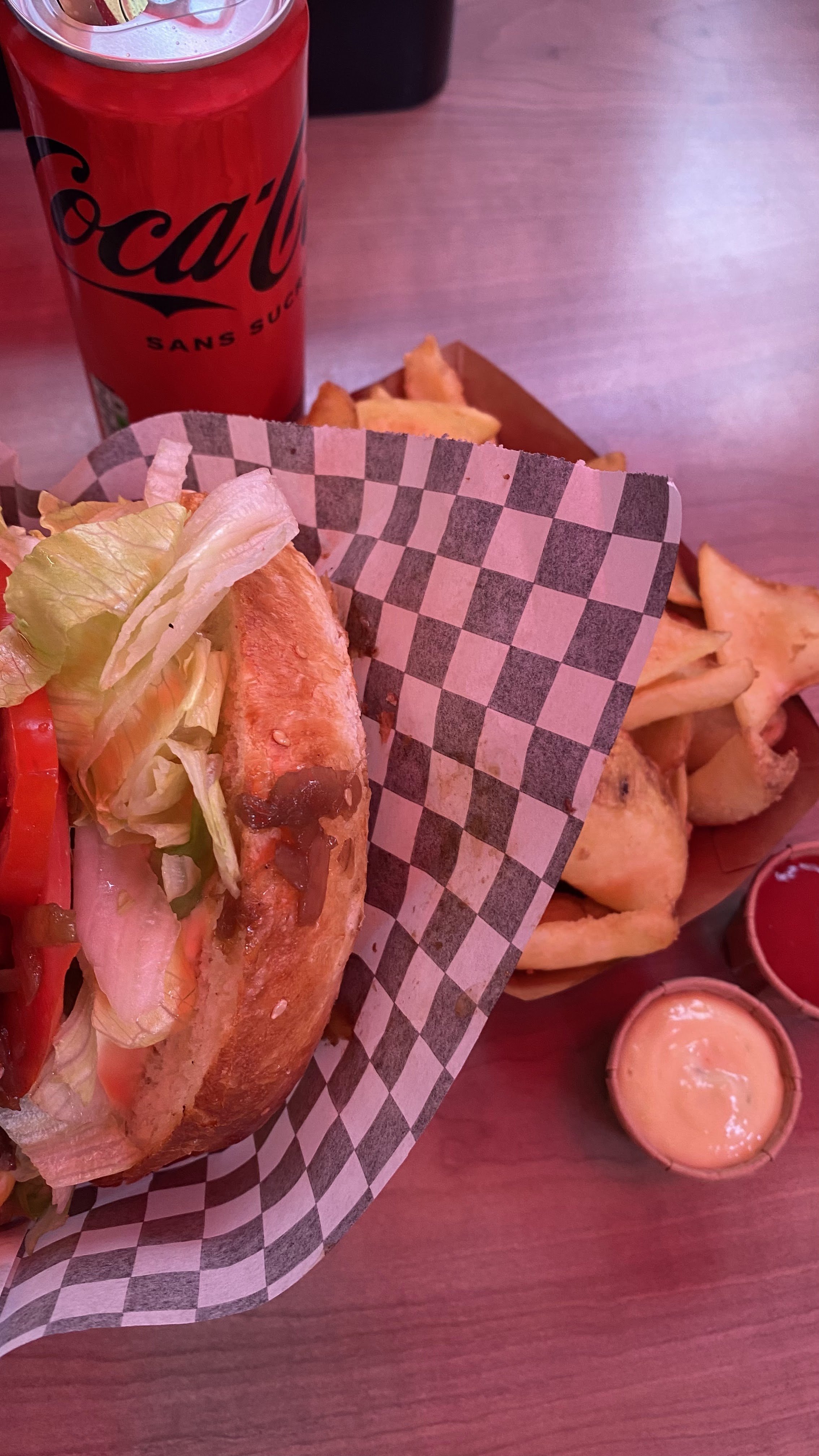 Excellent les burgers sont énormes et délicieux! La serveuse est super cool et vraiment charmante (je crois bien que je suis tombé amoureux lol). Dès que je peux j'y retourne!