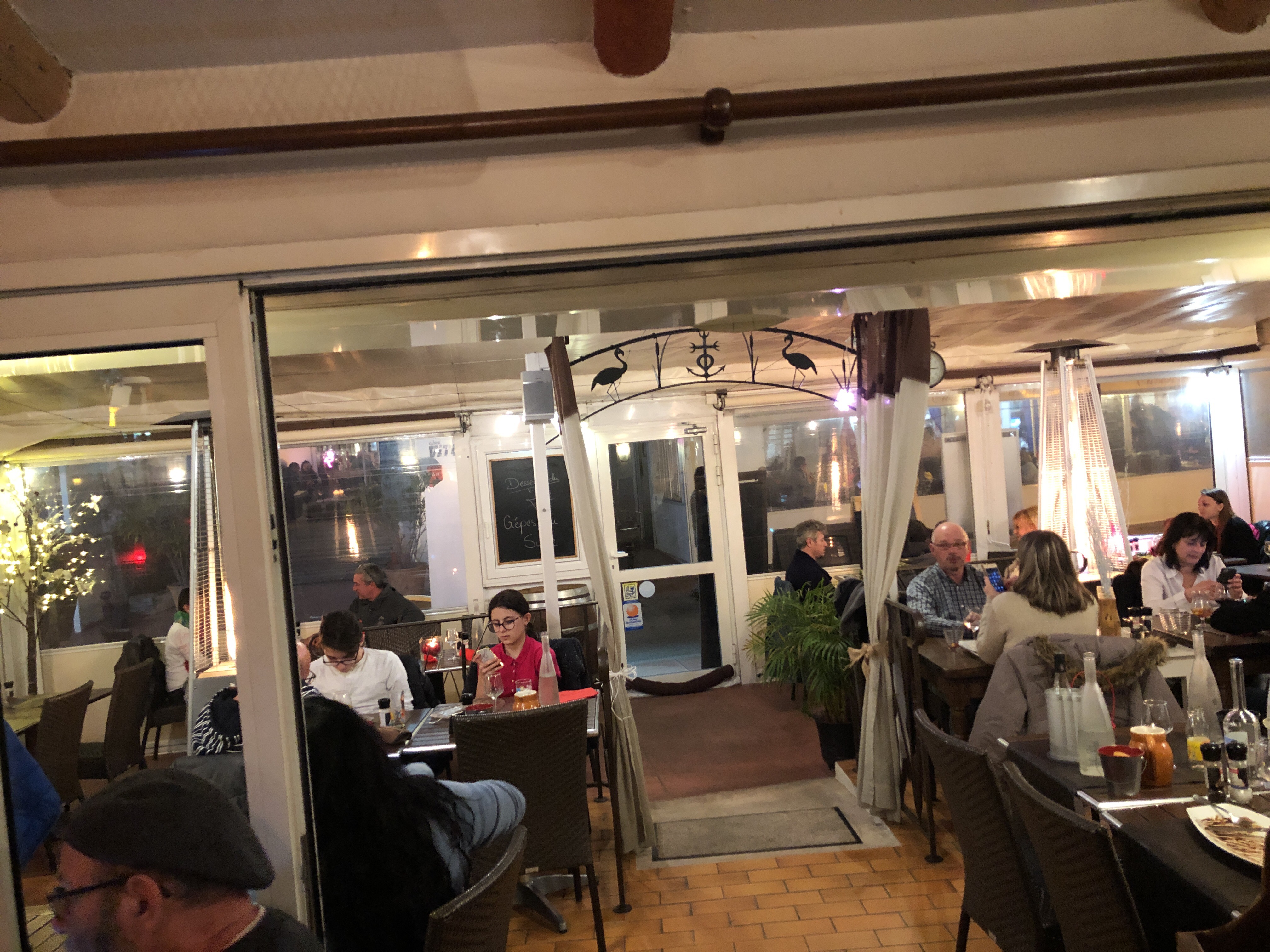 Cadre agréable , terrasse chauffée en mars, paella excellente et dessert très bon et copieux .. service agréable et rapide