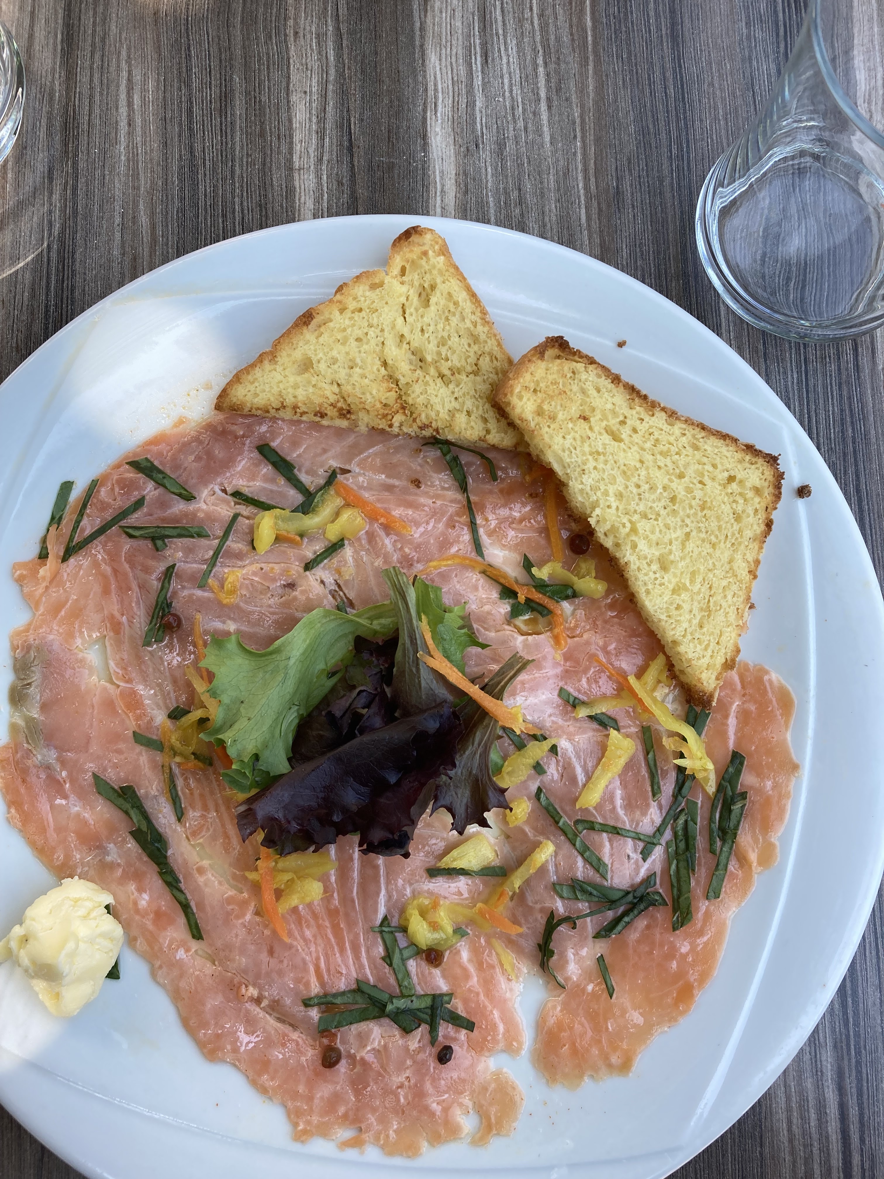 Très bonne cuisine et service excellent. Bon choix de musique en ambiance, un jour de pluie comme celui d'hier casse quand même un peu le cadre. On reviendra un jour de beau temps pour réhausser cette partie de la note.