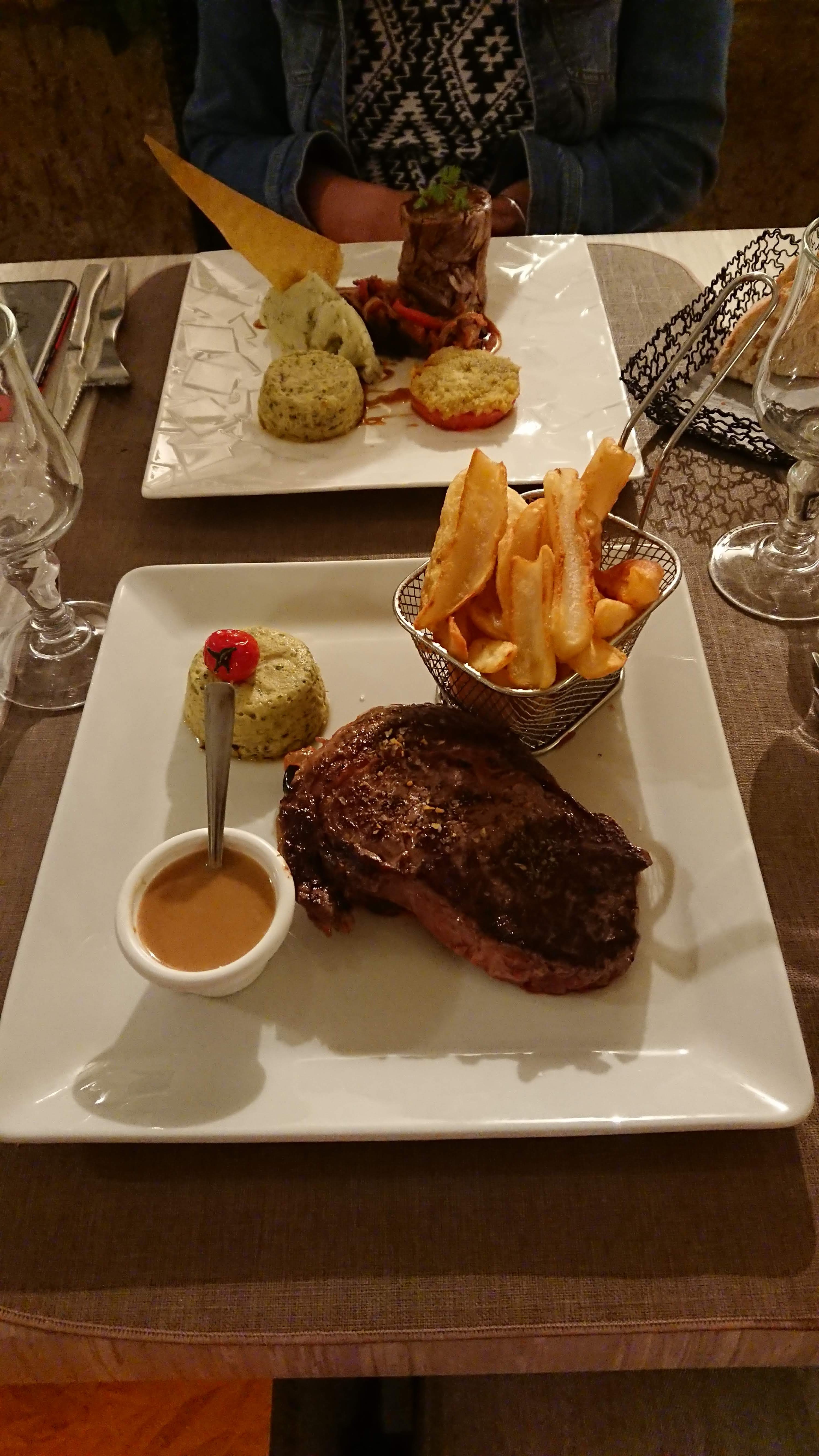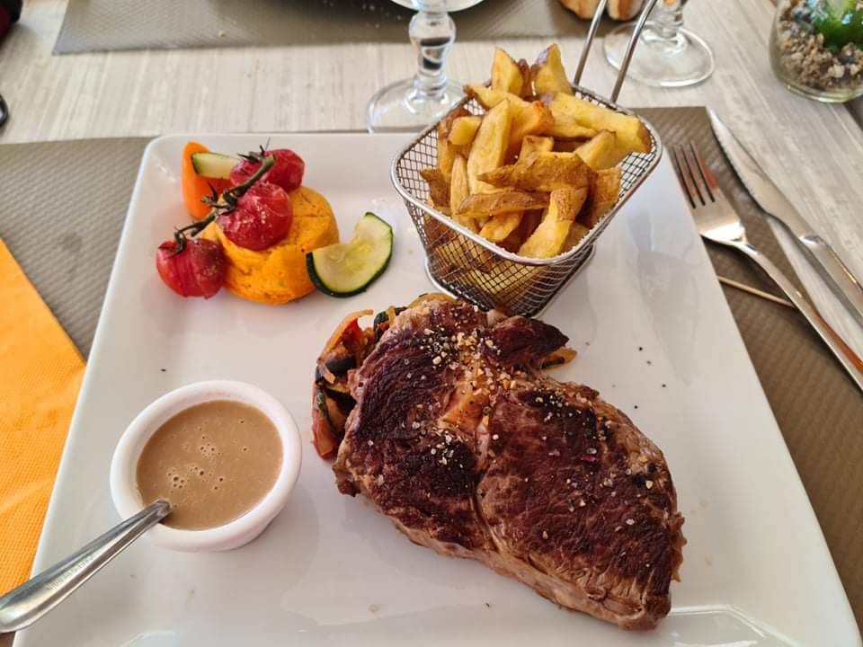 Au top !! ⭐️⭐️⭐️⭐️ 🥗 : très bien présentés ! Les cuissons des viandes sont biens respectées. Les plats sont très bons. Frites maisons, fraîches. Service: on a eu un peu d attente pour nos plats mais vu la qualité c’est compréhensible! Impeccable dans l ensemble. Prix : 💶💶💶 (Tous les restaurants autour ont le même prix à peu près)