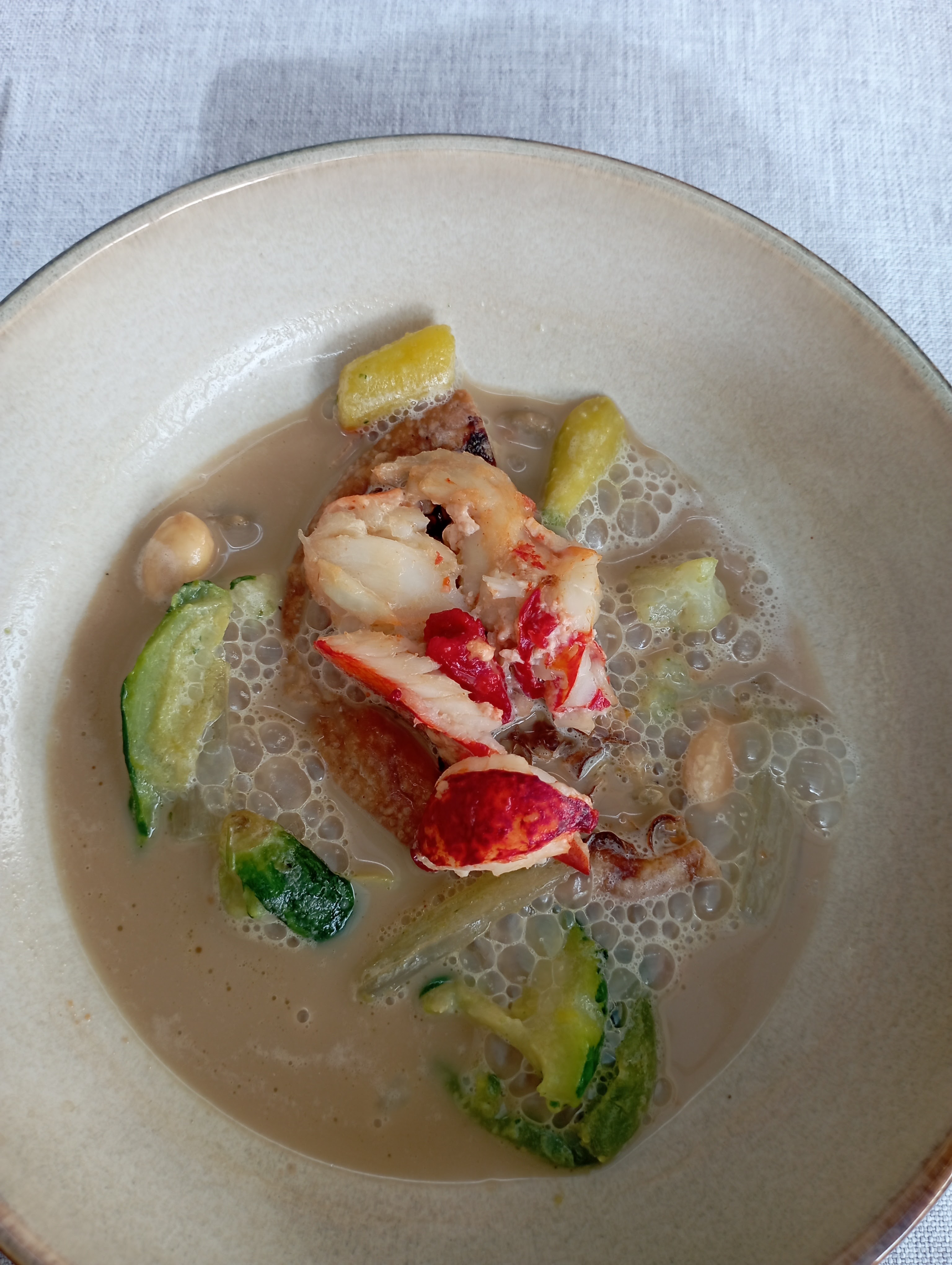soirée décevante: un jeune serveur vous reçoit un peu fraichement , mais surtout doute de la nécessité de changer le verre de vin blanc qui contenait manifestement du bouchon ! puis il passe au vin rouge sans changer les verres !! et précise que cela ne changera pas le goût .. !!! il s'est fait remplacer par une aimable jeune femme . en ce qui concerne l'assiette : entrée très bien , homard délicieux et catastrophe pour les ris de veau pour le moins desséchés . !!! très bon dessert mais la soirée était gâchée ....