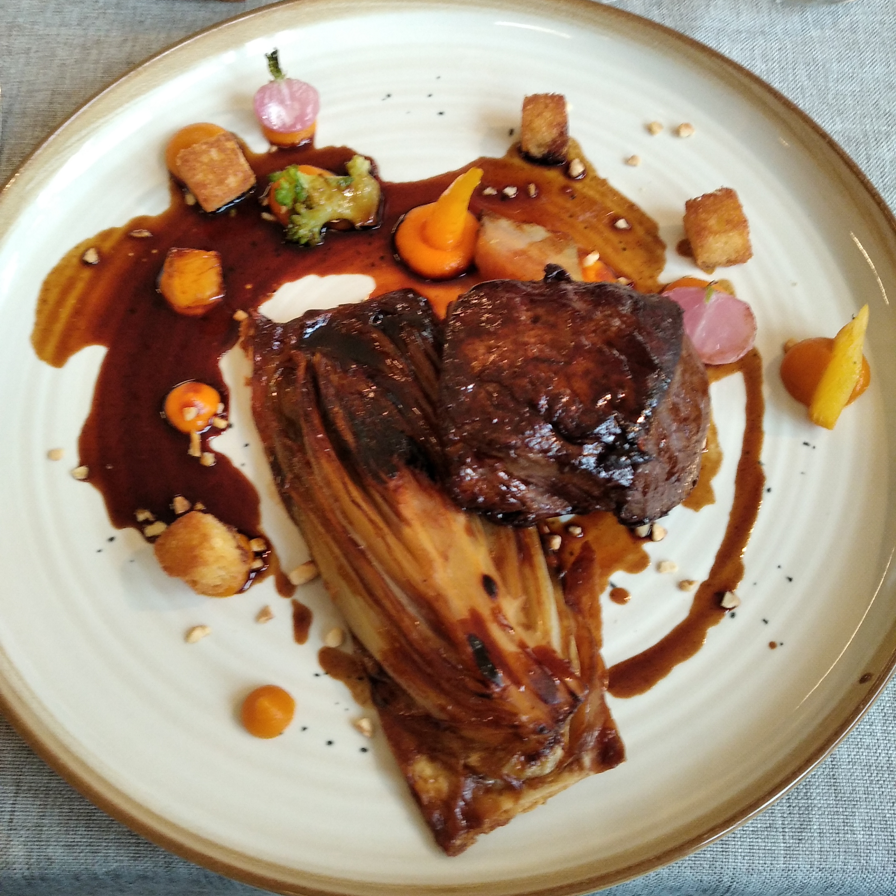 Dîner absolument délicieux, cuisiné et présenté par un véritable artiste. Des joues de porc incroyablement tendres et des escalopes parfaitement cuits. Je reviendrai!