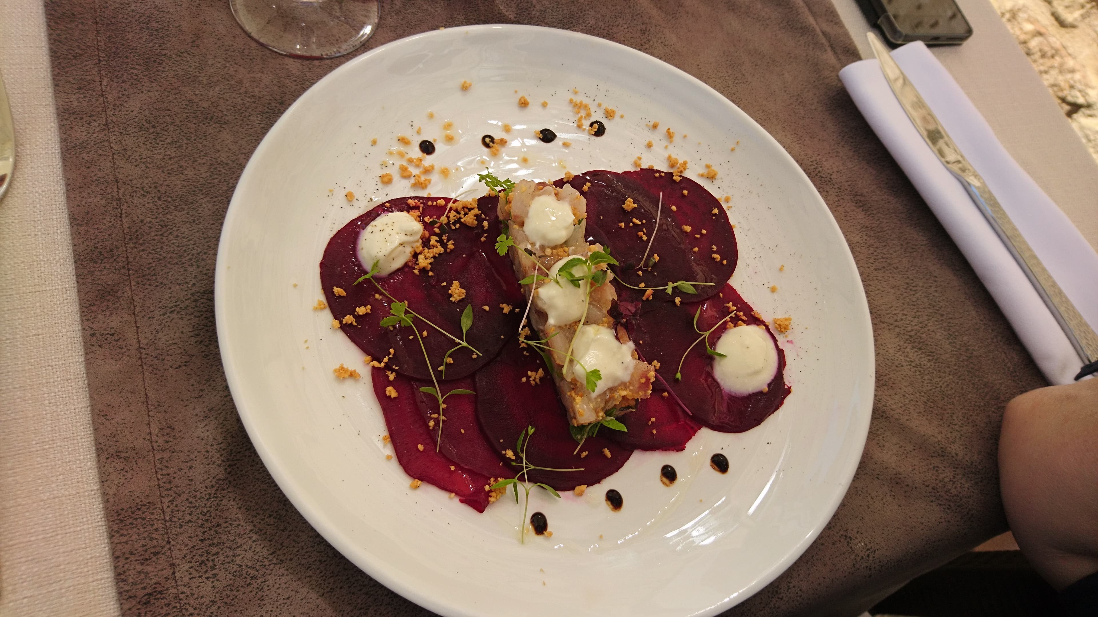 Tres raffiné, personnel jeune et TRES agreable et professionel pas specialement bon marché 280€ a 5, mais tellement bon.
