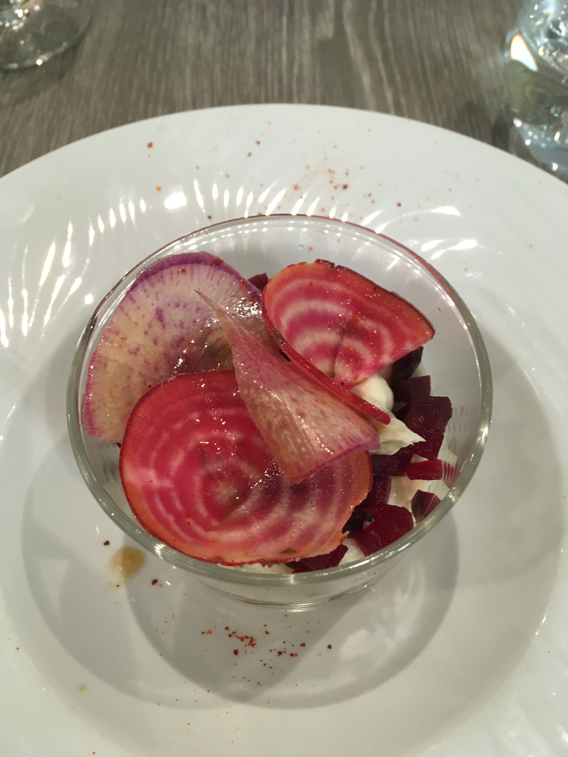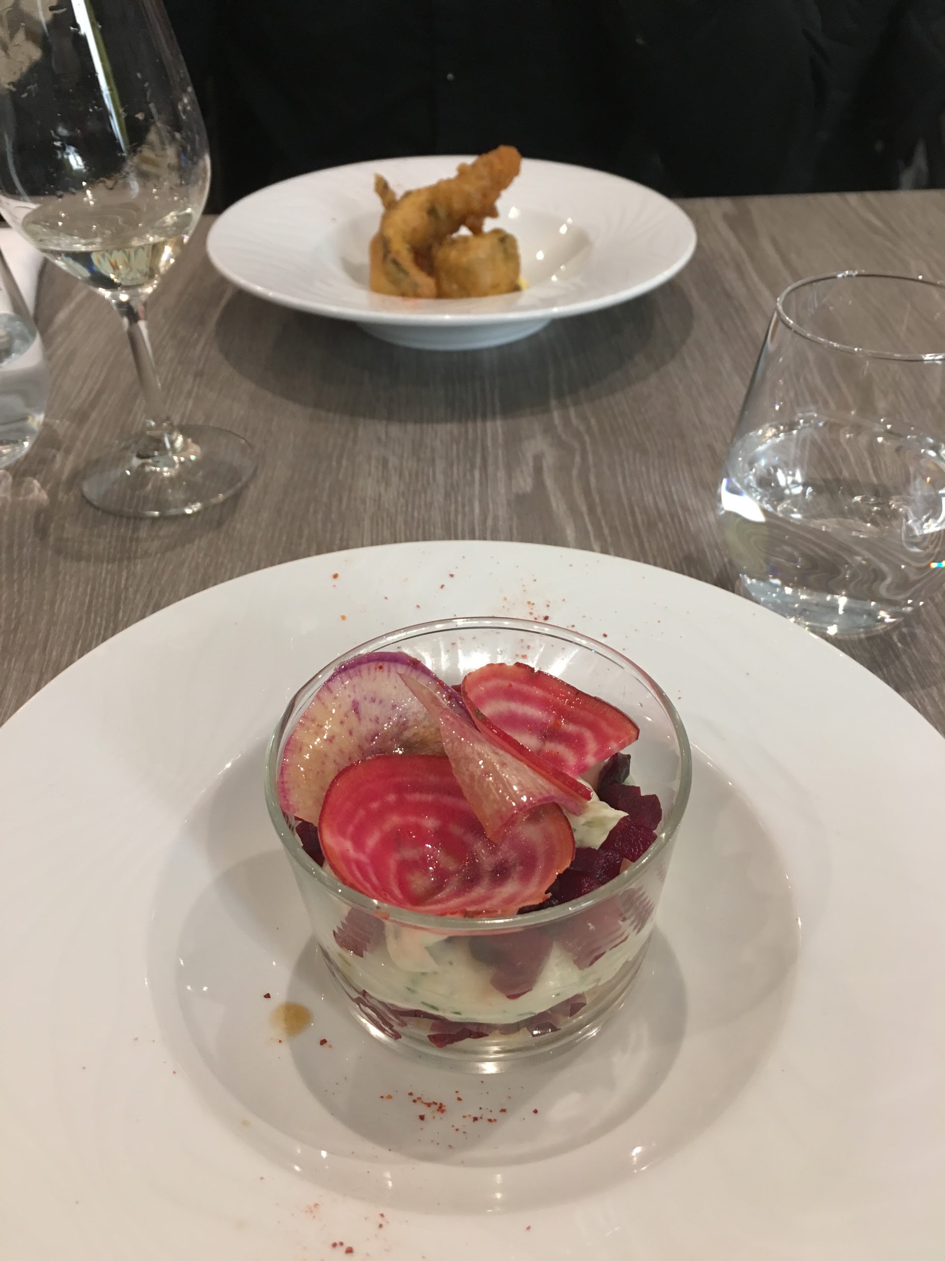 Belle présentation dans les assiettes mais je m’attendais à quelque chose de différent au niveau du goût. Nous avons cependant beaucoup apprécié les amuses bouches en début de repas.