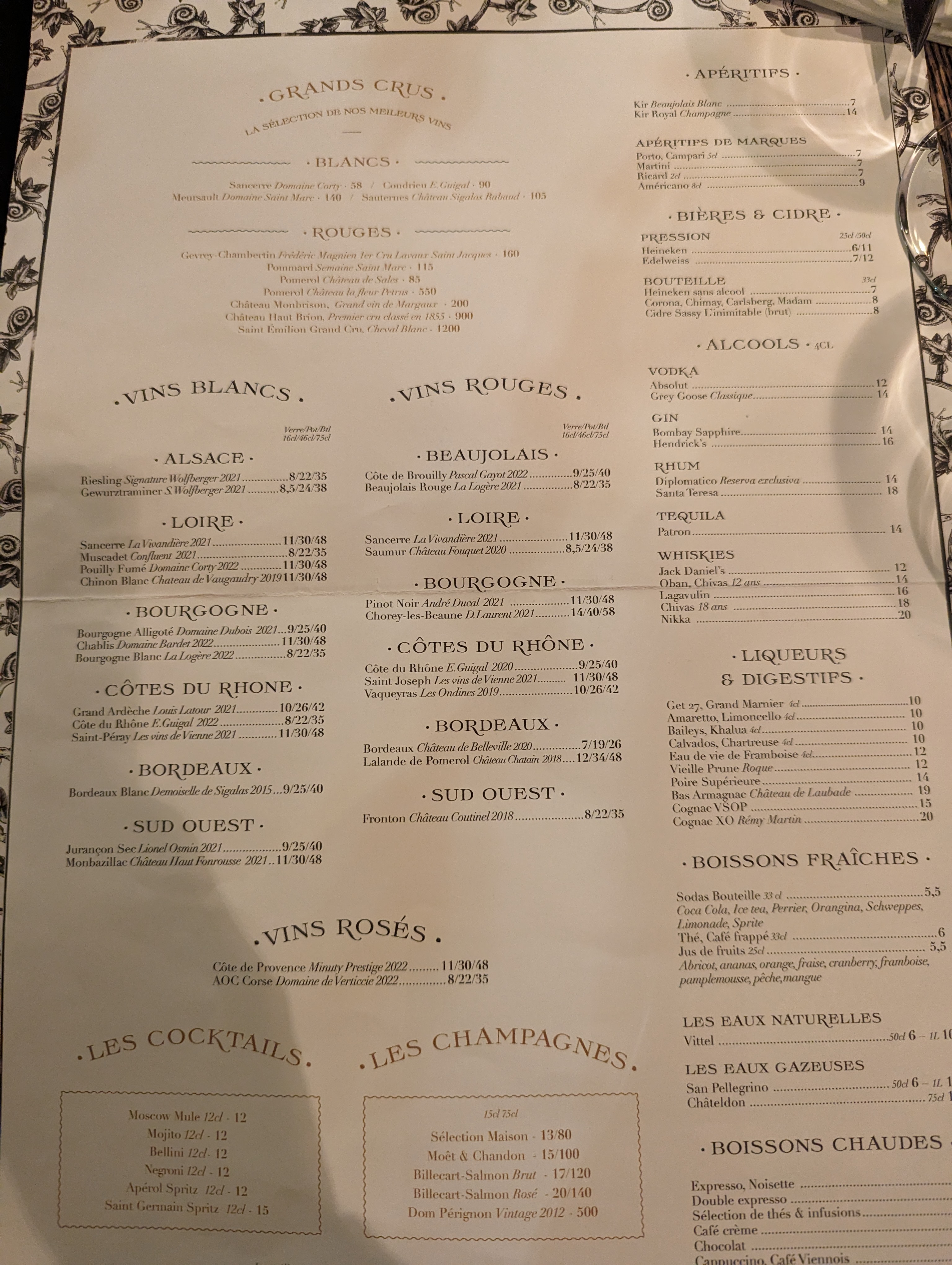 Je recommande fortement les cuisses de grenouilles et les escargots. Très belle prestation. Les prix ne sont pas bas, mais ça vaut le coup