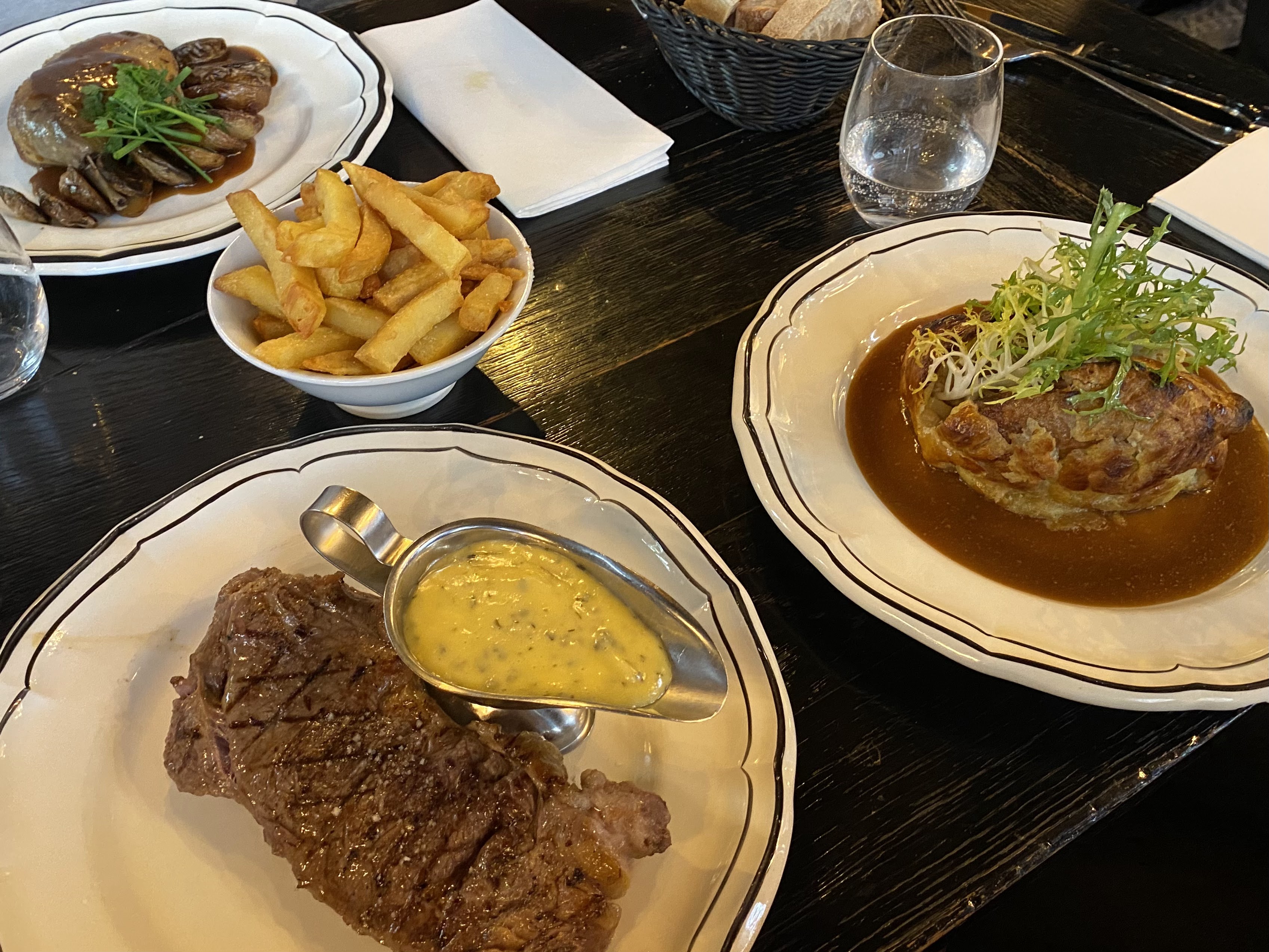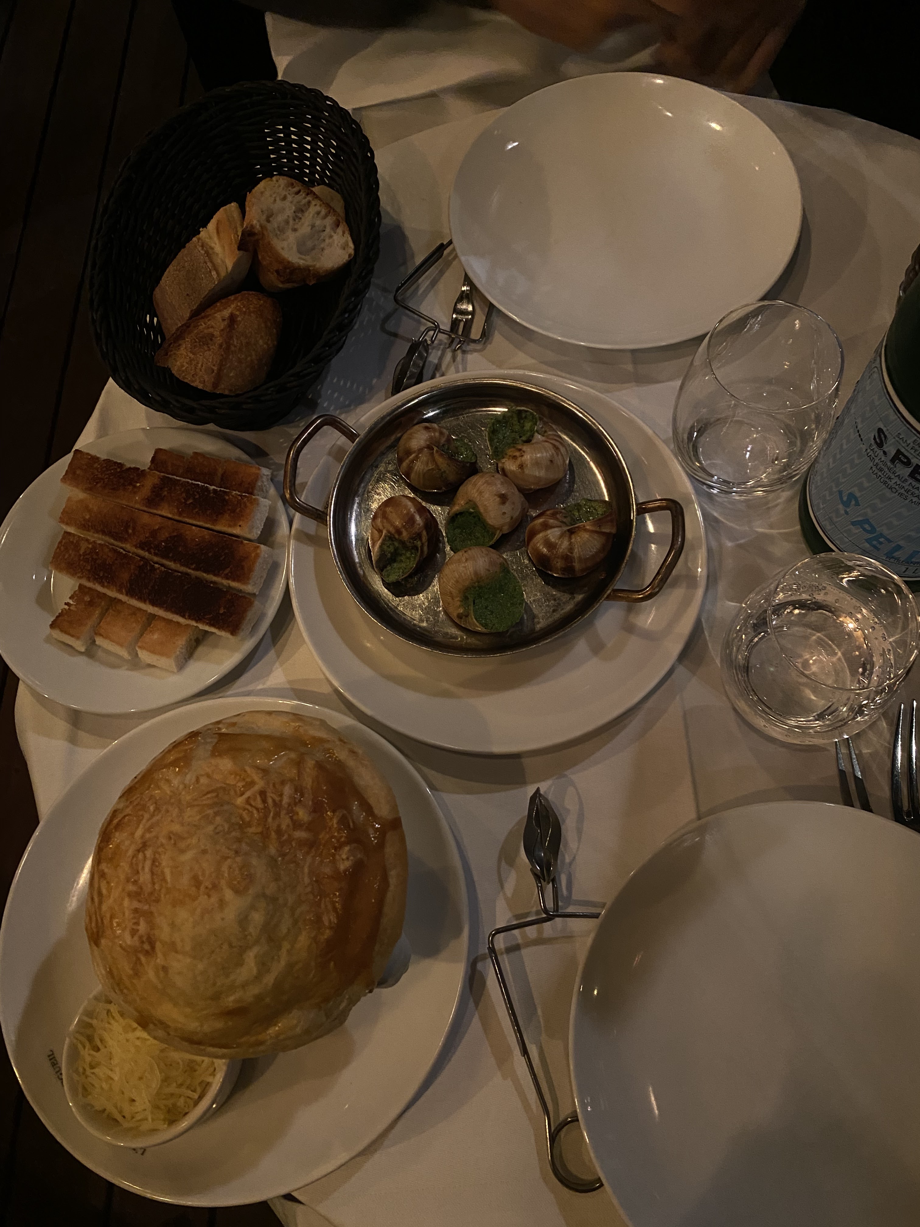 Escargots top avec plusieurs goûts originaux. Soupe à l’oignon traditionnelle geniale ! Cependant le boeuf rossini etait un peu rèche et dure pour un filet de boeuf. C’etait moins tendre que ce que j’esperais. Service sympathique! Par contre je ne sais pas si c’est à cause de touriste mais la proprete des WC laisse totalement à desirer pour un restaurant …. Le côté sombre tamisé ne permet pas de le cacher.