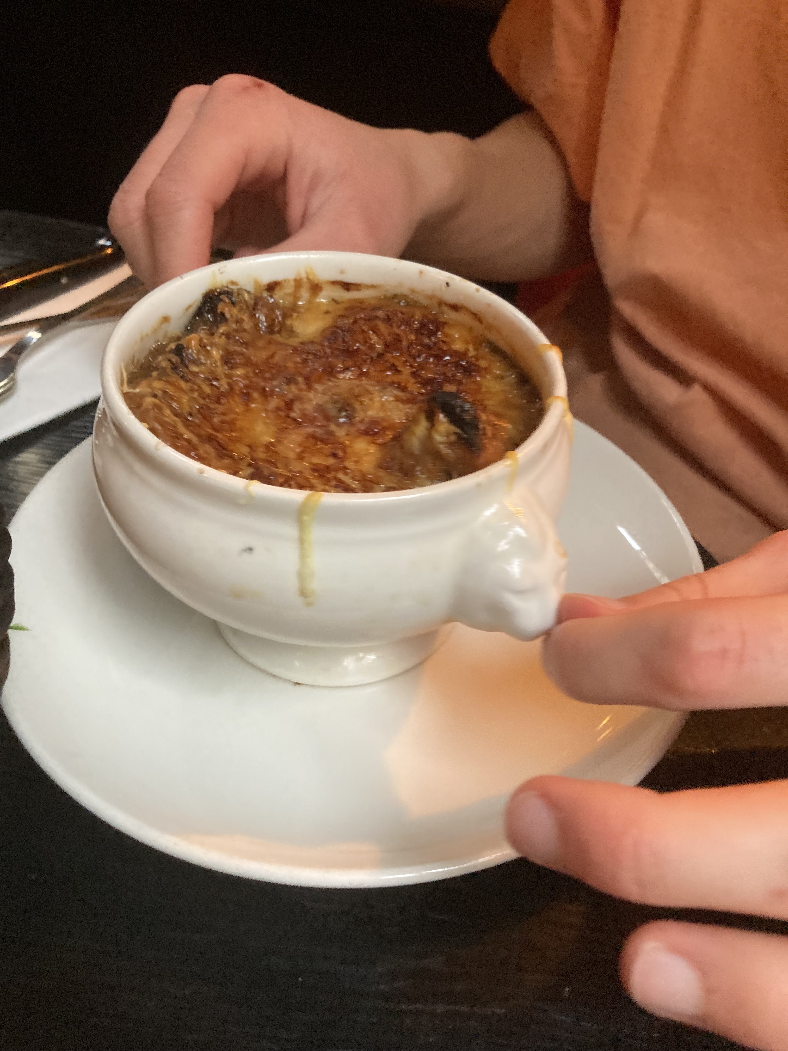 La nourriture est très savoureuse❤️ Nous avons pris des escargots, de la soupe à l'oignon et des cuisses de grenouilles. Les pattes ne sont pas grasses, c'est juste une sauce au beurre. Les escargots sont charnus et gros. Le service est super, des serveurs très sympas. Notre commande est arrivée au bout de 5 minutes👍
