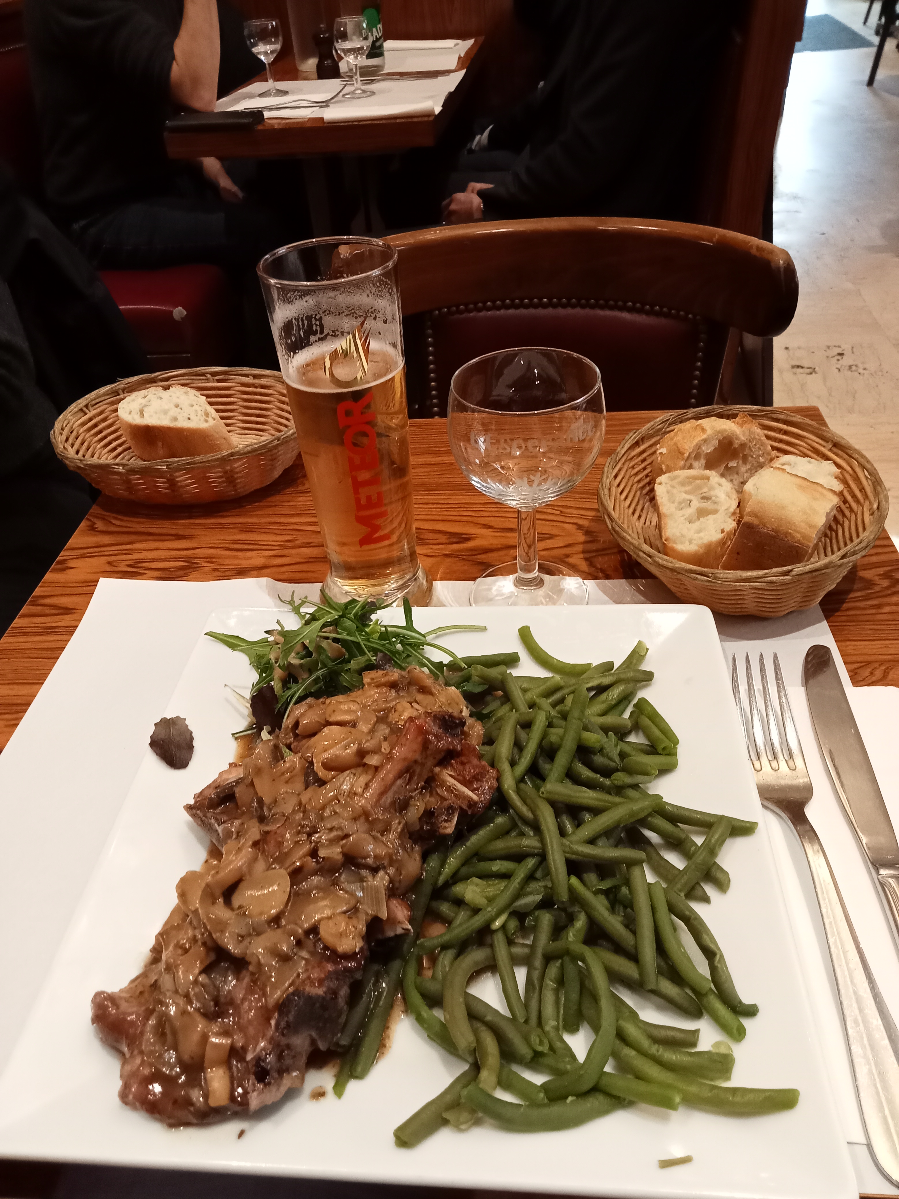 Plat du jour commandé qui était du veau mijoté. Portion assez grosse et bonne ! Le service était correct mais comme j'ai mangé vers 15 heures à la fin de l'heure du déjeuner, le bruit de la collecte des plats usagés était insupportable ! Le prix était raisonnable dans la région.