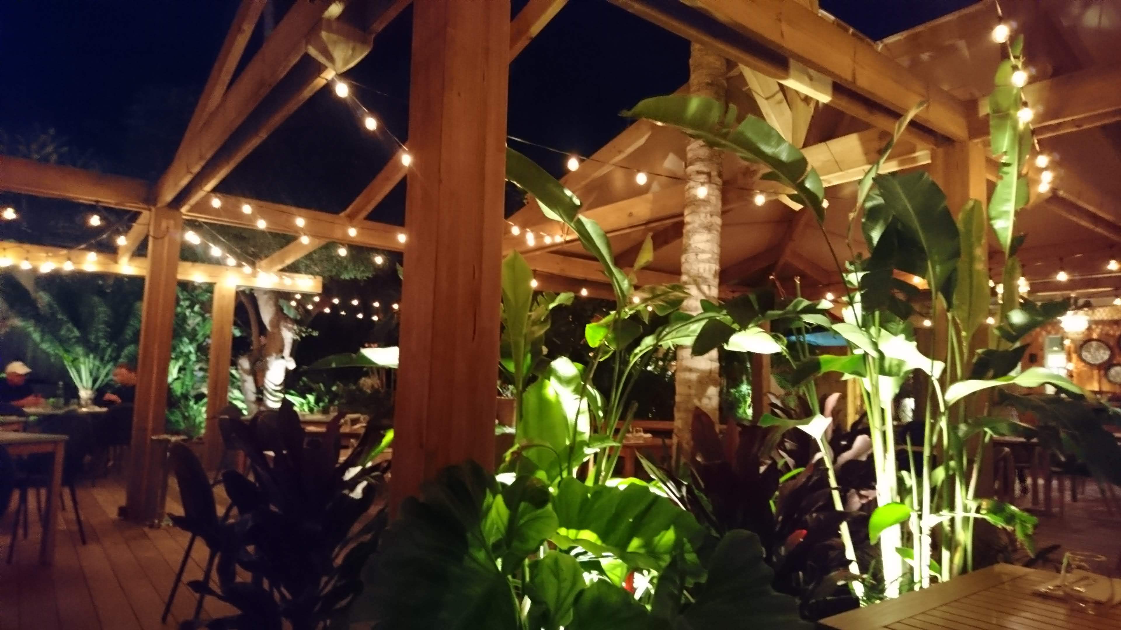Les photos ne rendent pas justice à cet endroit. Le bâtiment est ouvert sur les côtés et comporte plusieurs ouvertures dans le toit mais entouré d'arbres et de plantes avec des arbres poussant à travers le toit. Le personnel était très attentionné et notre serveur était heureux de nous parler. La nourriture était tout aussi fantastique, nous avions du foie gras, des coquilles Saint-Jacques et un soufflé au chocolat. Le menu est cher mais ça vaut le coup !