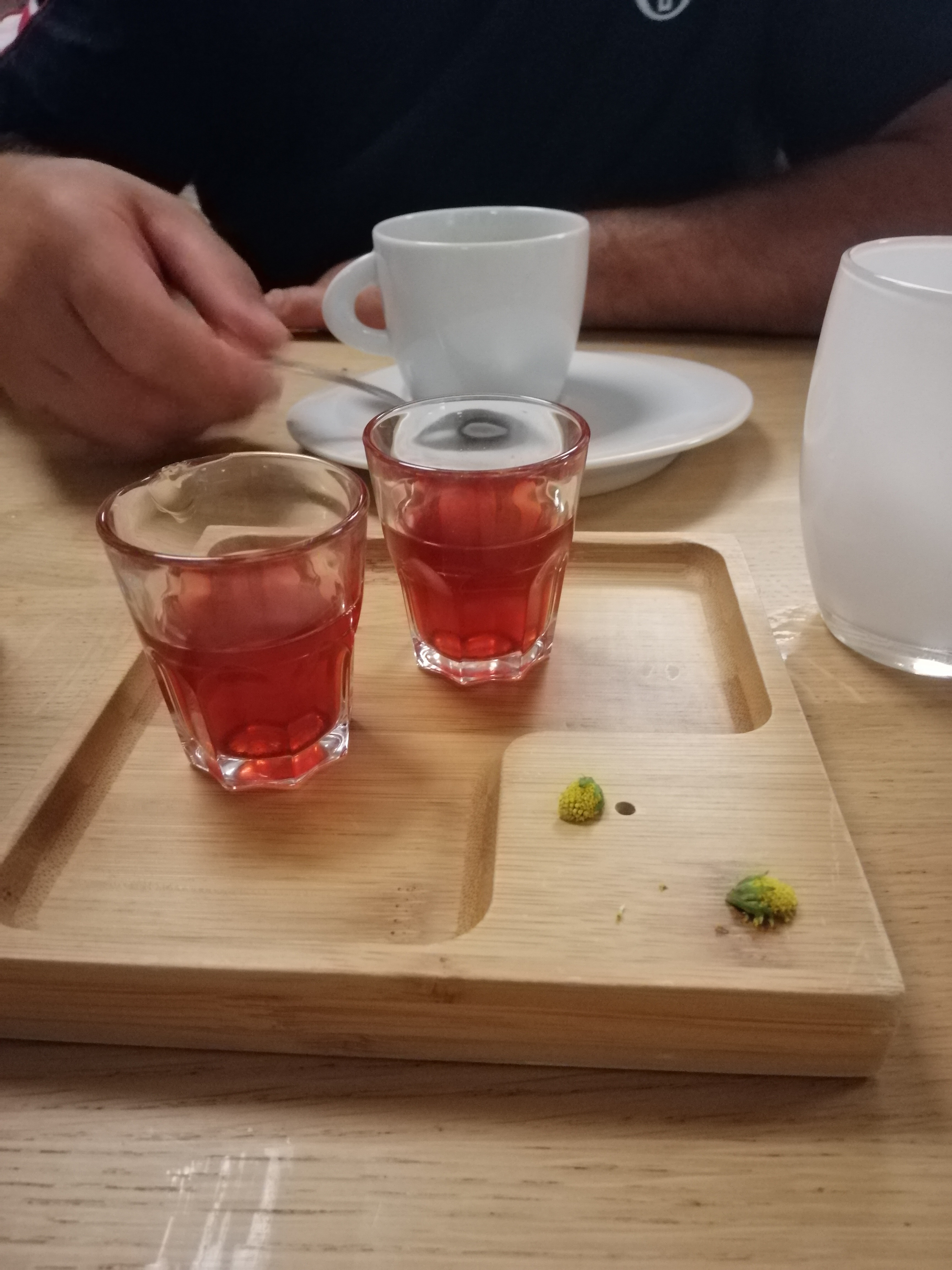 Accueil et service impeccables. Délicieux petits amuse-bouches avant l’entrée, et en fin de repas une magnifique surprise avec ce bouton de camomille(?) à croquer avant de boire une petite tisane froide maison, laissant un goût acidulé, pétillant et rafraîchissant. Bon choix de vins au verre.