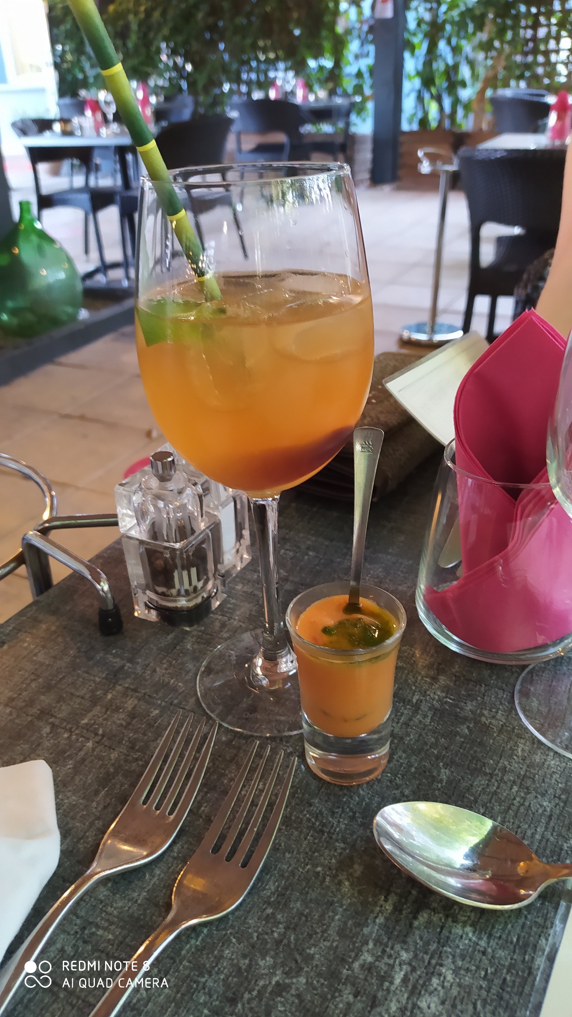 Bonjour. Un répondeur, sans possibilité de laisser un message, nous répond que le restaurant est ouvert du mardi au samedi de 10h00 à 14h30. 3 appels successifs. Or, à 12h45, mardi 2 août, il est impossible de joindre quelqu'un pour réserver une table ce soir. Il n'y a rien de plus sur FB. ??? On va aller ailleurs ? Dommage. Bien à vous. Deuxième tentative quelques jours plus tard. On réserve pour midi...on y va. Bon accueil. Parking clientelle. Très belle terrasse très ombragée par un toît en paille-canisse qui isole bien du soleil. Il y fait tout de même trop chaud, on est en période de canicule, et l'absence de ventilateur est regrettable, on transpire en mangeant. Le choix n'est pas très important. Juste suffisant...??? Cocktail, apéritif à la hauteur, entrée, plat, dessert, c'est gourmet, même excellent. Raffiné, recherché ! Le service est réactif, bravo ! La musique n'est pas trop forte, merci. On se renseigne pour organiser de petites réunions avant midi ou après le déjeuner...dans la petite pièce du fond, à l'intérieur...mais ce n'est pas possible, ni le matin à 10h00, ni l'après-midi. On serait pourtant 15 à 20 personnes, une fois par mois...toute l'année. Pénurie de personnel ?! Peut-être... À la caisse un café est offert. Je remonte la note de 2 à 3 étoiles seulement parce que je n'ai pas ressentis une amabilité naturelle ni débordante , et même peut-être retenue ? Bien à vous. Michel D.