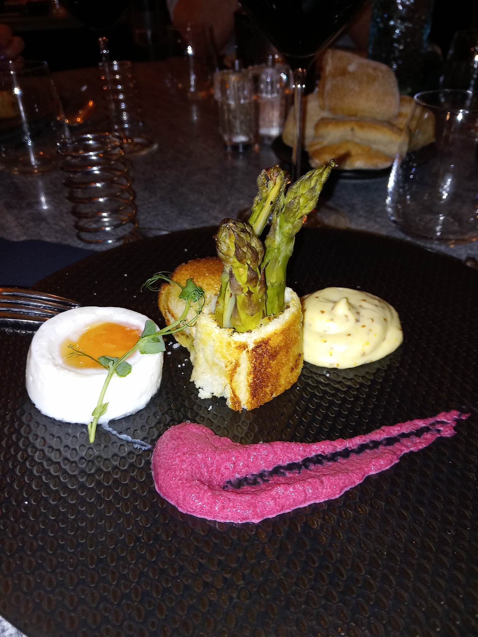 Déception est le mot qui résume la soirée. Accueil satisfaisant même si l'on est jaugé de la tête au pied. Service rapide trop rapide. Beaucoup de mise en scène dans les assiettes pour rien. Pas de saveurs. Défaut d'appellation un écrasé de pommes de terre qui est en réalité une purée, tarte aux légumes, pas de pâte à tarte mais une tranche de pain de mie. Peut de légumes un goût de tapenade. Tomates au four même pas confite...dorade sans assaisonnement. Le dessert Charlotte un biscuit de la crème fouettée et des framboises.