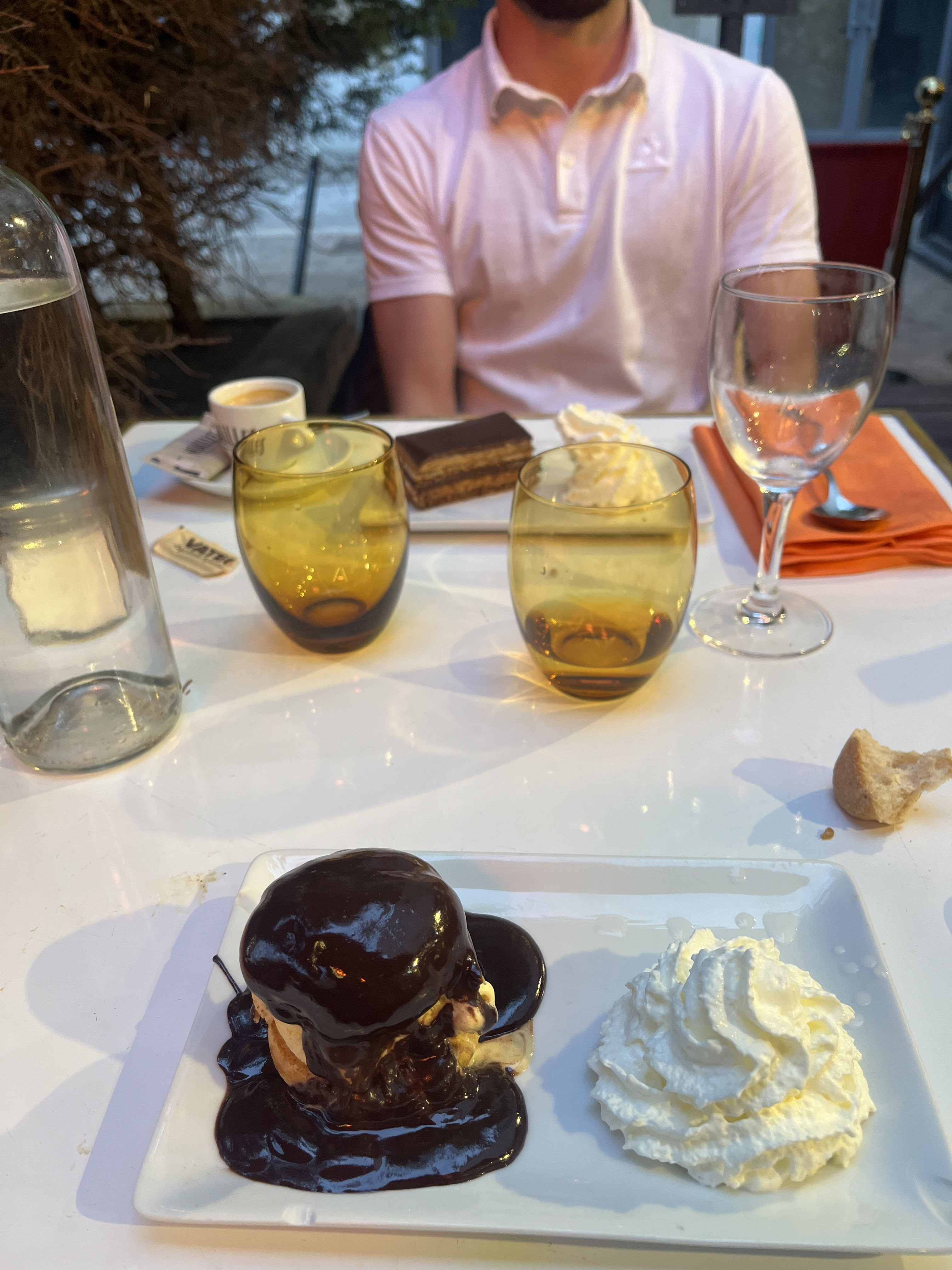 Menu à 20e correct même si le poisson trop cuit et la profiterole trop sèche congelée encore et pas top. La patronne agréable par contre la serveuse et le monsieur devant pas du tout avenants. C'est dommage car le resto est propre avec belle déco et bien placé