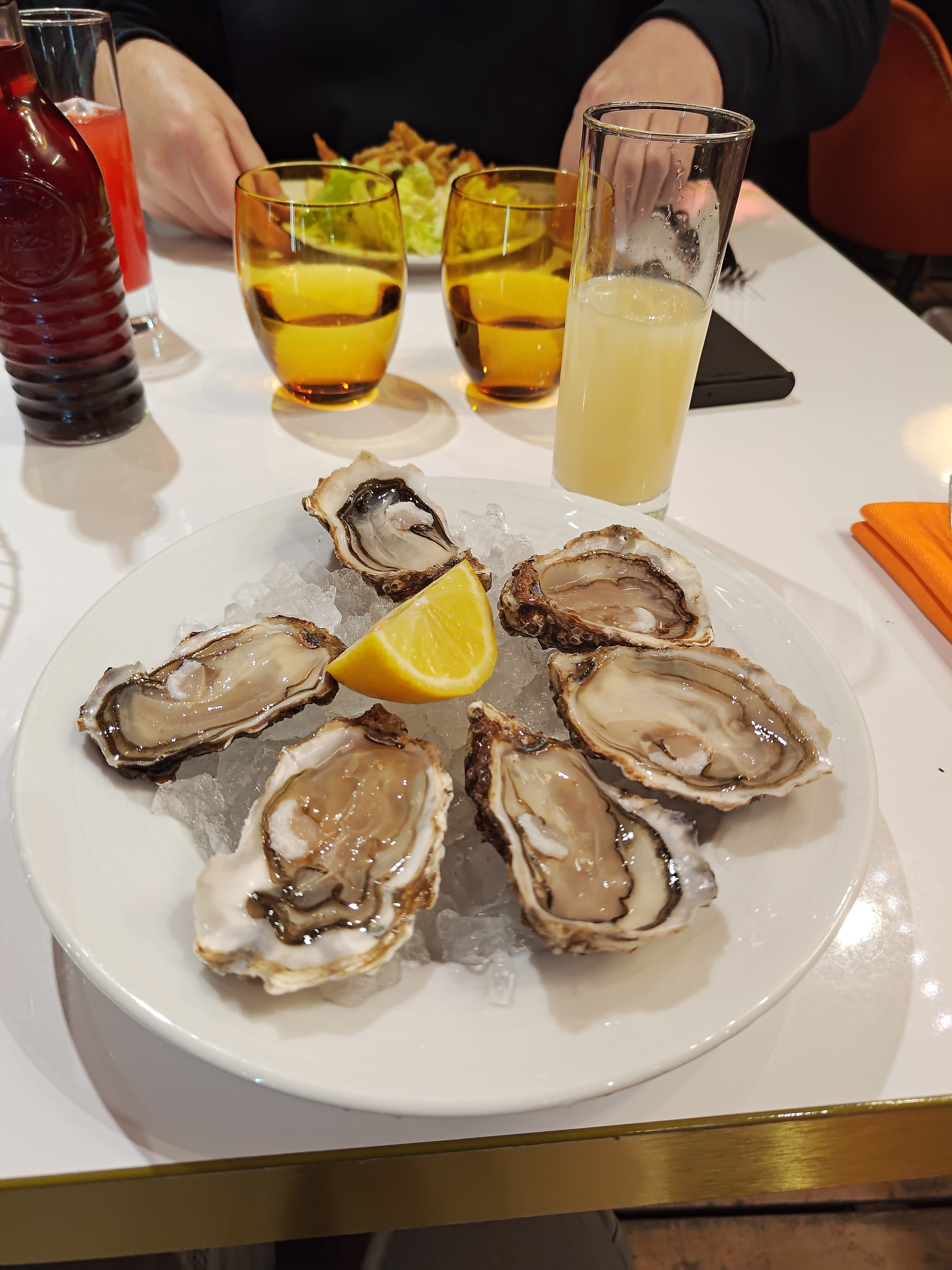 Restaurant agréable, sur une place super animé. Beau décor. Accueil moyen, dommage Service très long 40 mn pour 6 huîtres pas de beurre pas de vinaigre échalotes pour le pain il a fallu le réclamer, dommage. Pour le reste des plat nous avons eu des personnes différentes, je comprends pas le mode de service. Assiette bien servir mais manque un minimum de déco: un bout de persil ou autres c'est dommage sa fait penser à un self.