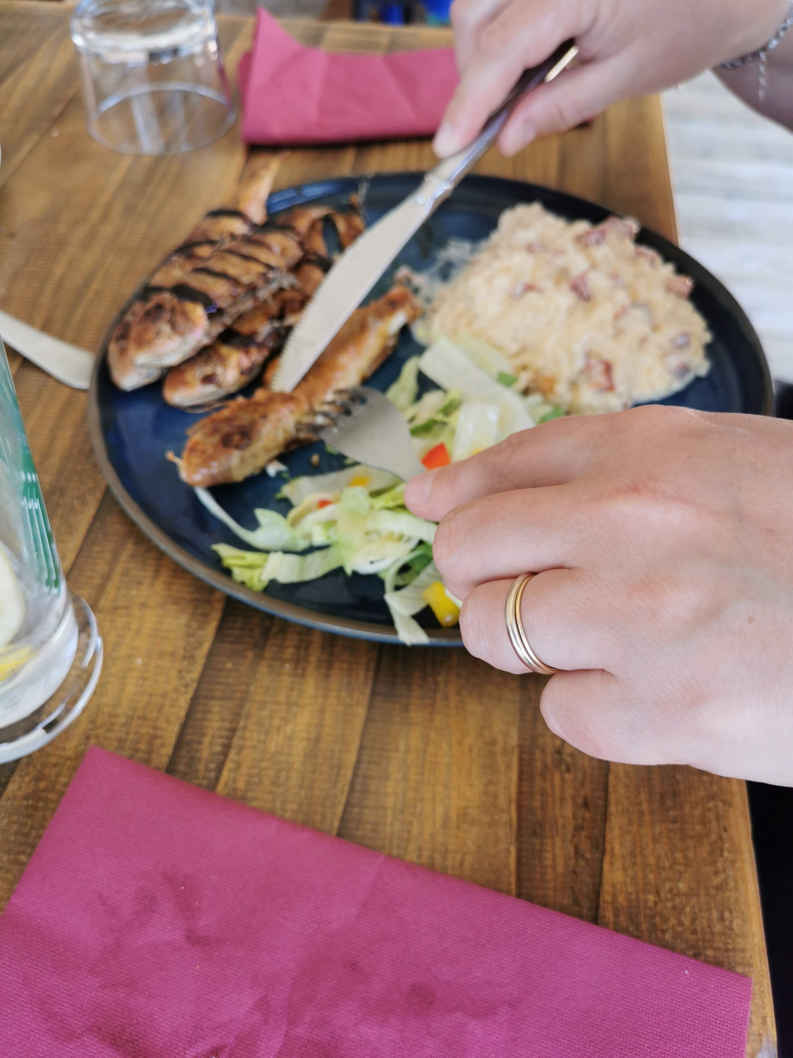 L’Esquirey est cette grande épuisette plate utilisée pour capturer les crevettes, les petites crevettes grises du Bassin. Un petit endroit de port ostréicole habité de locaux venus se retrouver plus que se restaurer. L’ambiance n’est pas touristique mais la nourriture est sympa, traditionnelle. Propre. Même les toilettes sont propres. Tout est dit. Ce resto est facile à trouver, c’est juste entre Eliette et Huguette.