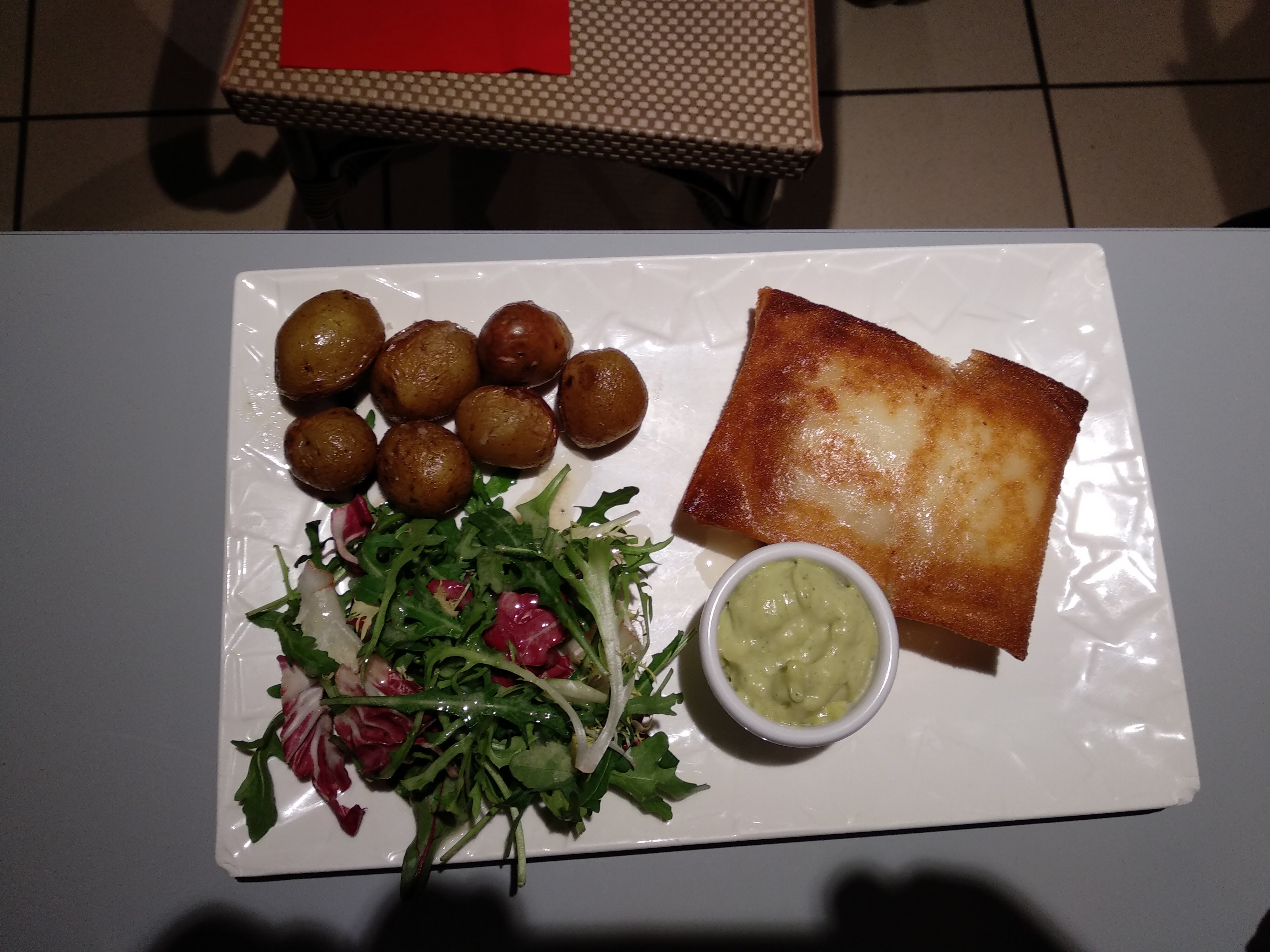 Bon plateau. Dommage d être placé sur le côté avec les remontées des égouts. Les desserts ne sont pas à la hauteur. 7 e l abricot pas mur avec une Boule de glace.......