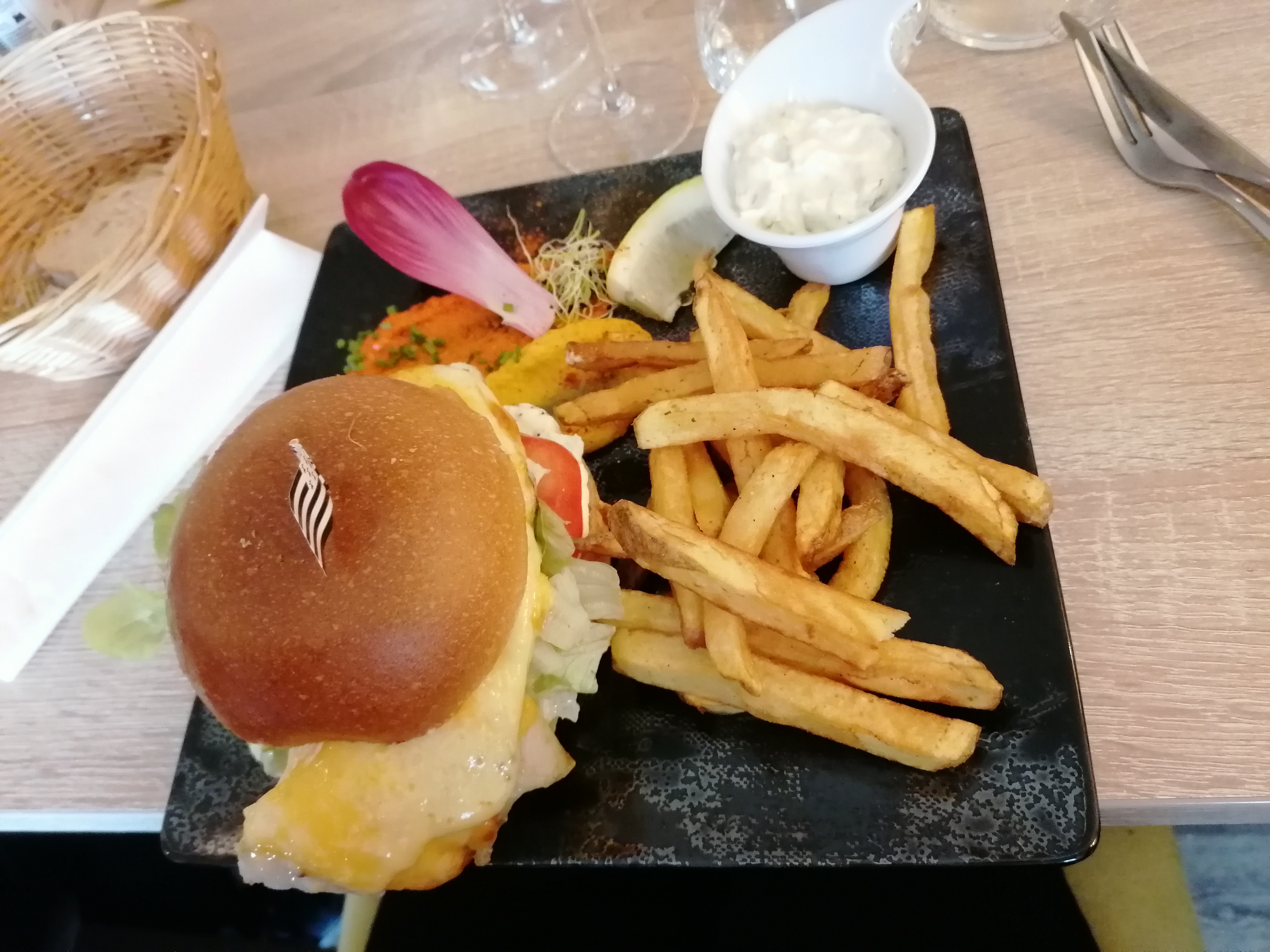 Très bon restaurant, nous avons très bien mangé, poisson du jour et burger maison. Seul bémol j'avais demandé le burger sans sauce tartare hors il est arrivé normal, j'ai enlevé la sauce mais petite déception. A part cela la cuisine est très fine, les assaisonements justes, les cuissons respectées... Second bémol qui nous a valu de ne pas mettre 5 etoiles l'attitude de la serveuse au moment de payer, je souhaite régler en chèque vacances et je me suis vu recevoir des commentaires désagréables et une bonne moral sur le fait que l'état taxe les restaurants sur le paiement en chèques vacances, une bonne culpabilité pour que je choisisse un autre mode de paiement, je souhaite tout de même régler de cette manière, total elle m'indique repasser chercher mon reglement, elle passe et repasse mais nous ignore completement, j'ai finalement amener ma note et c'est son collègue qui m'a encaissé, nous n'avons même pas eu droit à un au revoir malgré nos remerciements pour le repas... c'est décevant de finir sur cette note alors que le repas était vraiment excellent !