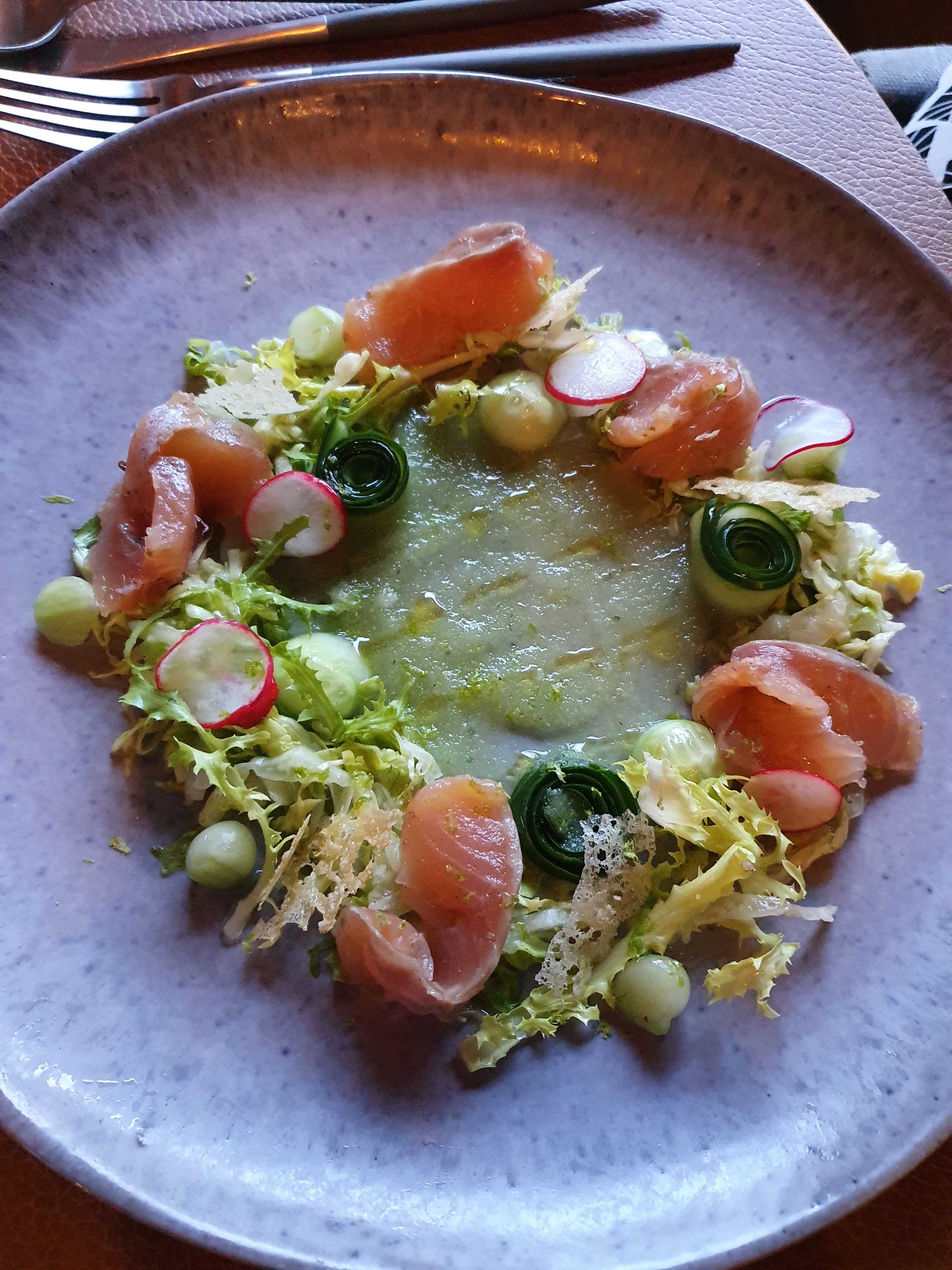 Personnel très agréable, une recherche et un travail poussé sur l'esthétique et les nuances des plats, que ça soit sur le goût ou la présentation. Je recommande vivement