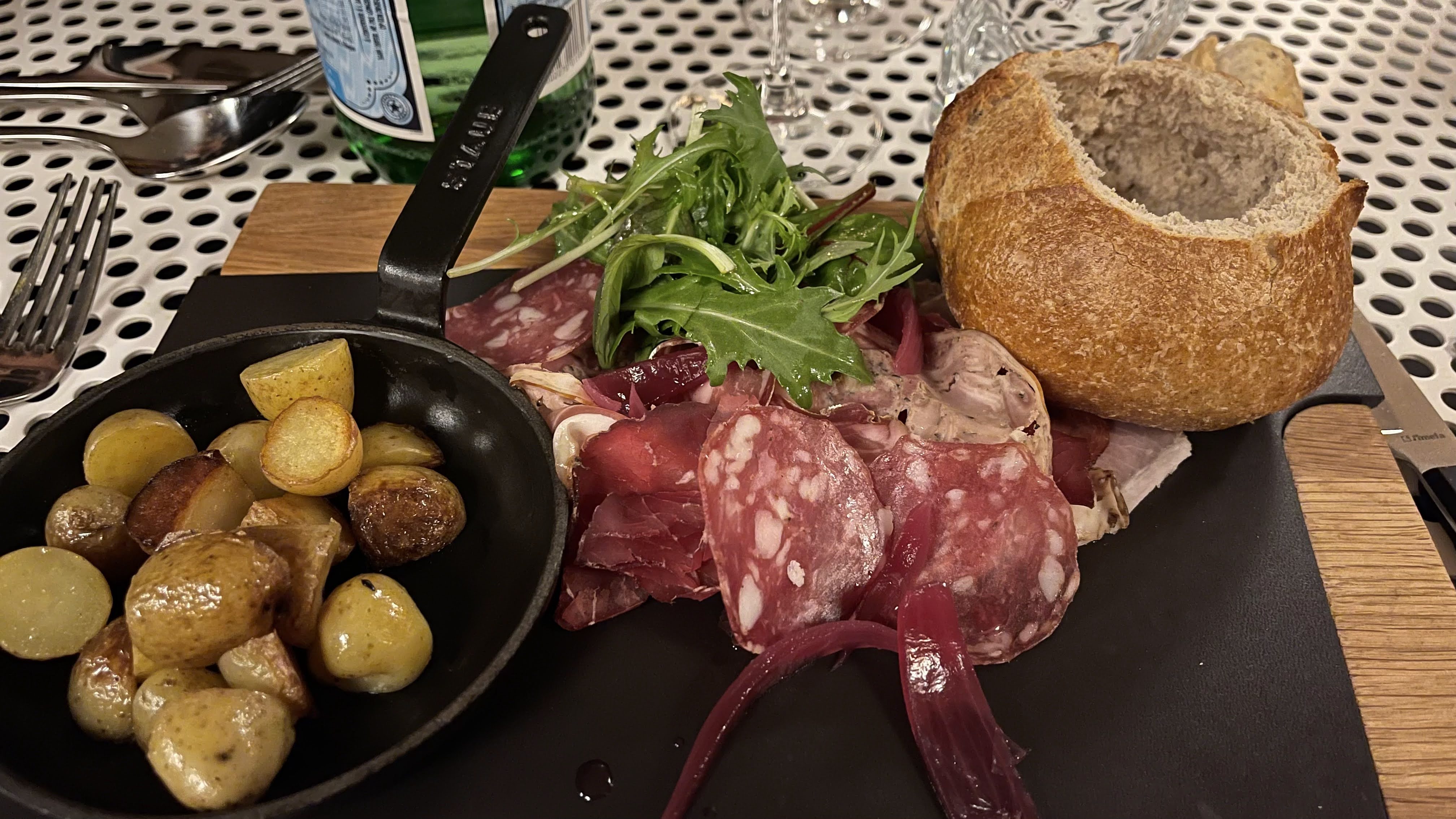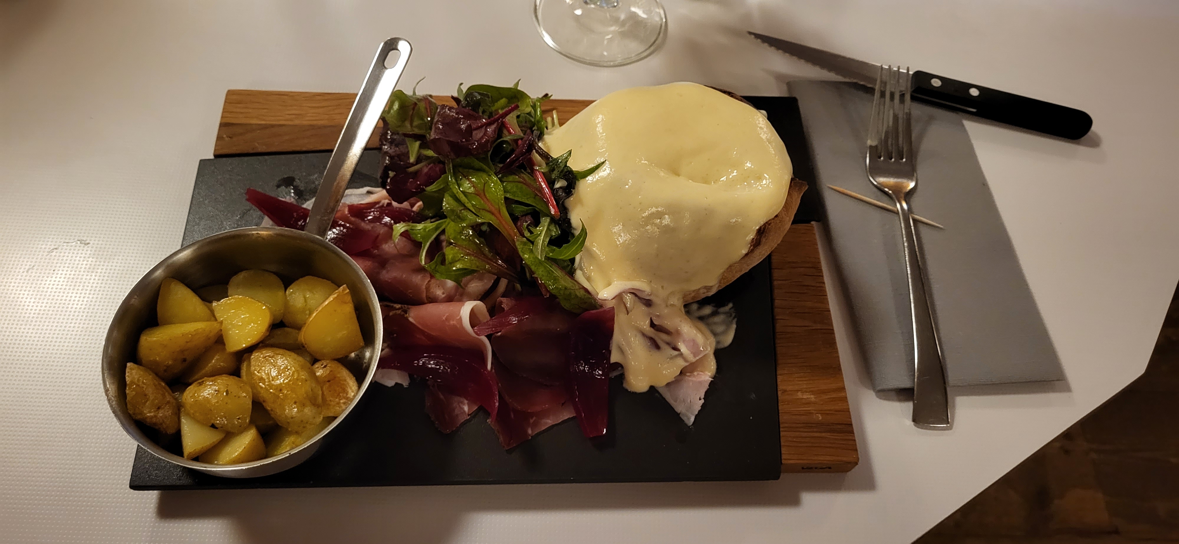Un très bon souvenir gustatif ! Bien sûr, goûté à la fondue « espuma » une idée originale de servir la fondue avec un syphon. On mange beaucoup moins de pain, on ne risque pas de perdre son croûton ! Petites pommes de terre, assortiment de charcuteries et fromage à volonté. Bon, savoureux mais un peu cher pour ce que c’est (32€). Les autres mets sont bien choisis. Permet d’accueillir de grands groupes.