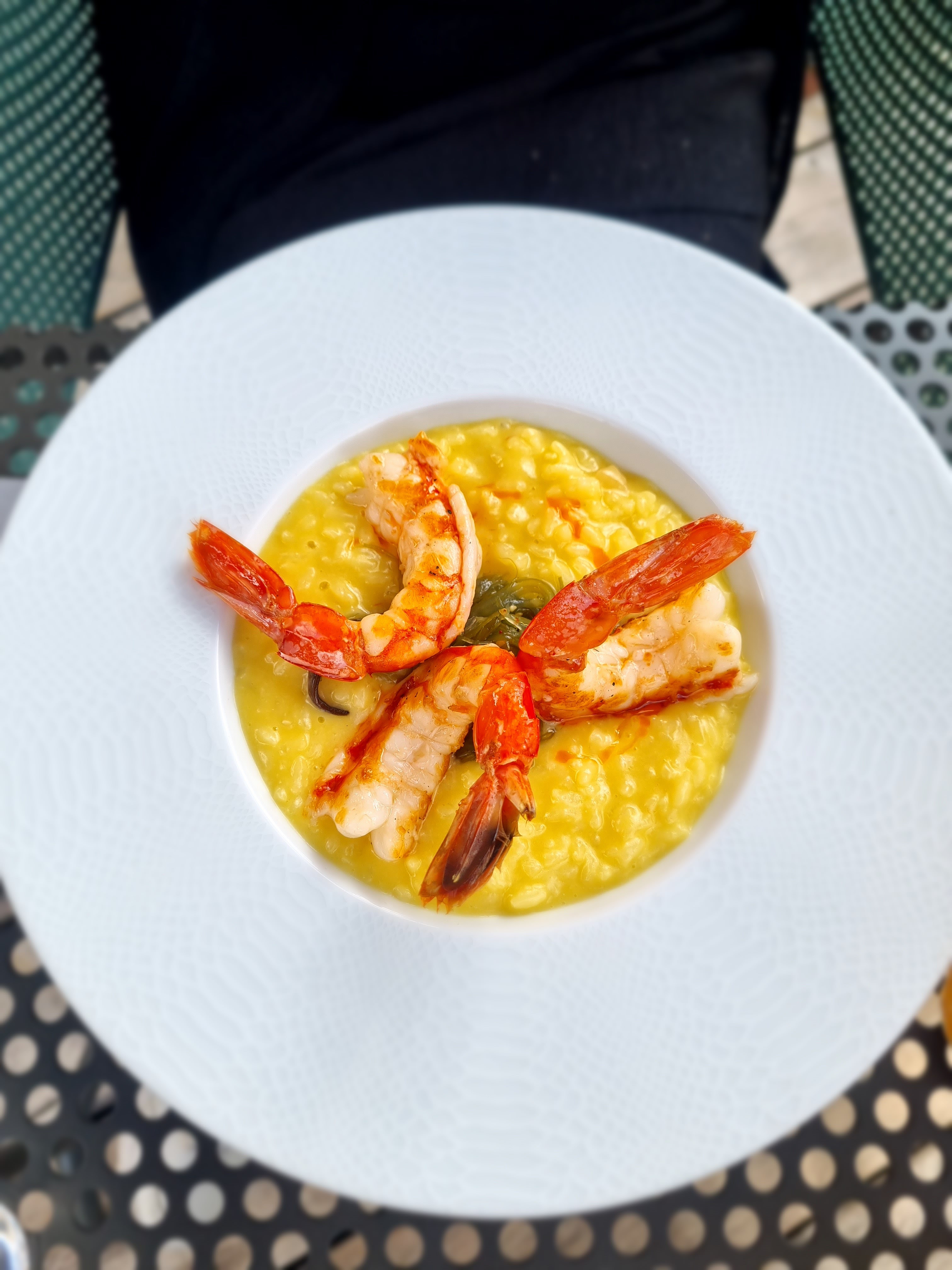 Simplement délicieux ! Le risotto aux gambas est un vrai délice! Et pour mon mari , le bœuf cuit à la perfection et quelle justesse dans le choix des petits légumes !! Merci.