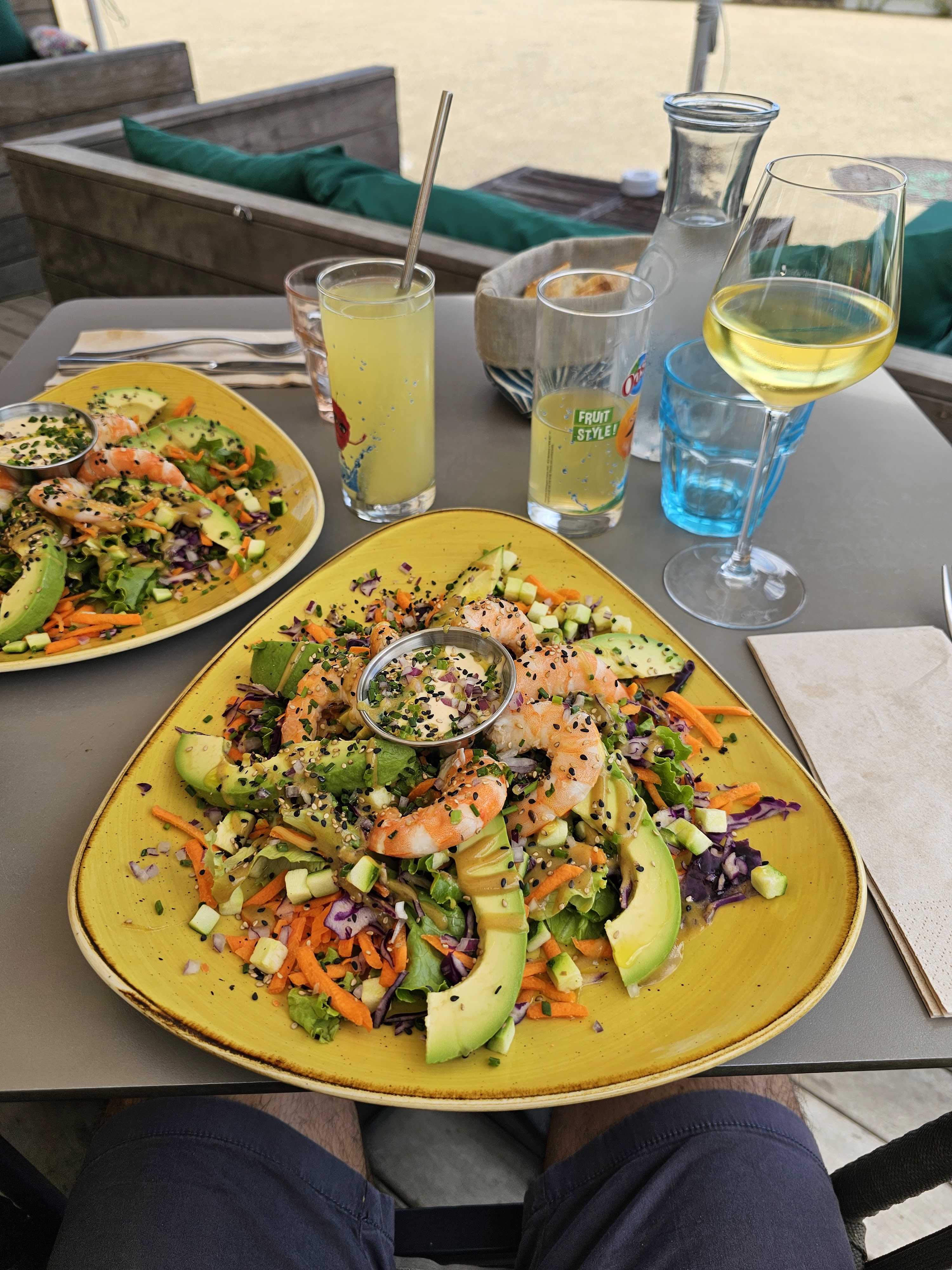 Très bien accueilli, très bonne assiette et très beau cadre : nous avons beaucoup aimé ; il manquait peut-être quelques parasols parce que même en février le soleil tapait bien (mélange soleil de midi- vin assez redoutable 😉)
