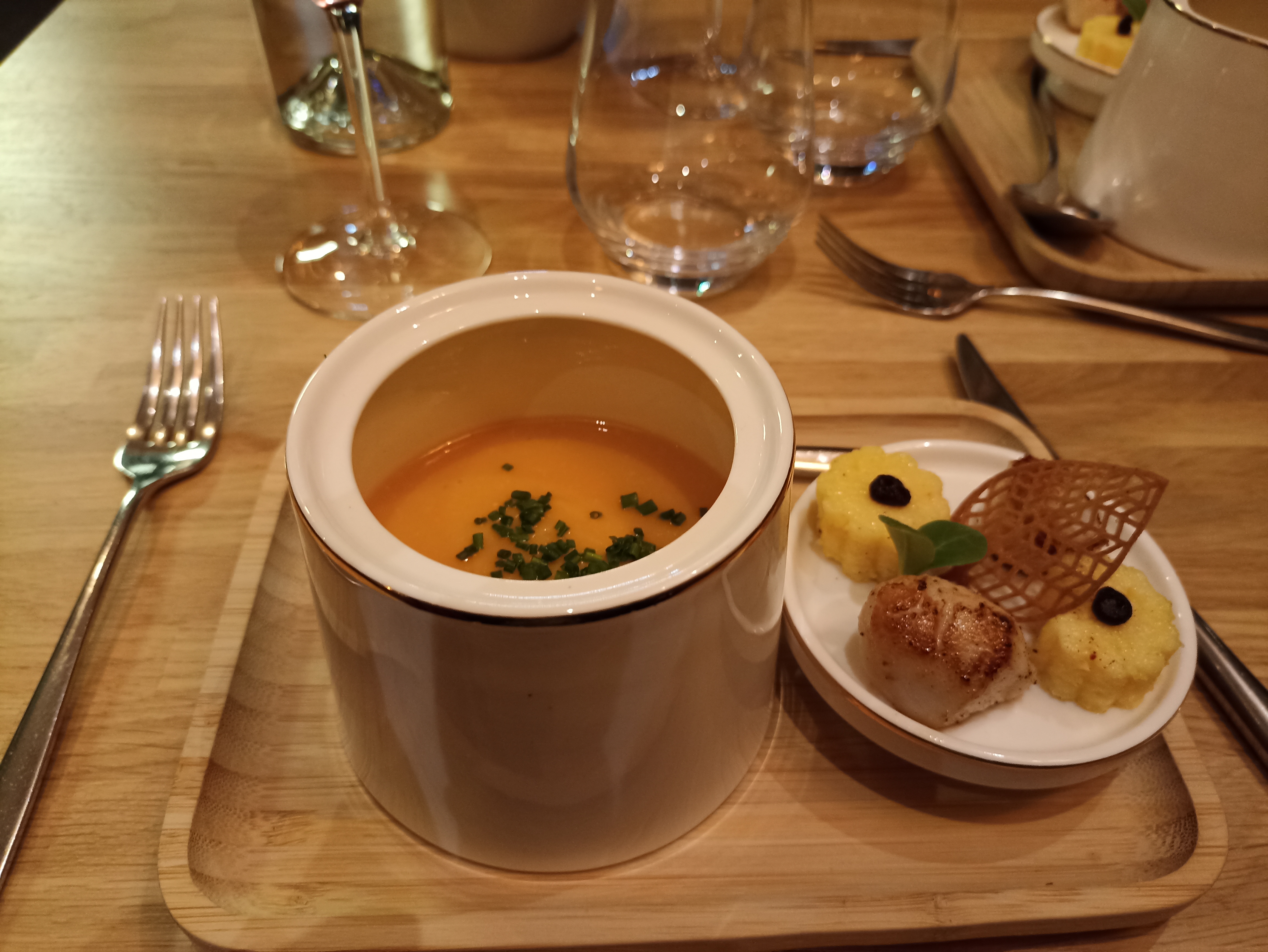 Cuisine simple et élégante avec de beau produits. Salle cocooning qui invite à la pause. Les vins étaient vraiment bon. Les bémol un service long, un manque d anticipation sur le service des vins et les besoin en pain.