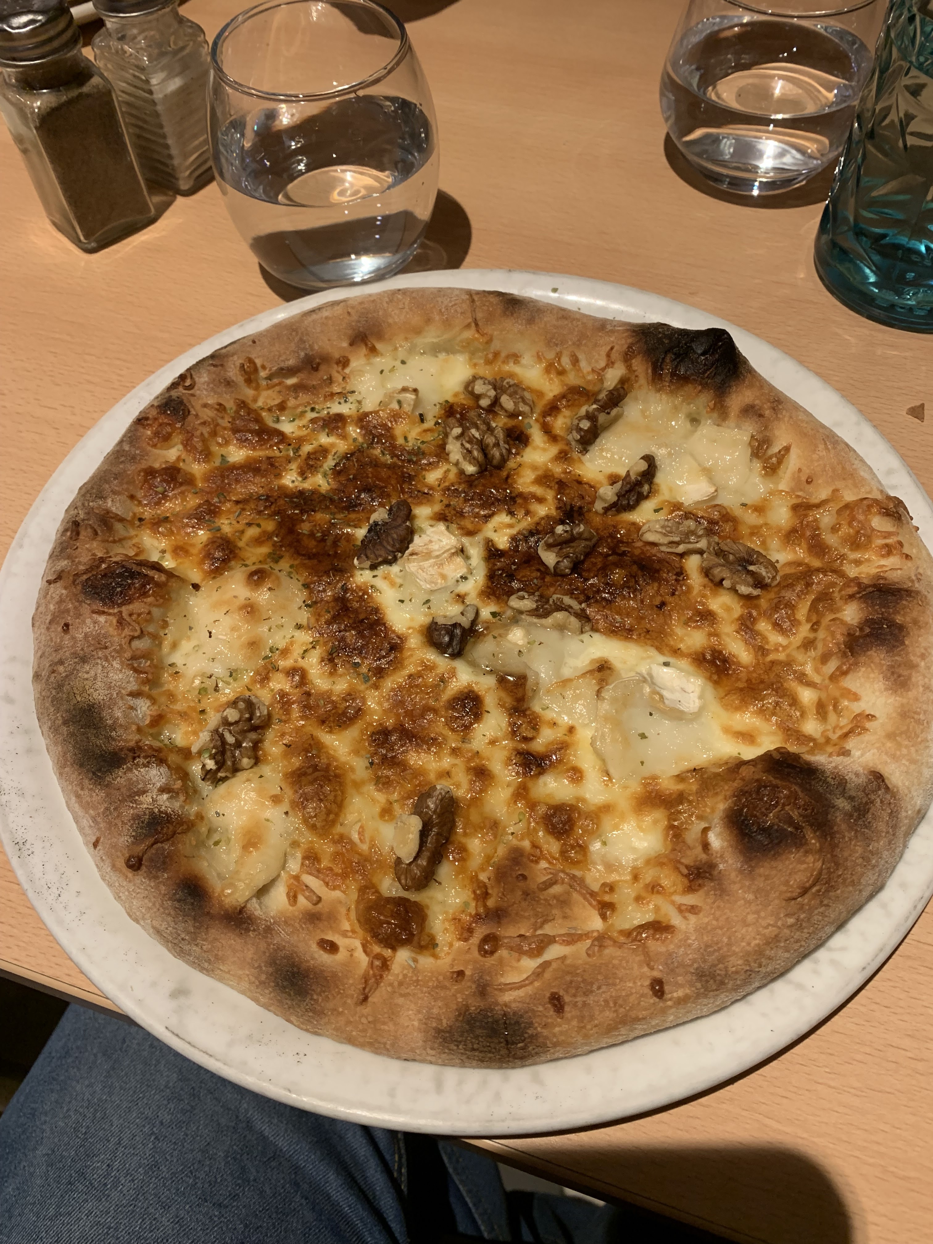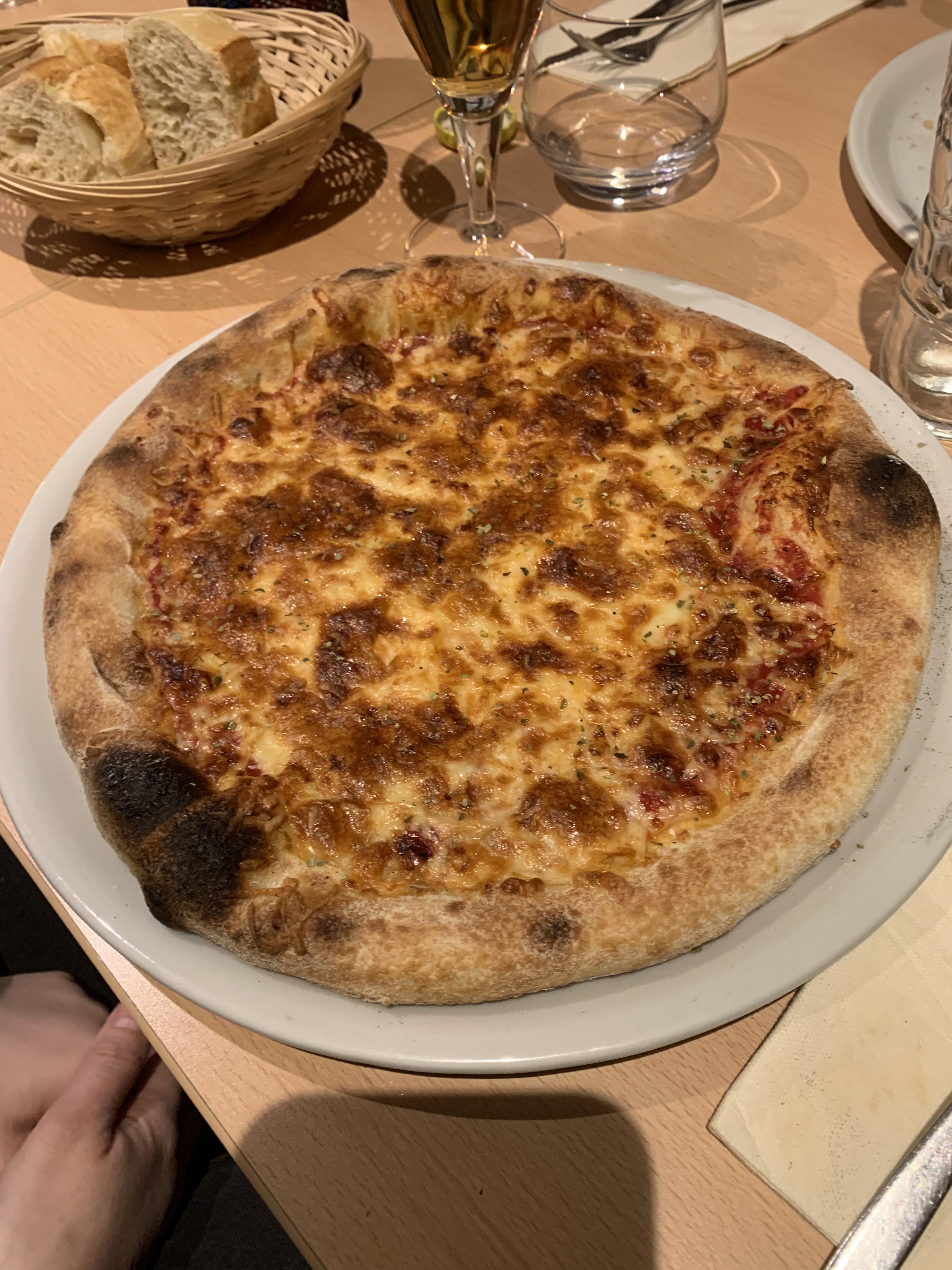 Pizza trop cuite la pâte était trop dur j'ai eu du mal à la couper je pense que la pizza a été cuite deux fois car elle était tiède déçu et oui le serveur m'a proposé de la changer mais j'ai refusé car je n'aime pas gâcher la nourriture