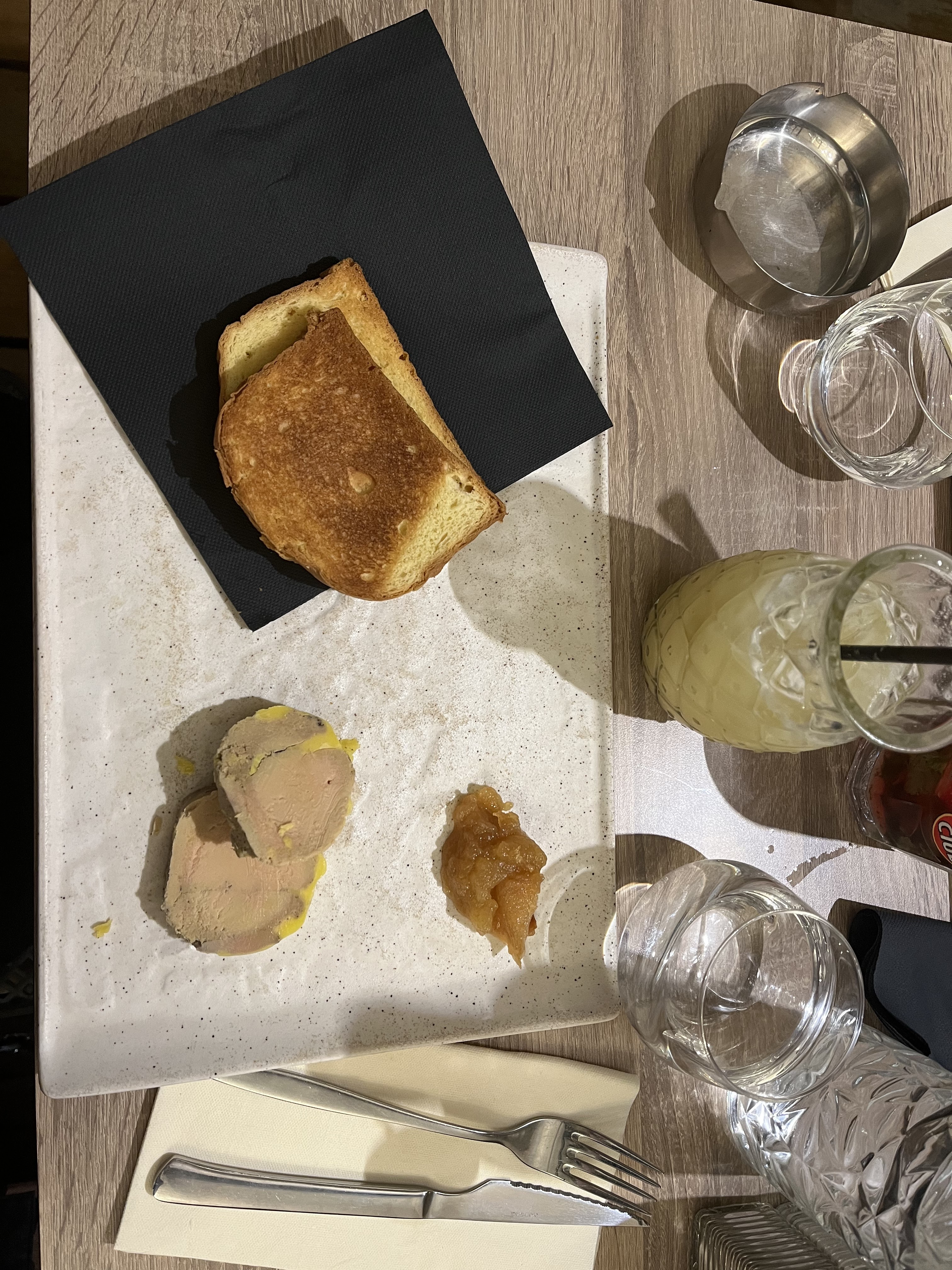 Quand avec ma mère nous avons commandé et mangé le foie gras nous avons eu peur. En effet, le foie gras était pour le moins étrange et pas réellement terrible. Pour le plat j'avais commandé un filet de bœuf rossini, et je n'ai pas été déçu. La viande était vraiment super bonne avec une très bonne sauce et un peu de foie gras sur le dessus. Les frites était également très bonne. Pour terminer le tout j'ai commandé une pana cotta qui était également très réussi. En plus, le serveur était vraiment très gentil et vraiment drôle. Le restaurant était plein mais nous avons été servi assez rapidement. La décoration intérieur était également plaisante. Les seuls défaut étaient le foie gras et mon cocktail qui avait été un peu trop mal dosé avec beaucoup trop de rhum. En ce qui concerne les prix ils ne sont pas plus chère que les autres restaurants de la zone.