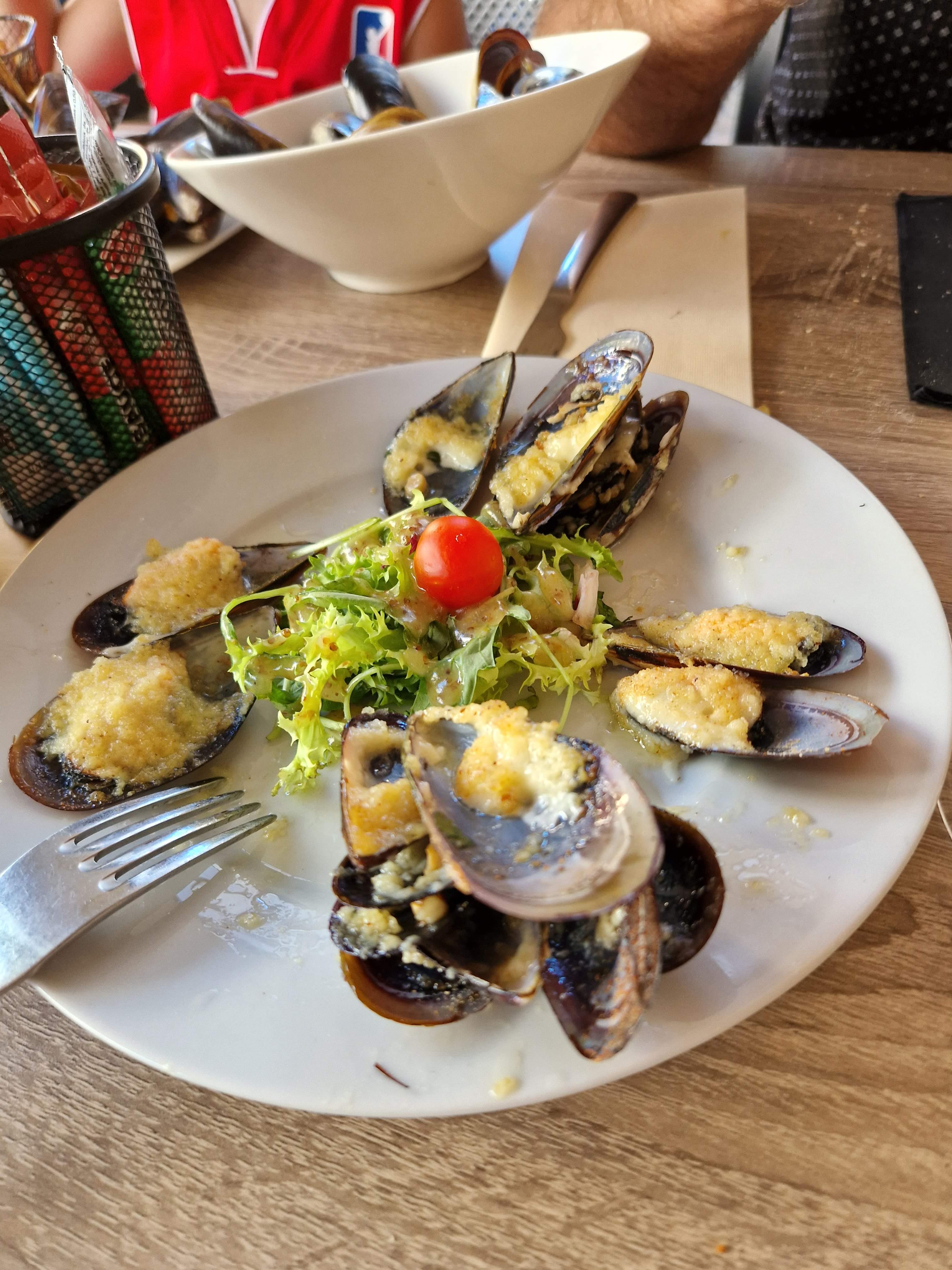 Léger racolage à l'entrée mais sans abus. Serveur d'une gentillesse sans faille, toujours dispo a vérifier que l'on ne manquait de rien. Avons pris burger et moules ; le tout excellent. Un bon petit vin blanc pour accompagner tout ça.