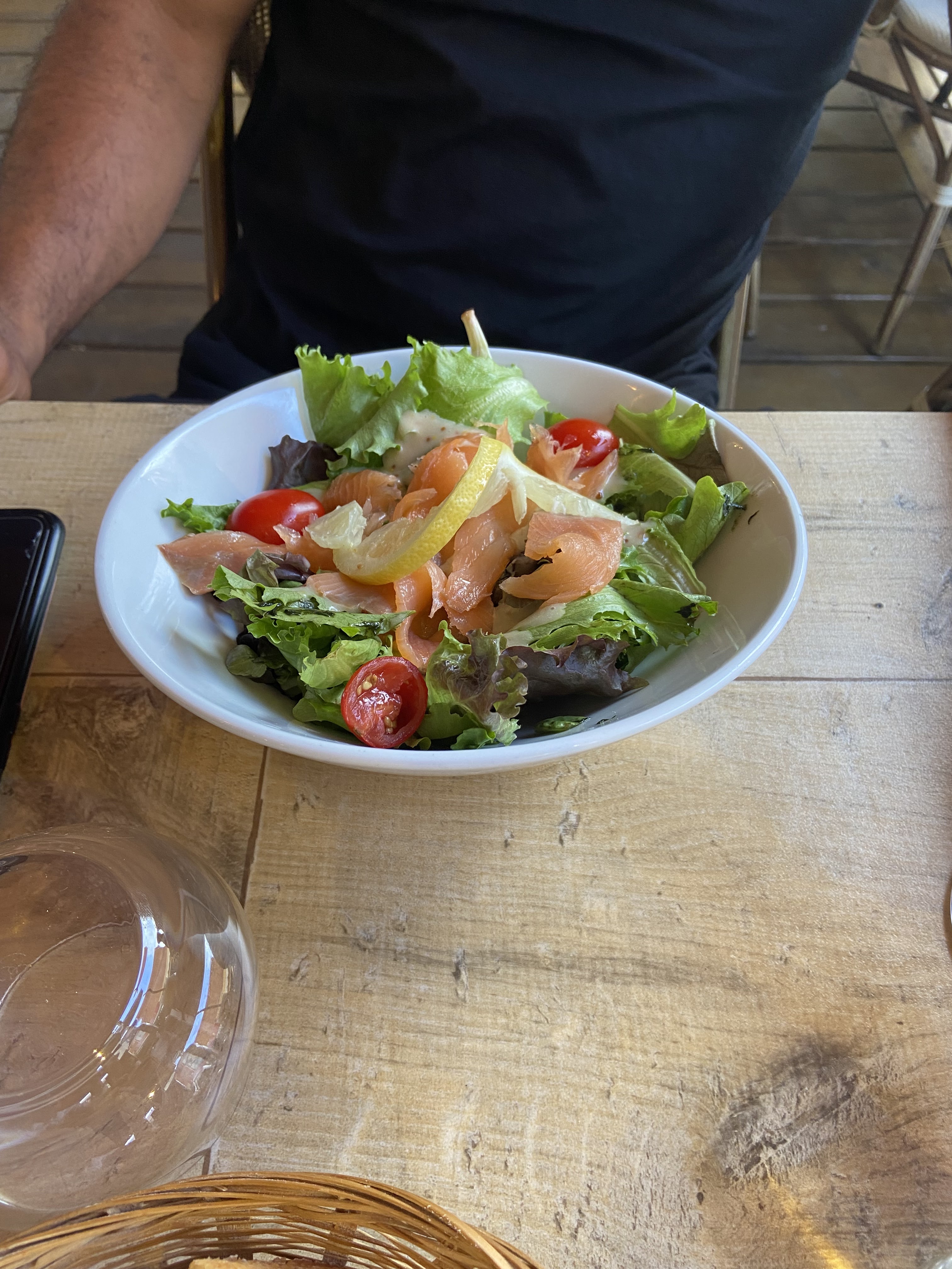 Nous avons attendu longtemps demandé trois fois de l’eau et en plus de ça nous avons été malades … (le saumon sur cuit avec un goût horrible et les sardines pas top et avec ailloli chaude) le serveur pas super agréable non plus.