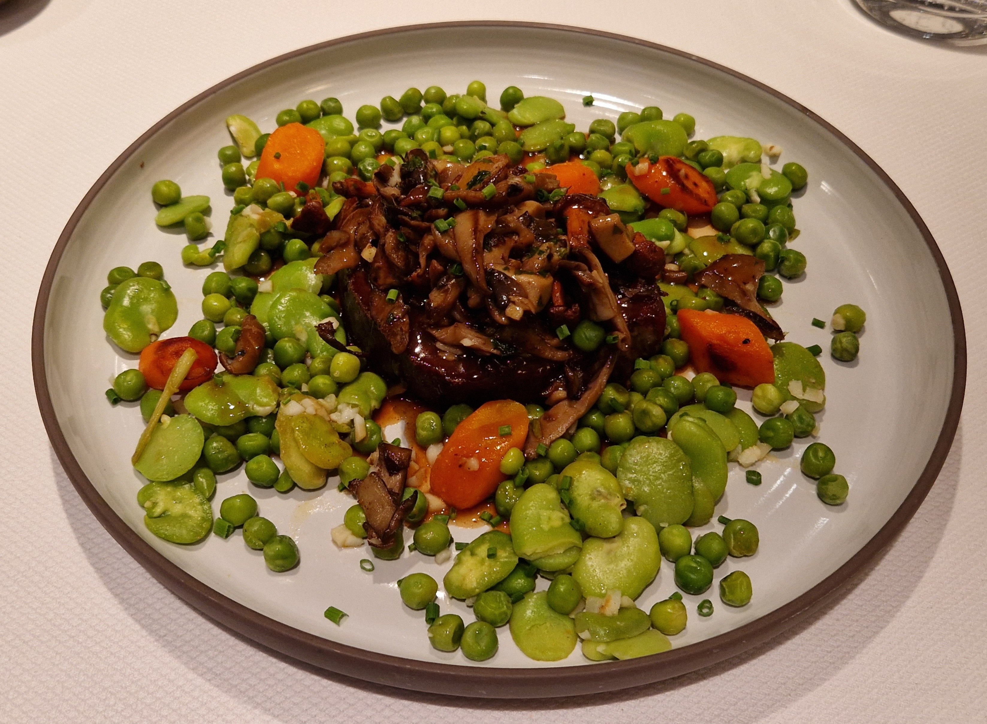 Nous nous sommes assis dans le jardin. La nourriture était parfaite et le service était très sympa. Nous avons passé une soirée parfaite avec du bon, très bon vin.