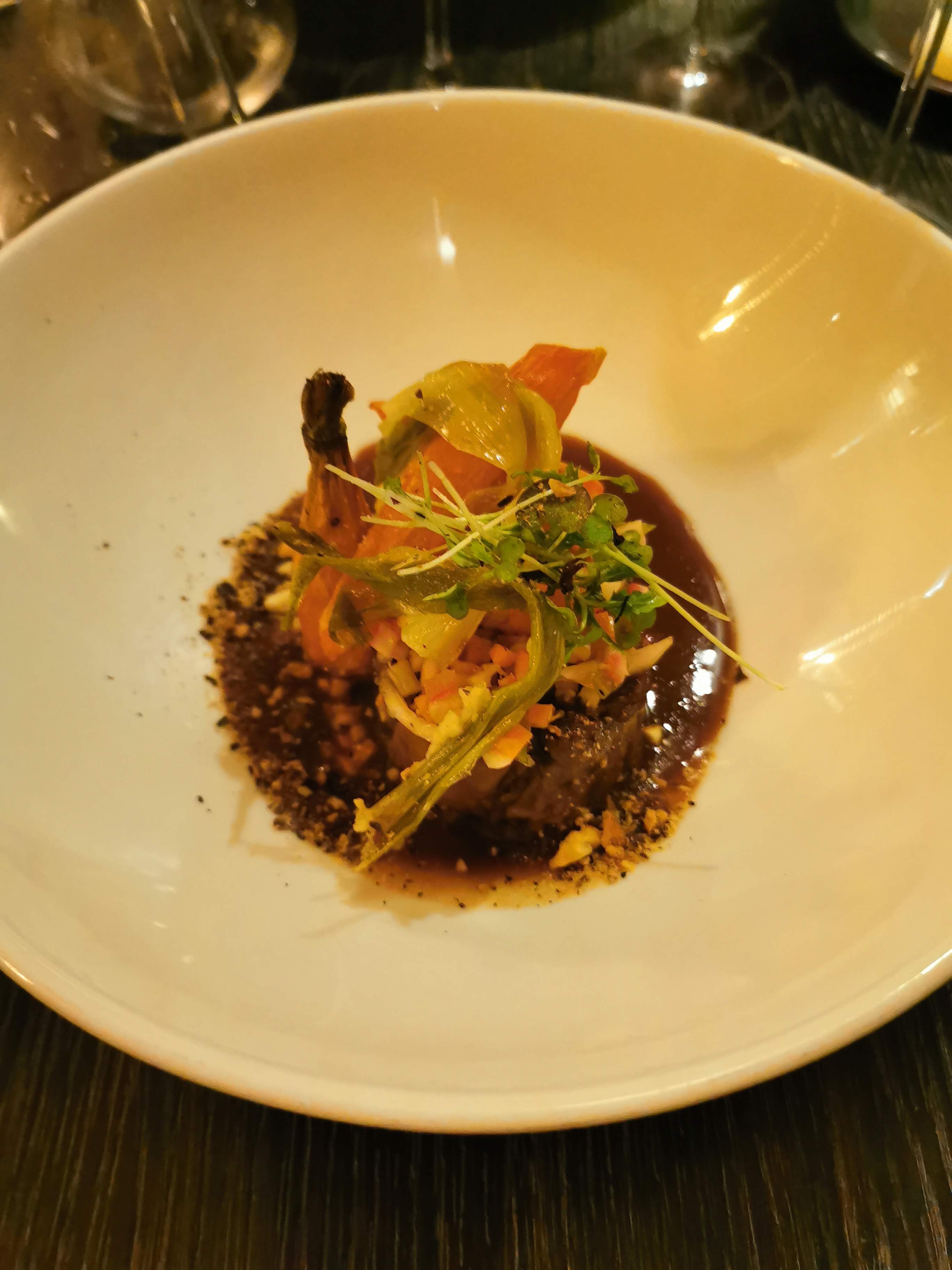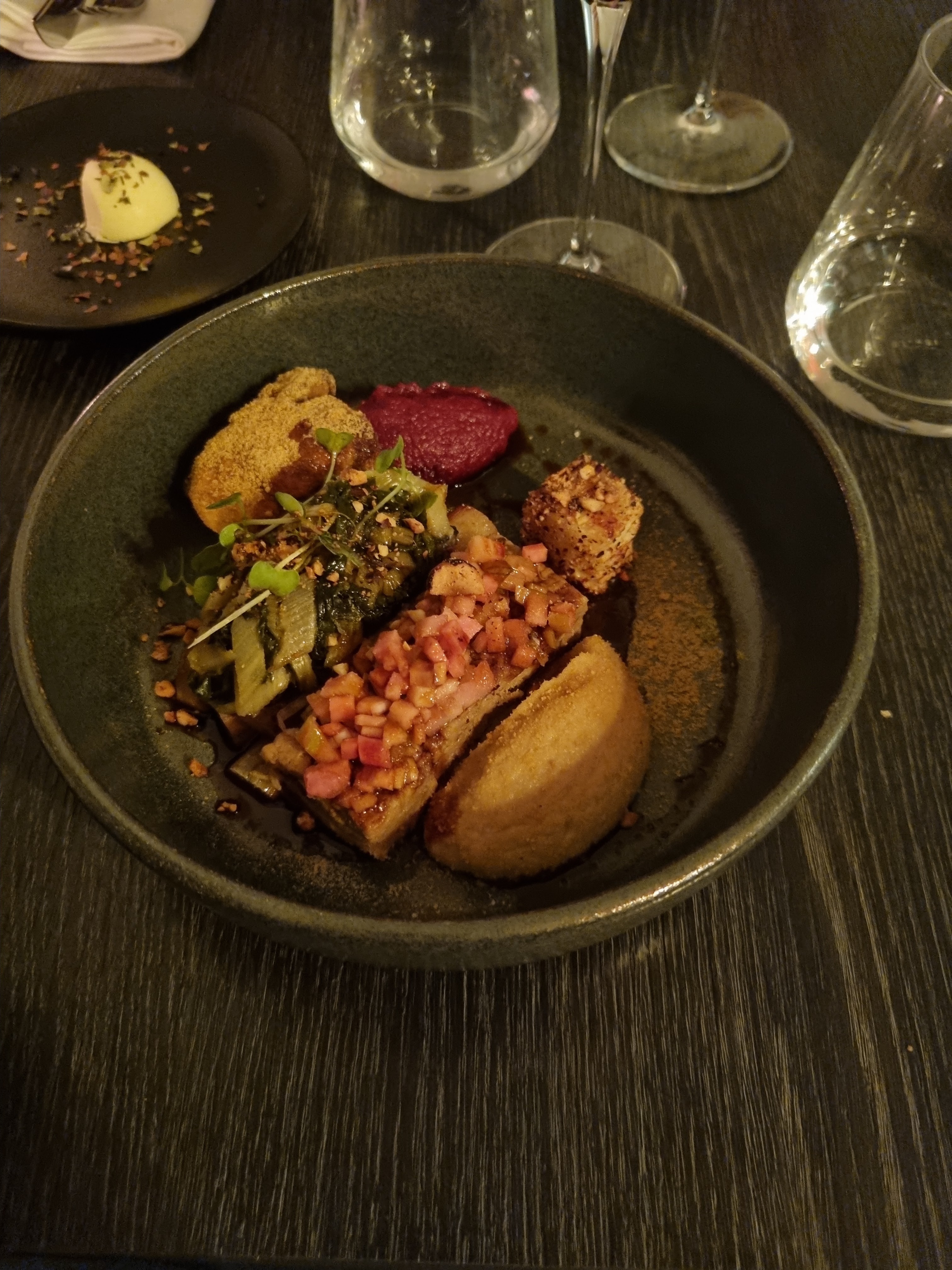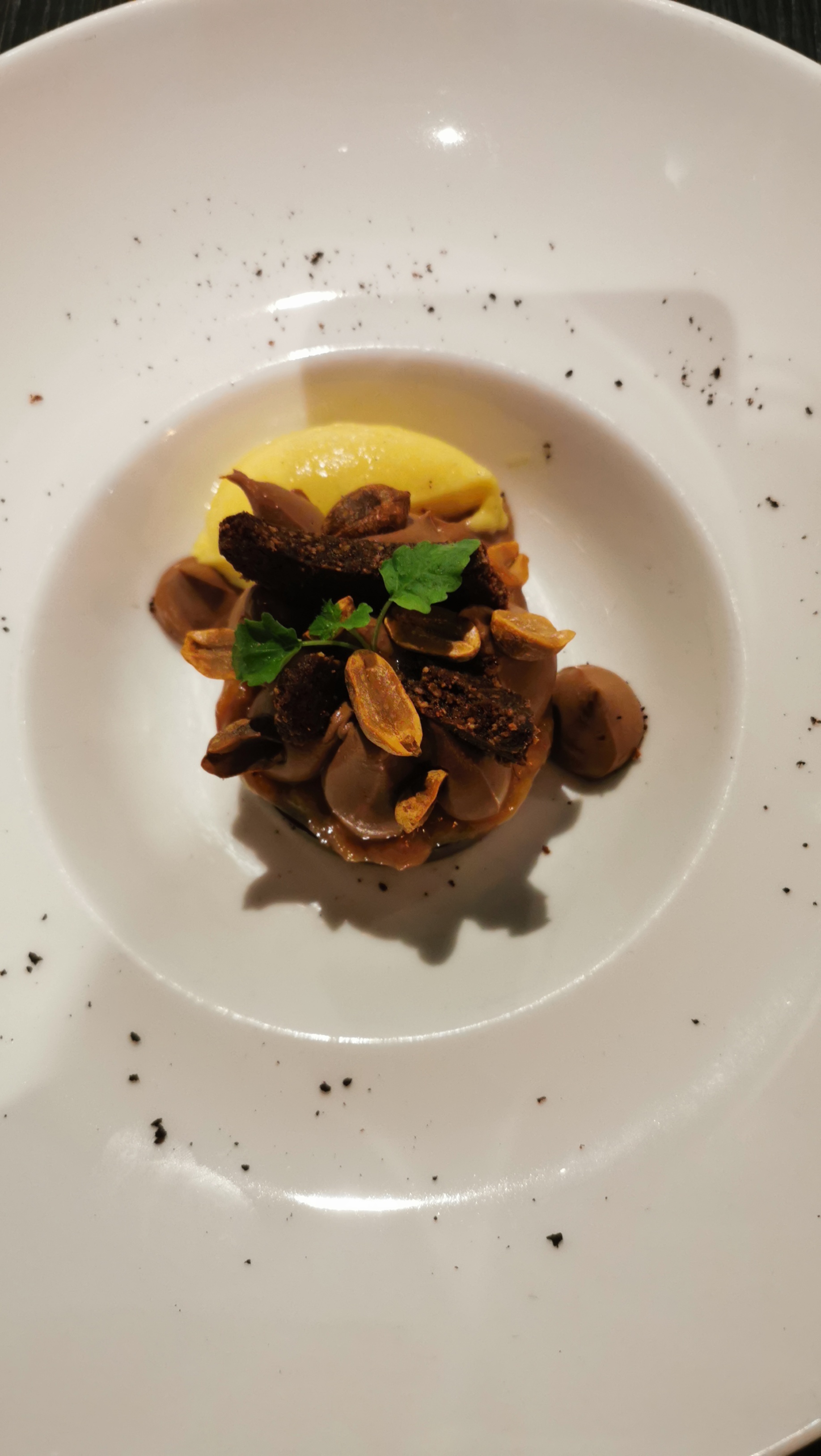 Des plats délicieux et présentés de manière créative, tout au long de l'entrée, du plat et du dessert ! Il y a eu un peu d'attente entre le plat principal et le dessert, mais cela en valait la peine. Le personnel a également été très gentil de s'adapter à mes restrictions alimentaires en tant que femme enceinte après les avoir prévenus à l'avance. Je recommande vivement cet endroit !