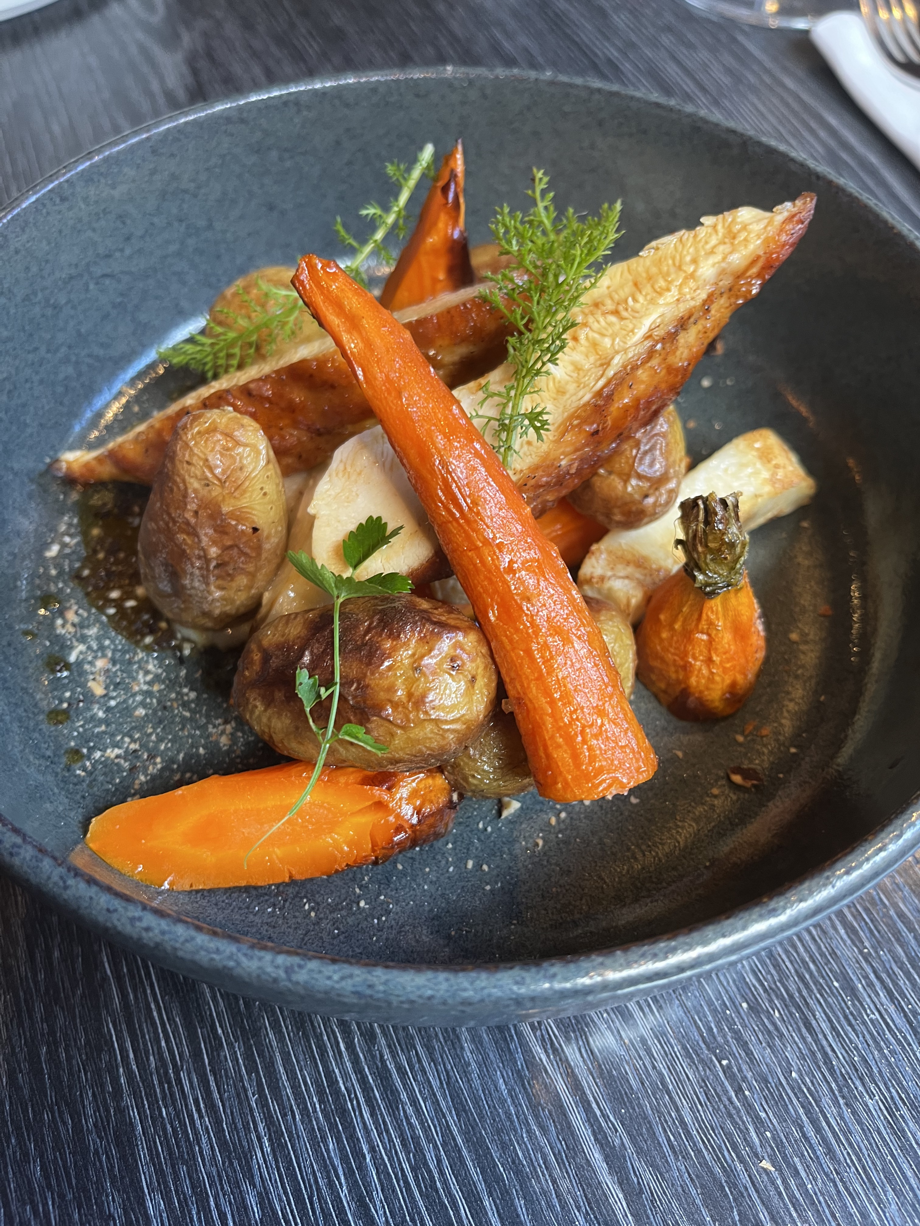 Tout ce que j'ai mangé dans ce restaurant était délicieux. J'ai opté pour le menu 3 plats pour 49 €. L'apéritif était la seule option végétarienne sur le menu et ce n'est pas grave. Cela ne m'a pas blessé que le plat principal ne comportait pas d'option sans viande, car l'assiette d'agneau rôti avec des légumes-racines était à tomber par terre. Littéralement. Chaque bouchée a été lentement savourée car je sais que je n’obtiendrai pas quelque chose d’aussi bon ailleurs de si tôt. Le service était impeccable. Quelle expérience! 🤩