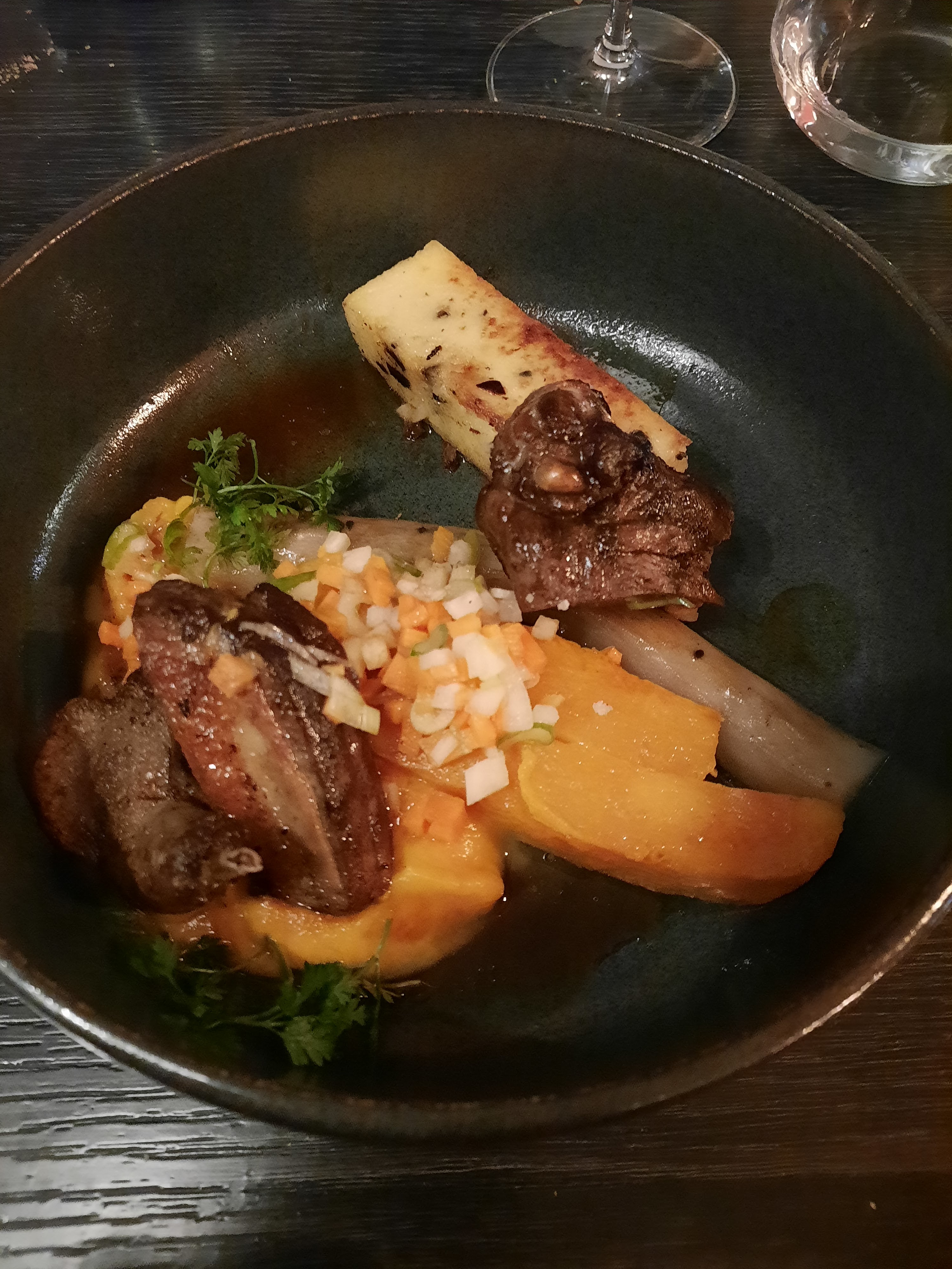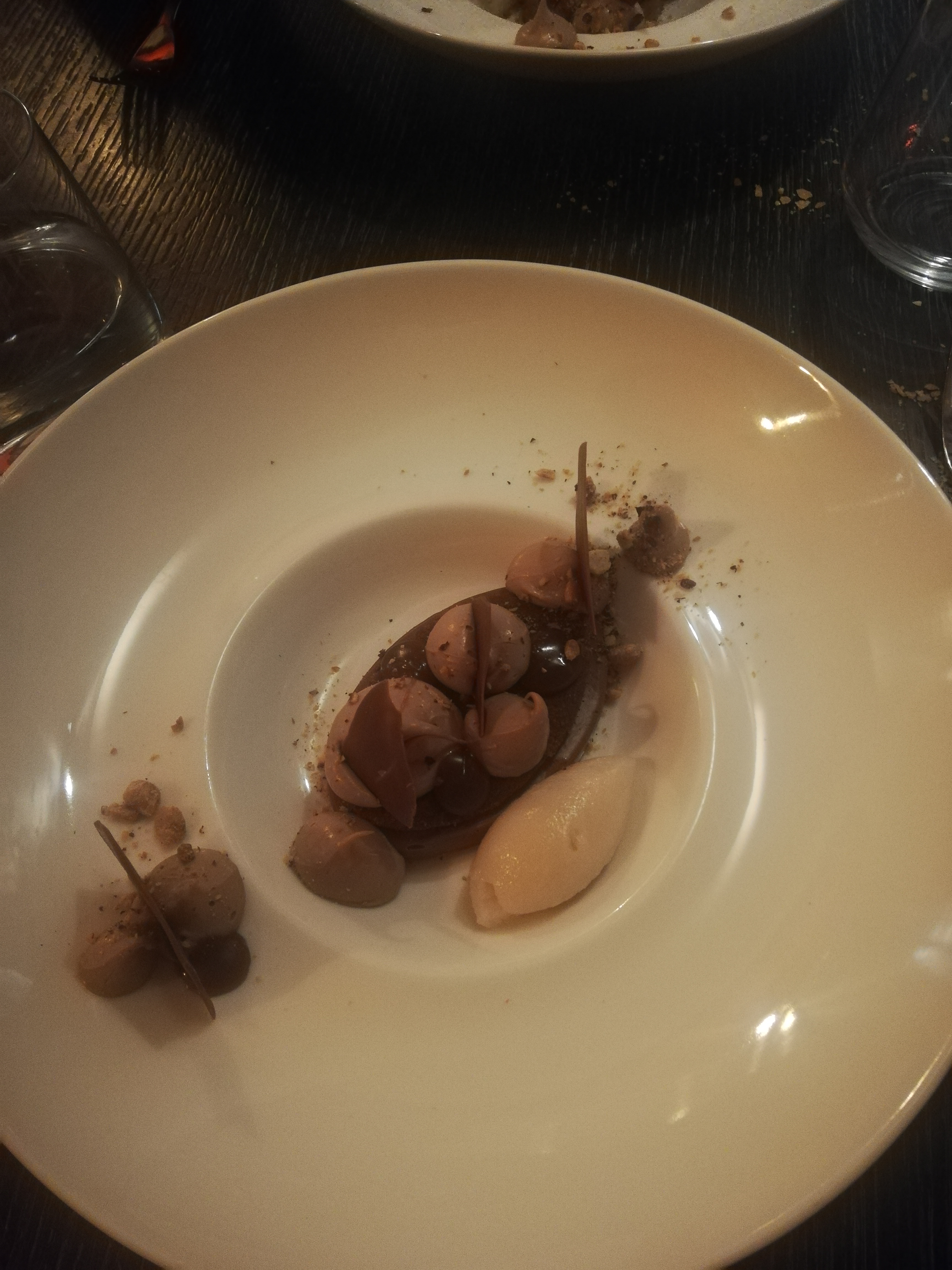 Parfait sur tous les plans. Juste pour être un peu chiant, je trouve que le dessert chocolat poire gingembre aurait pu être un poil plus explosif avec un tout petit peu plus de gingembre et une note d'acidité pour faire ressortir la poire. Et les vins au verre, j'ai trouvé dommage que ça ne propose pas plus de vins de la région.